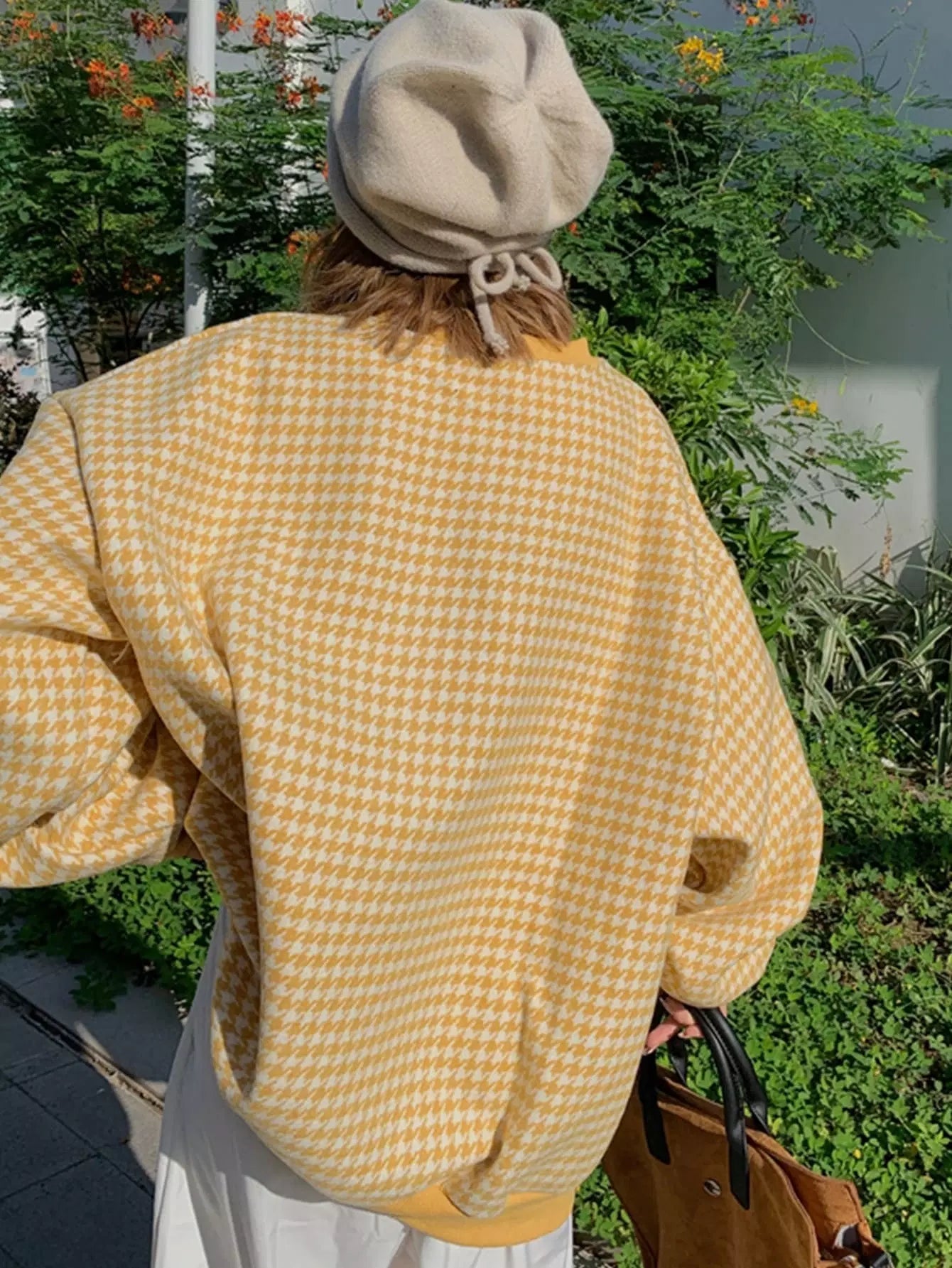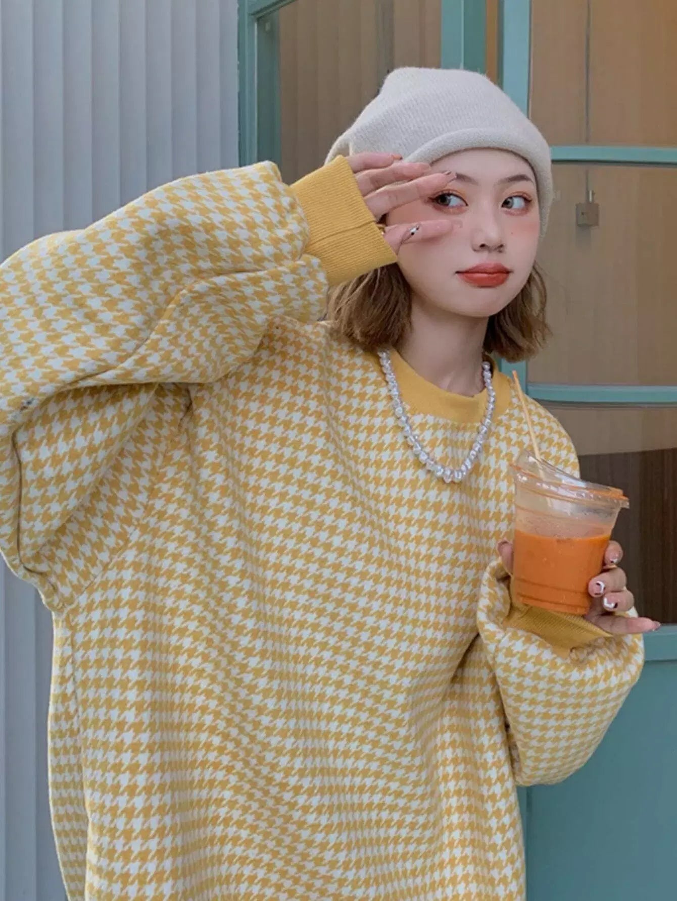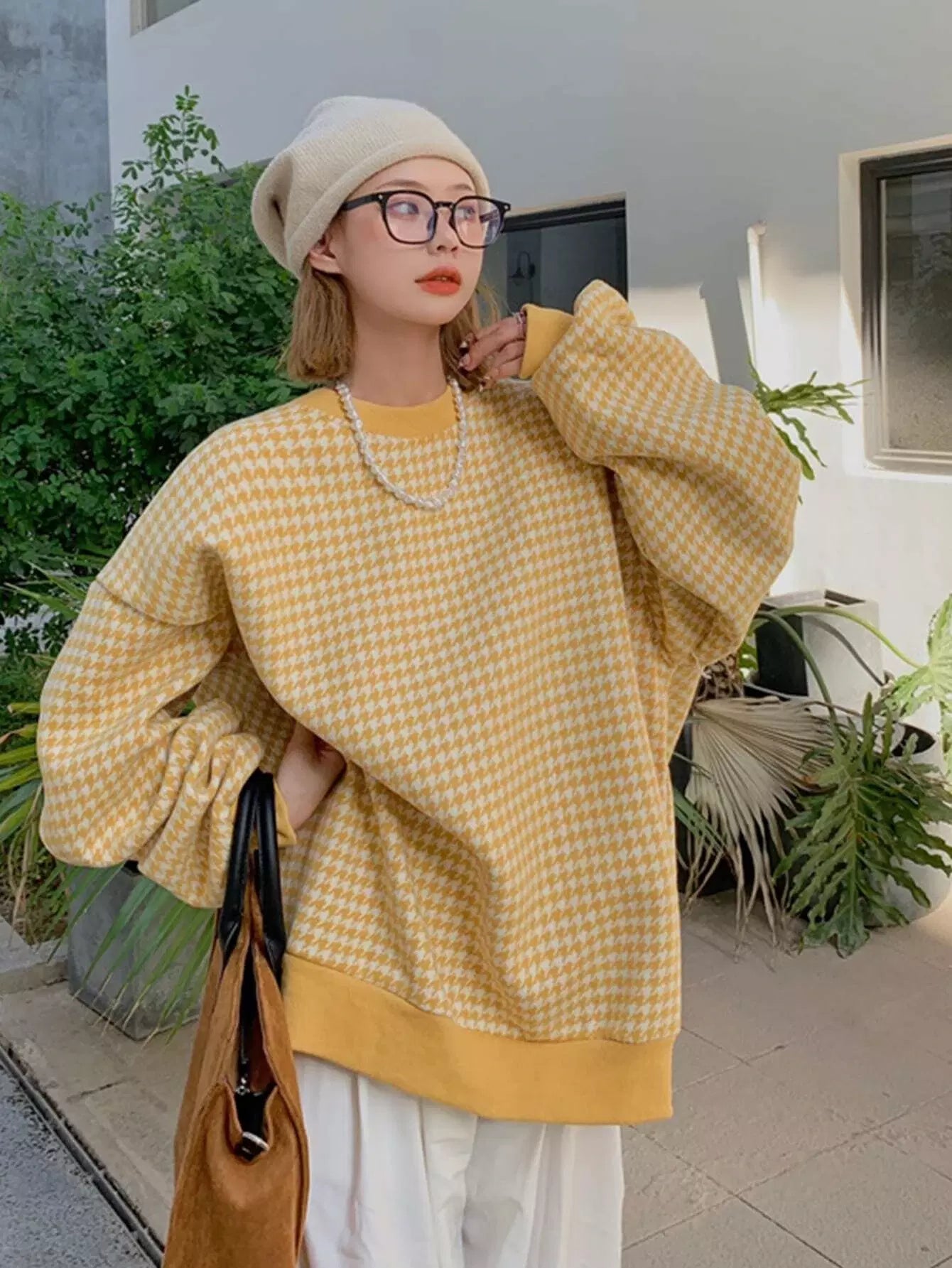 Houndstooth Drop Shoulder Oversized Pullover