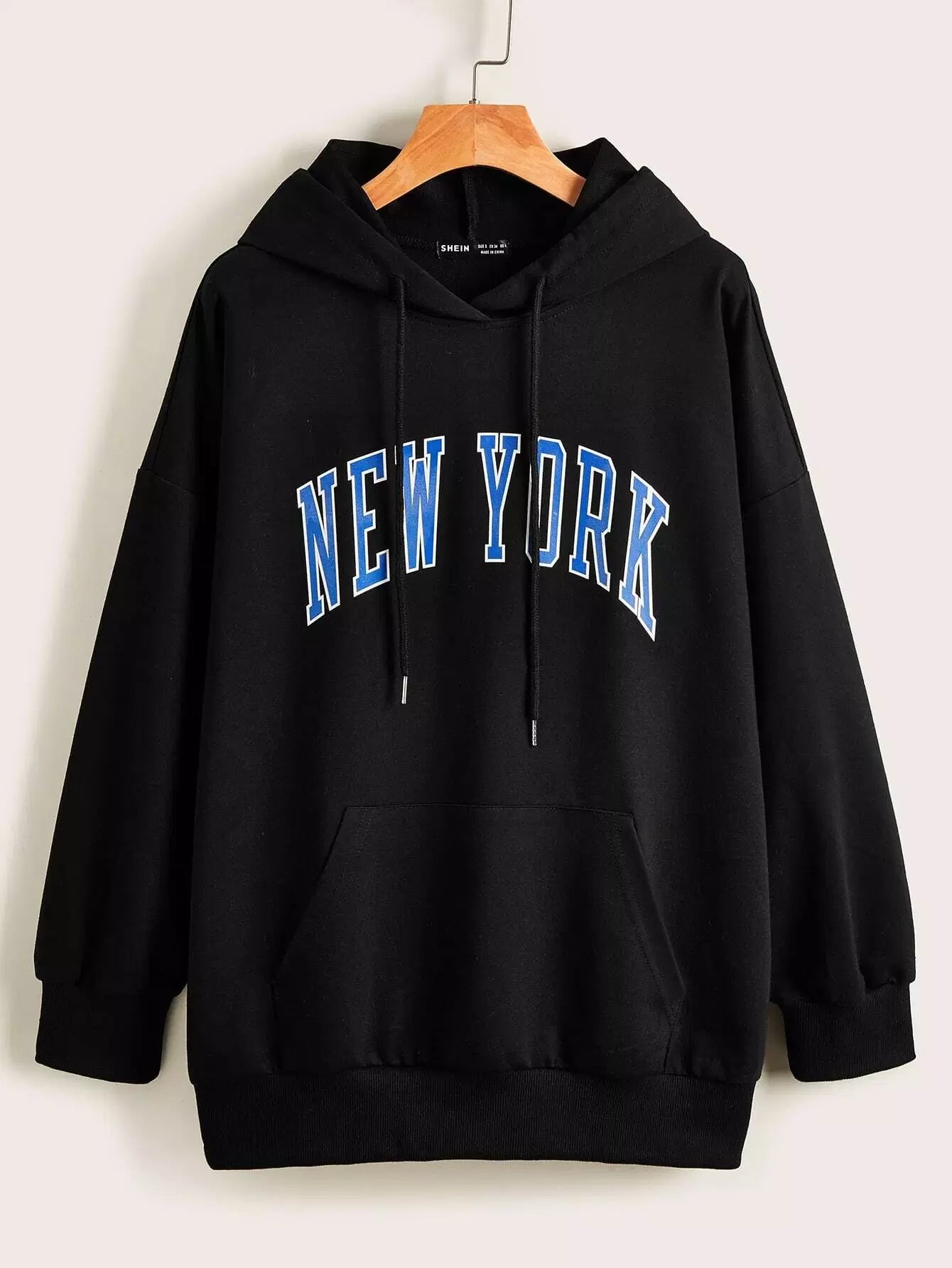Kangaroo Pocket Letter Graphic Drawstring Oversized Hoodie