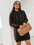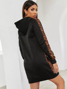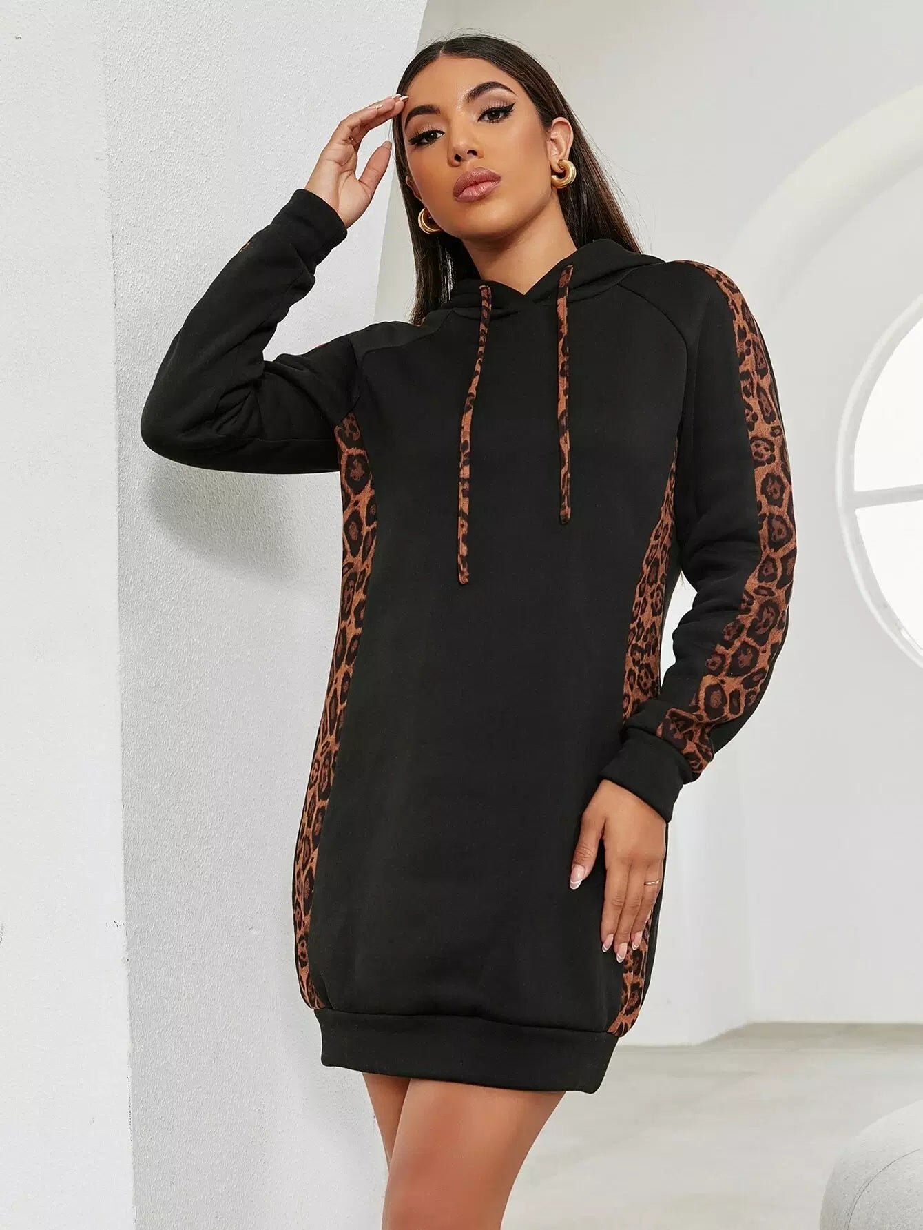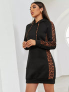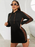Leopard Panel Raglan Sleeve Hoodie Dress