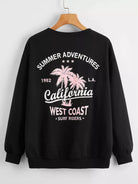 Women - Letter and Tropical Print Drop Shoulder Pullover