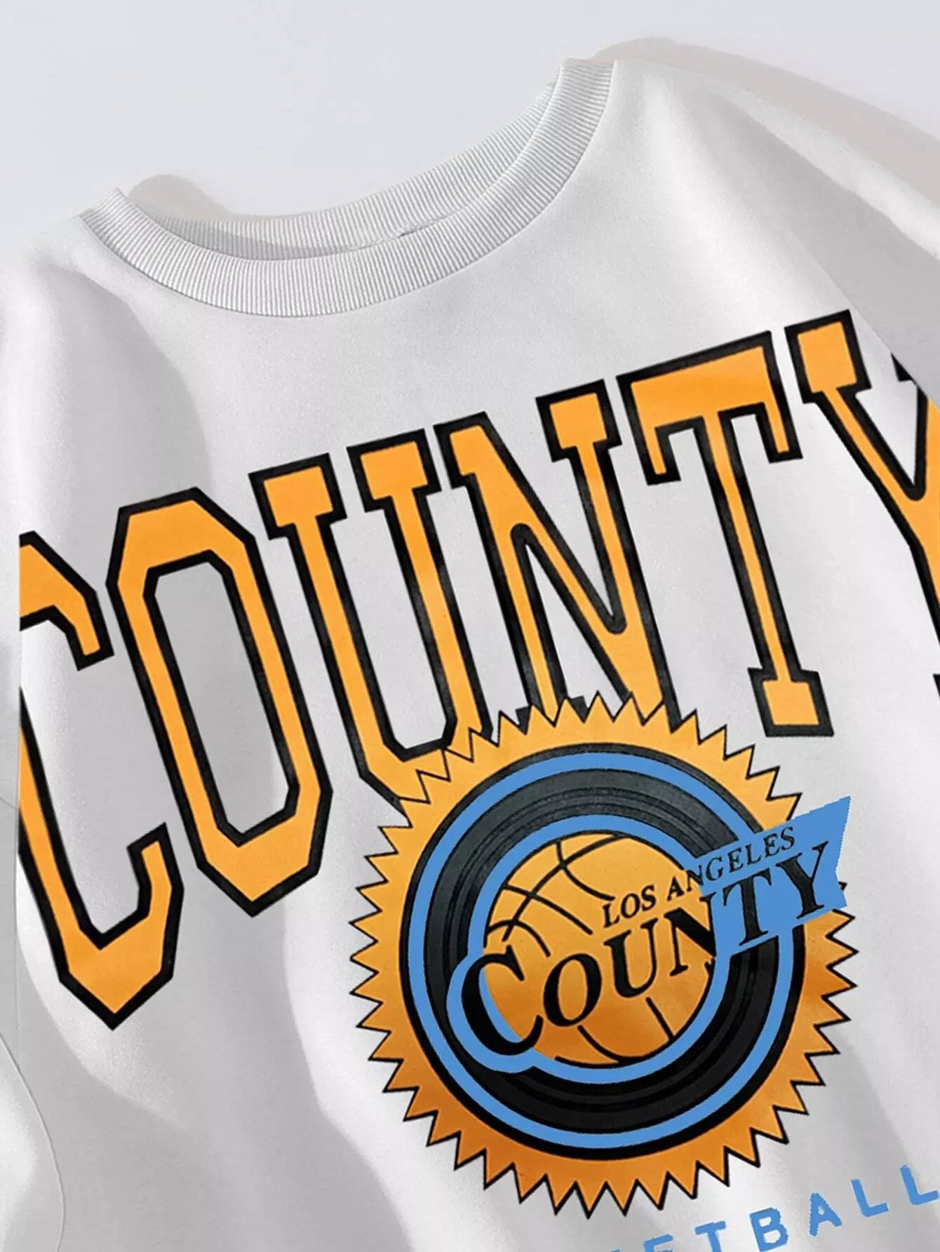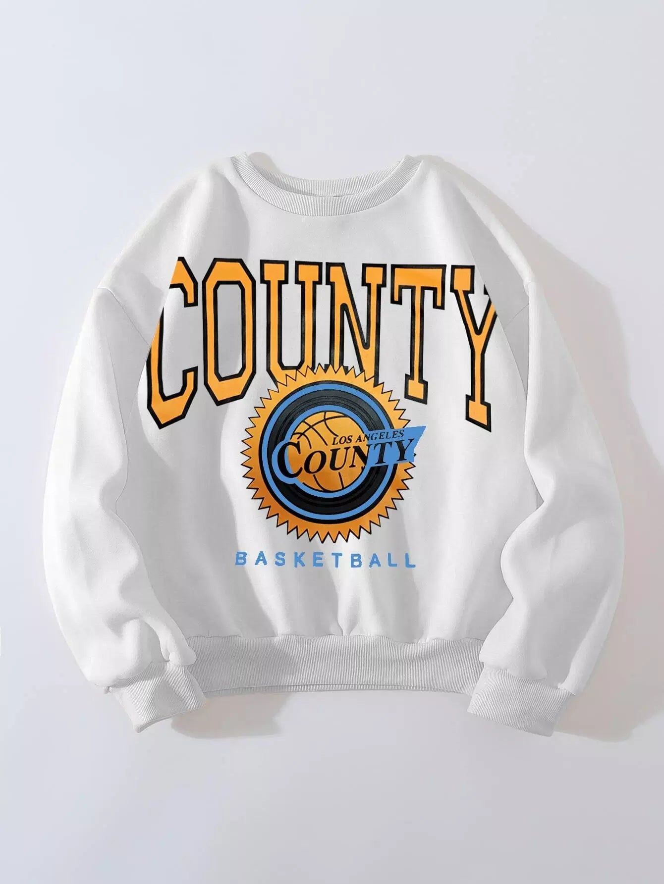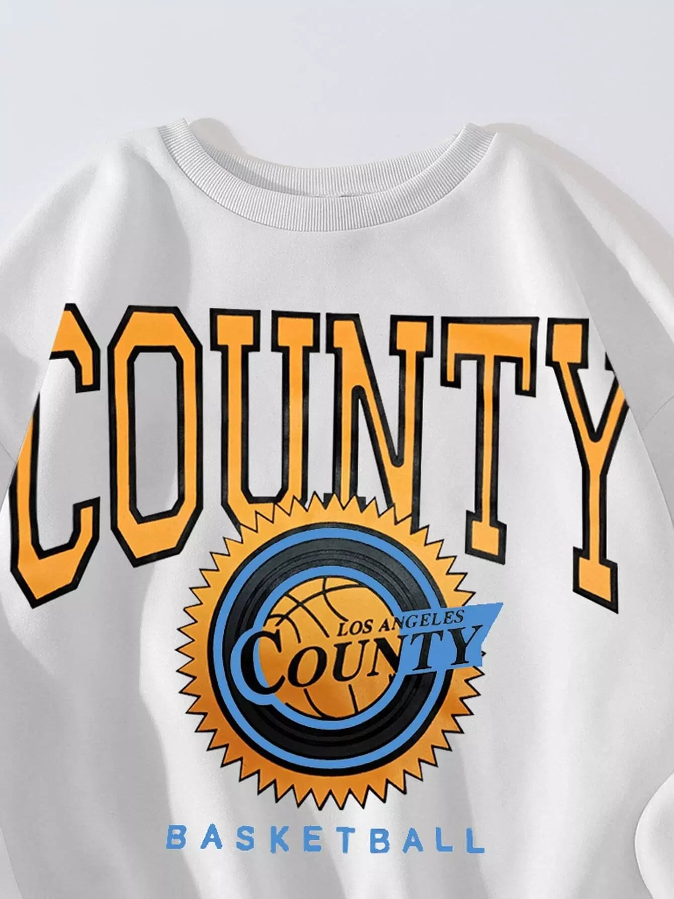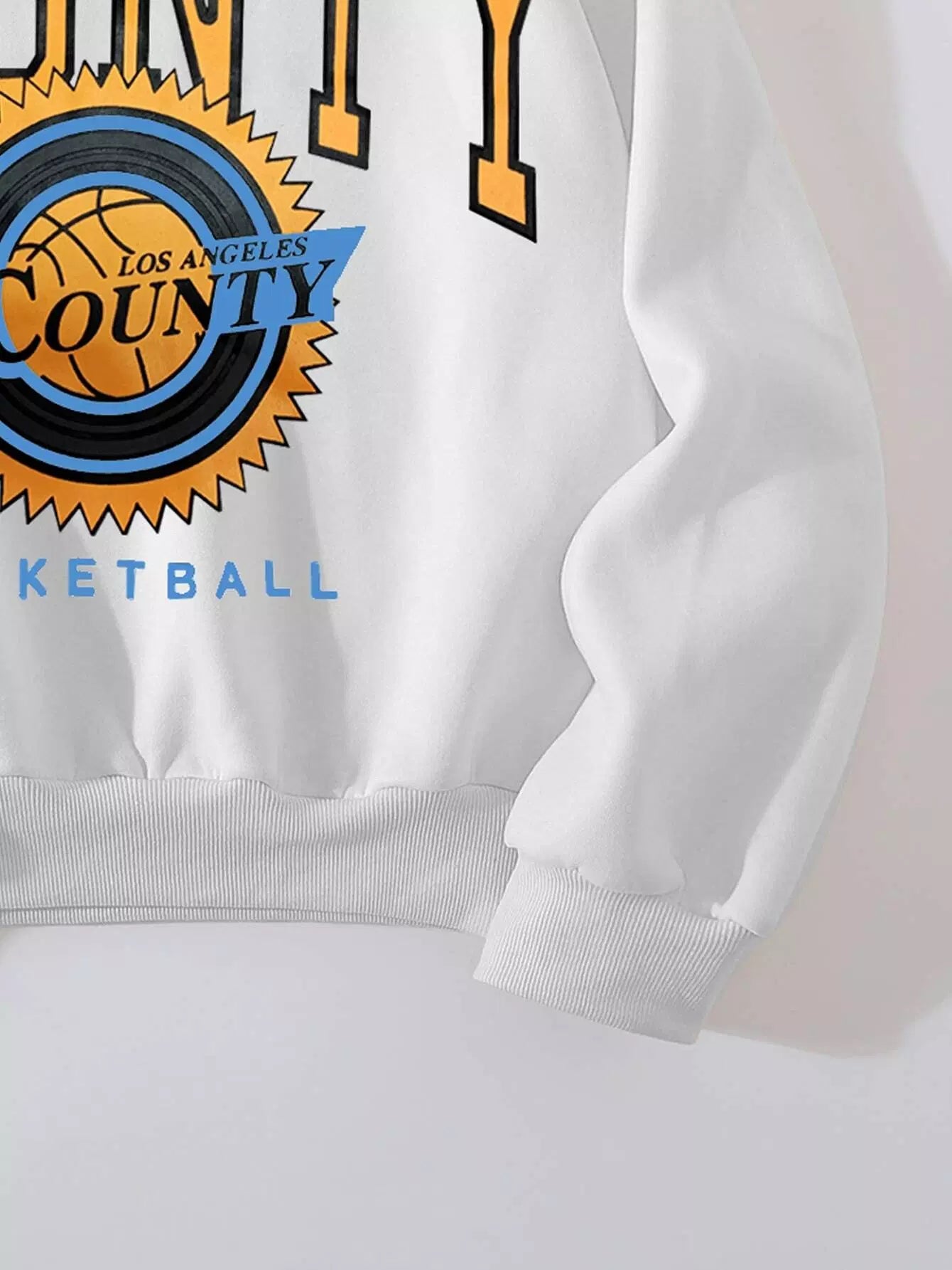 Letter & Basketball Print Drop Shoulder Sweatshirt