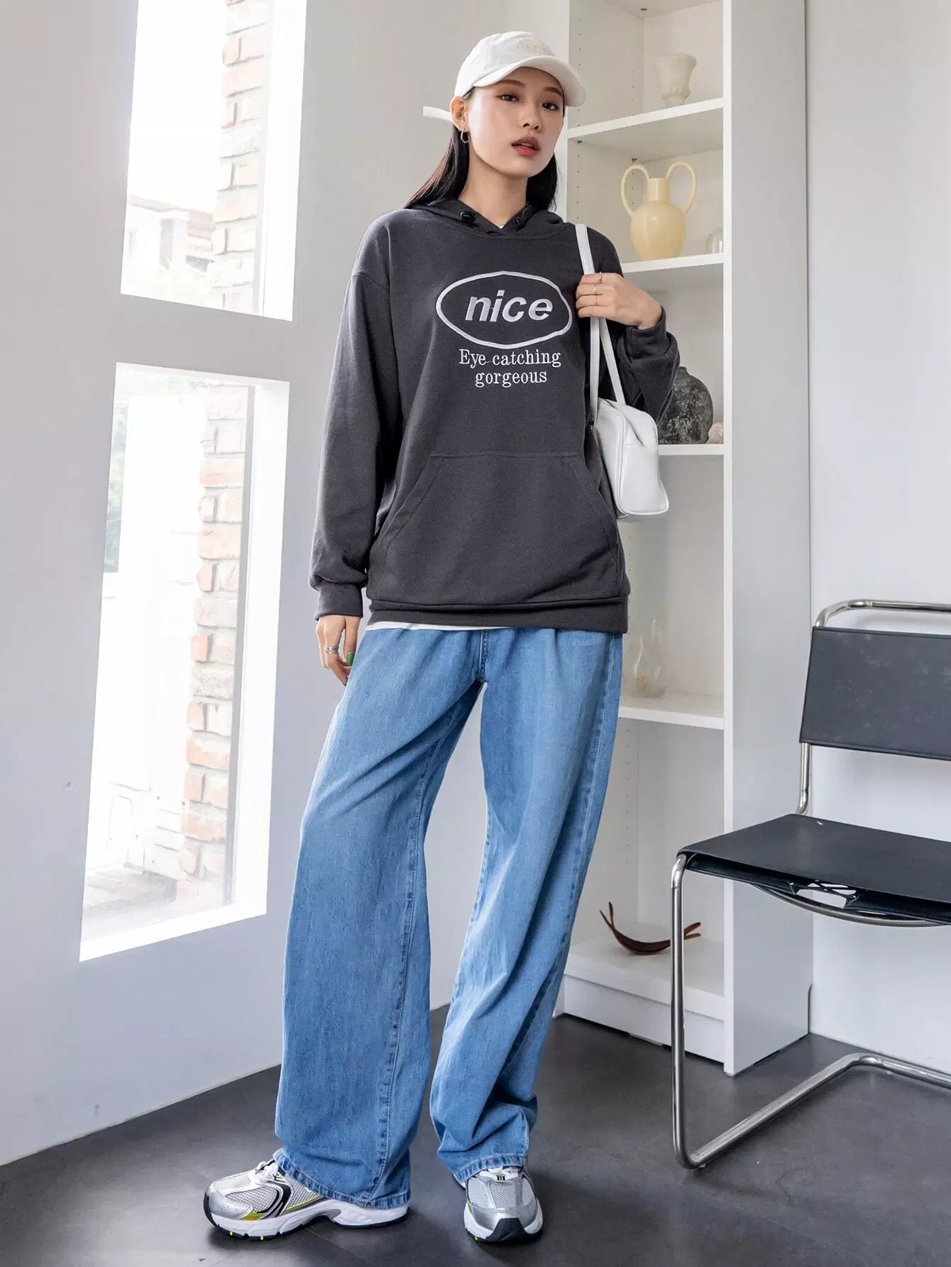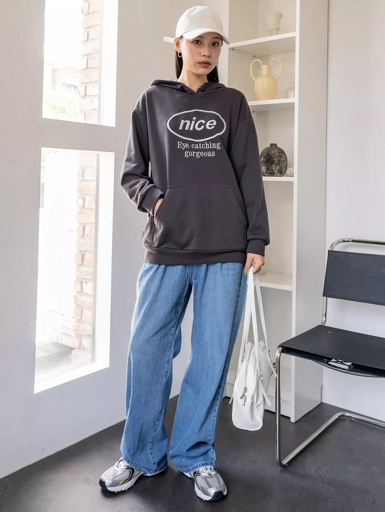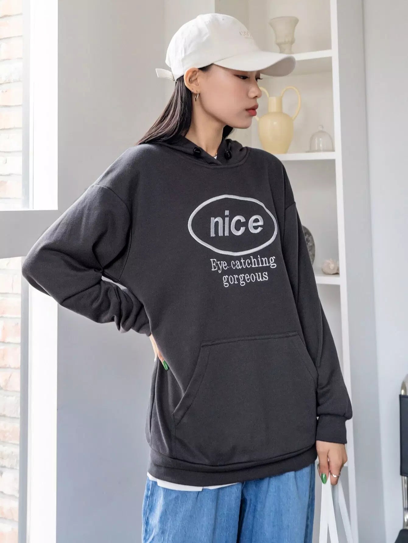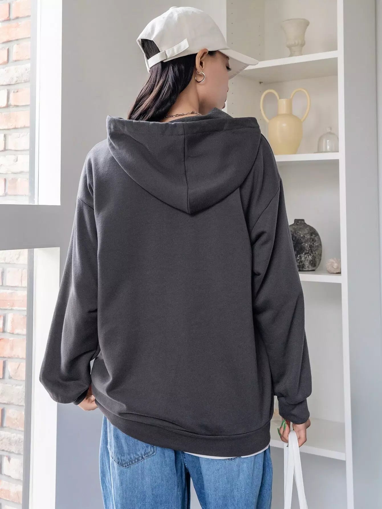 Letter Embroidery Drop Shoulder Drawstring Hoodie