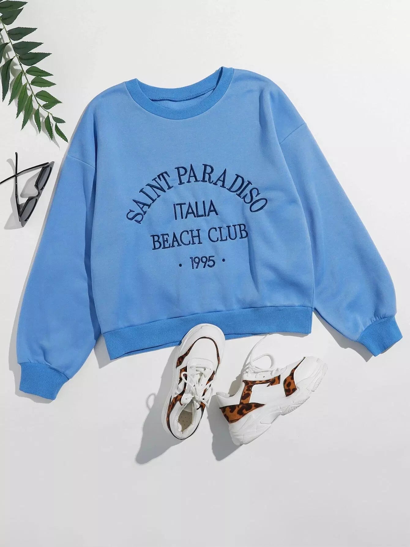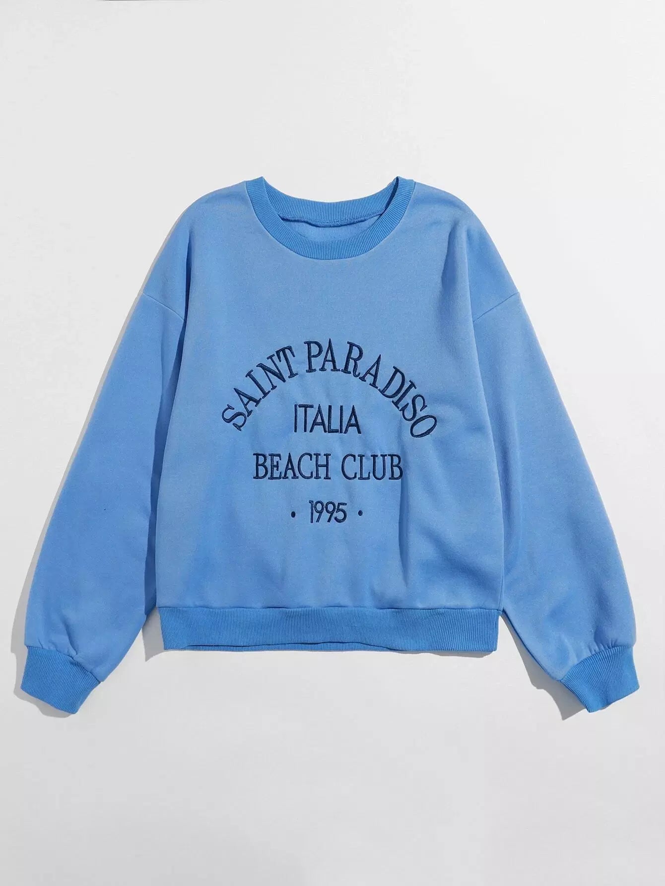 Women - Letter Embroidery Drop Shoulder Sweatshirt