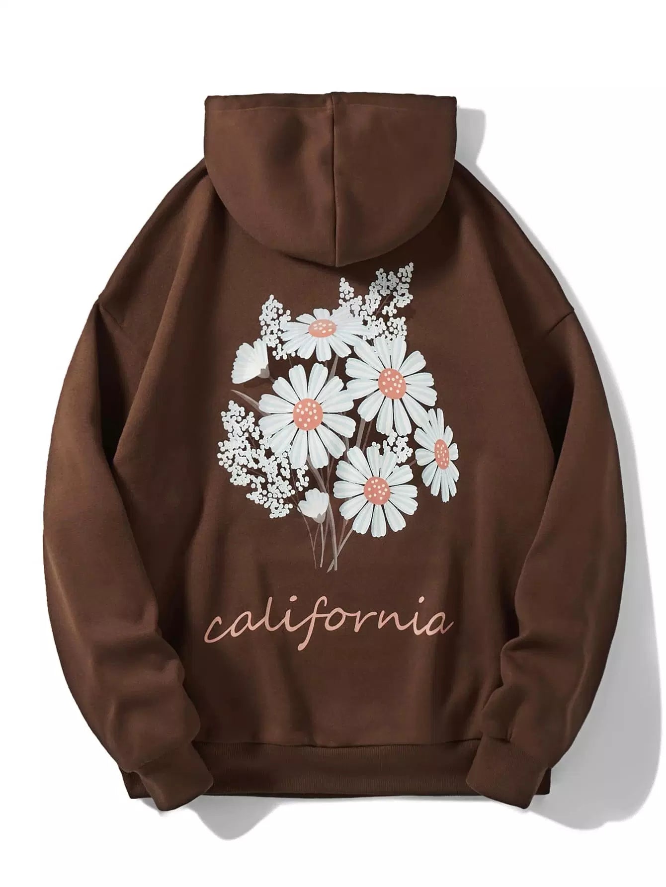 Women - Letter & Floral Print Drawstring Thermal Hoodie