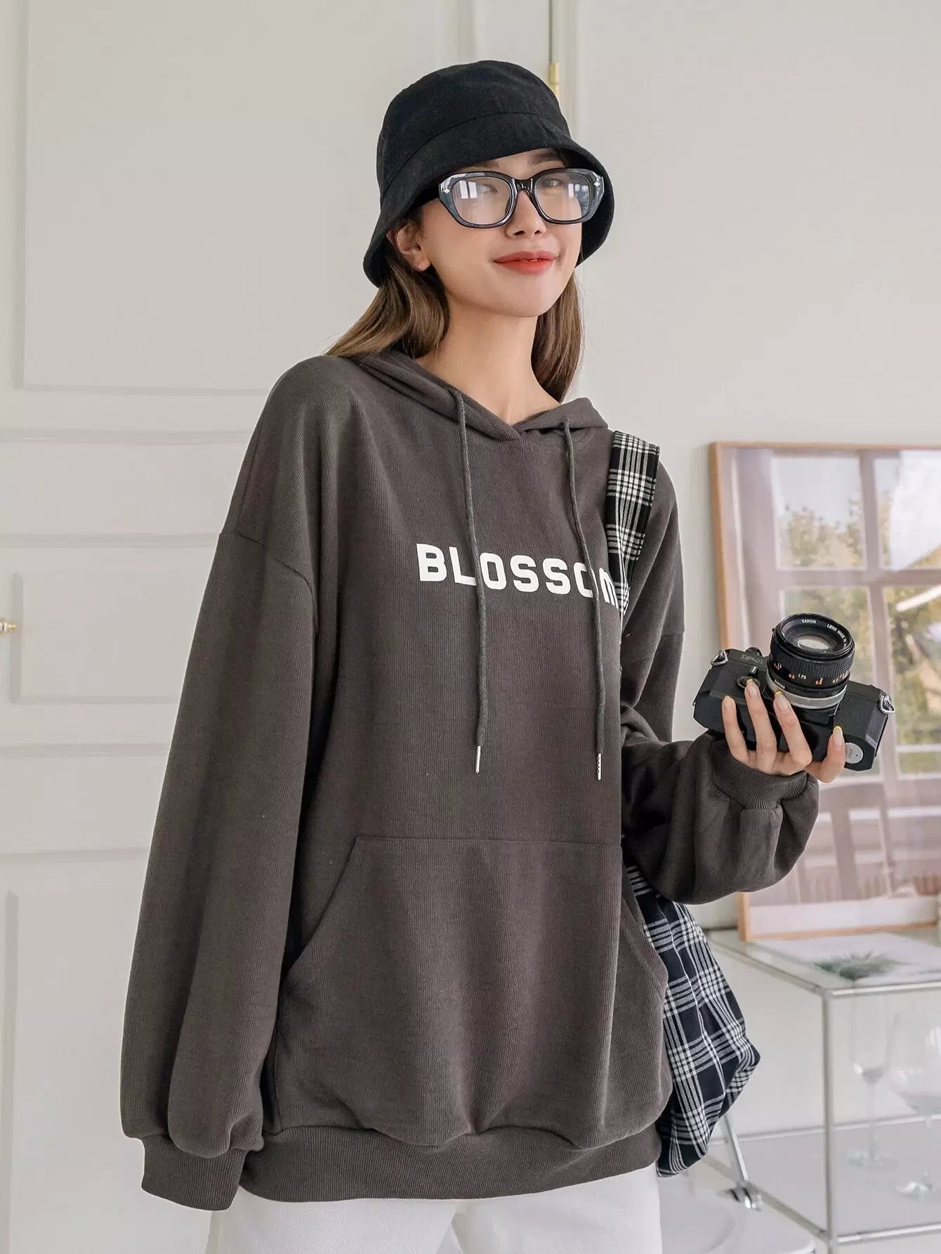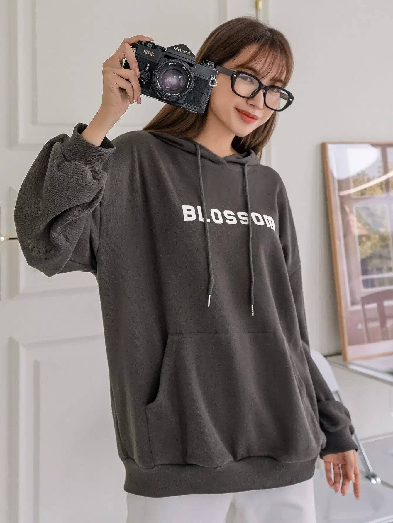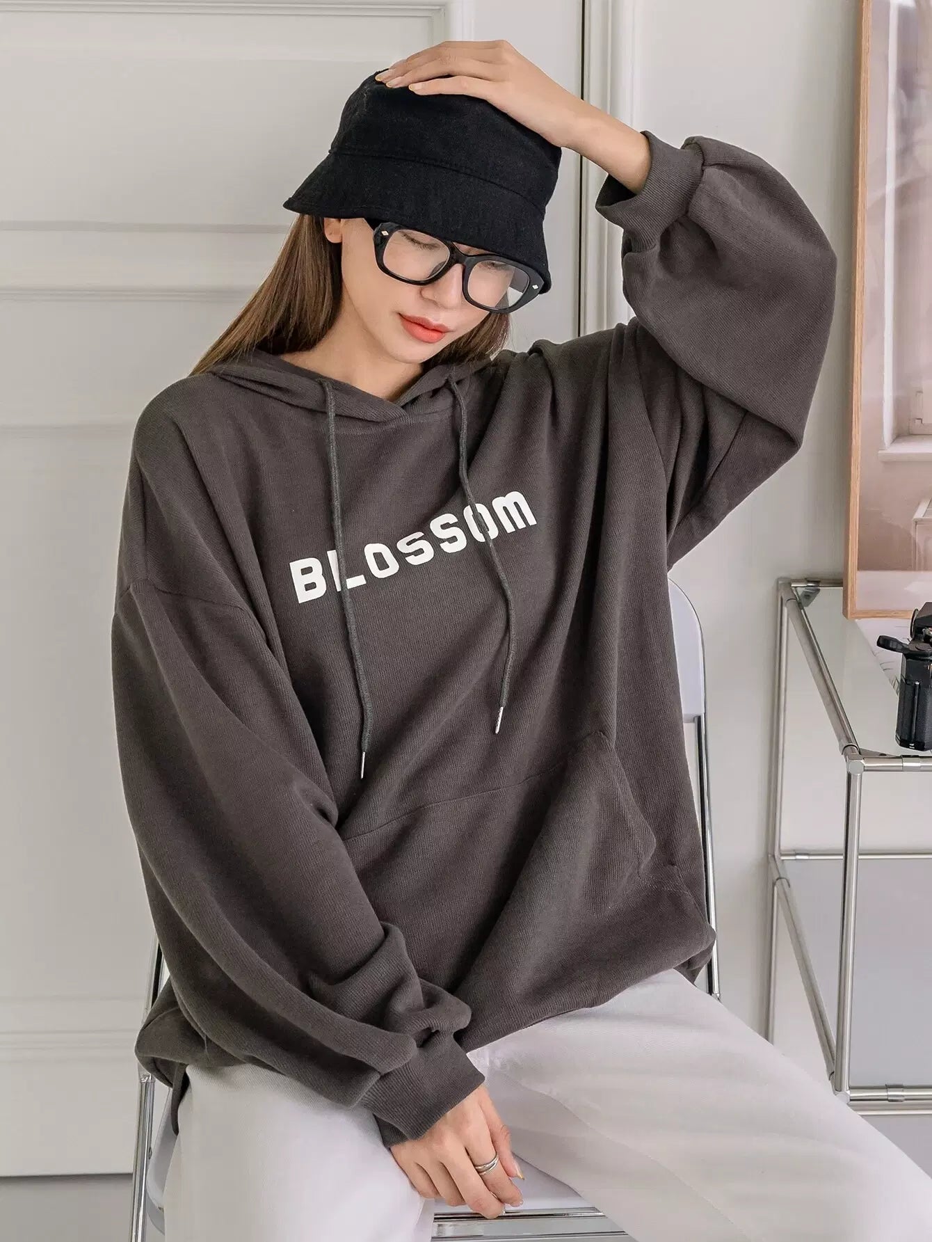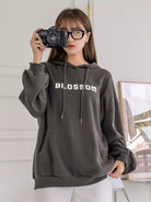 Letter Graphic Drop Shoulder Drawstring Hoodie