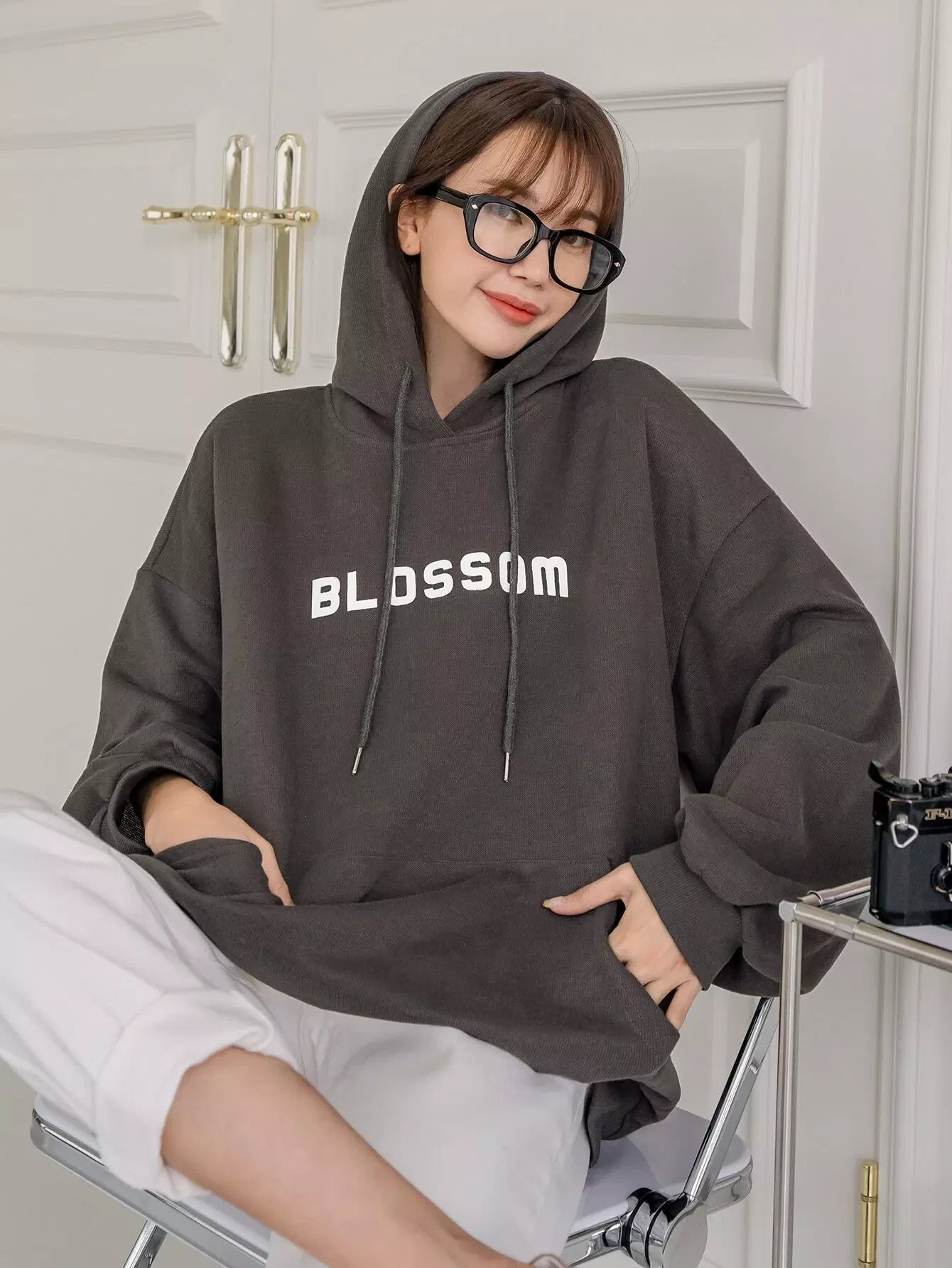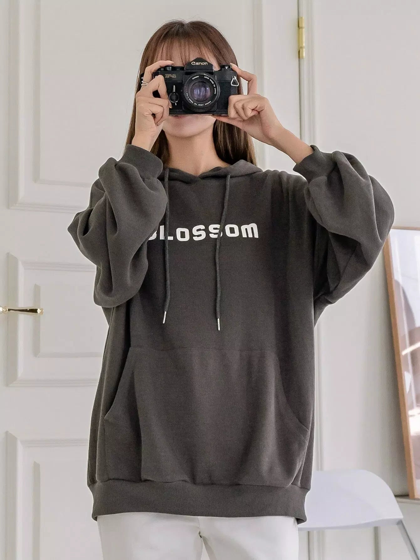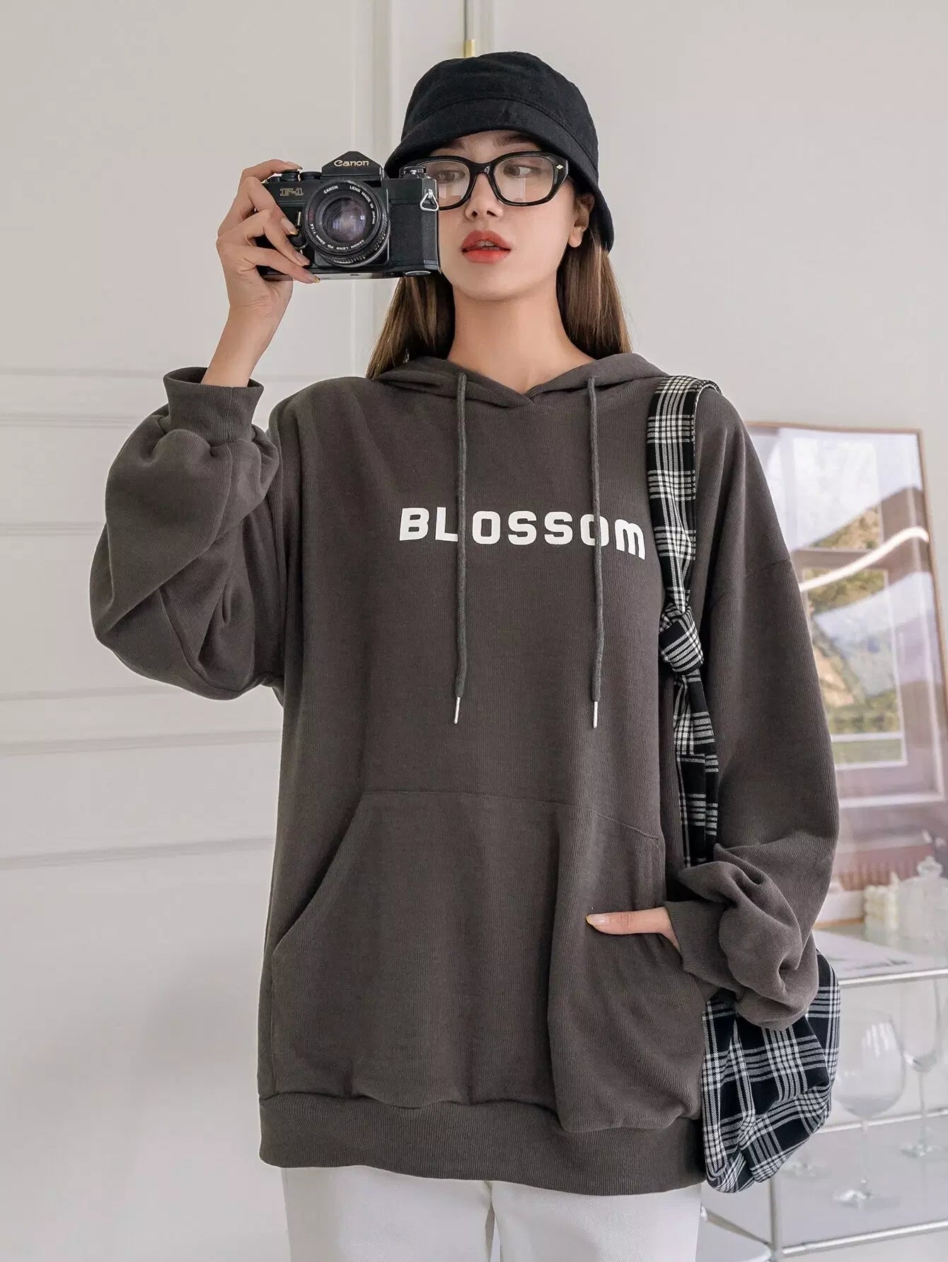 Letter Graphic Drop Shoulder Drawstring Hoodie