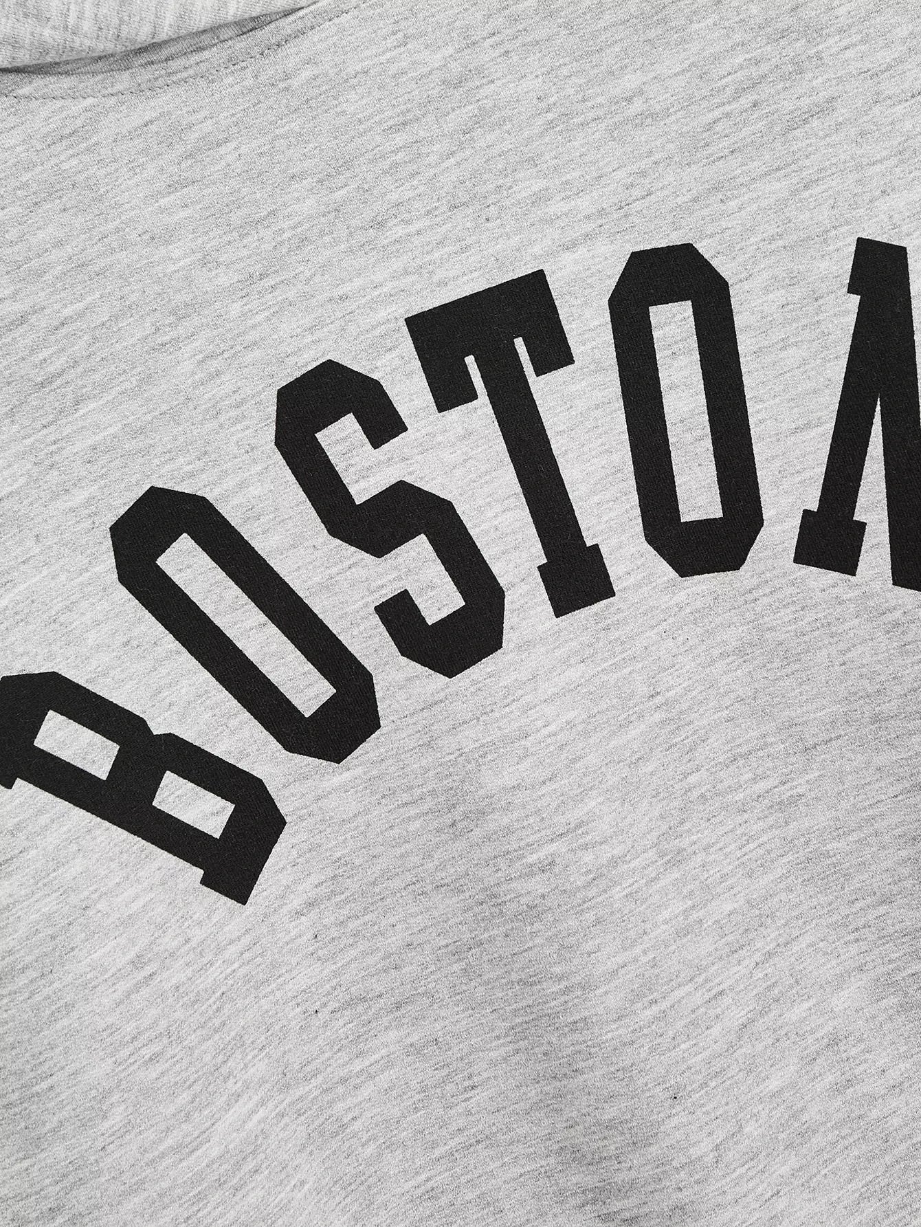 Letter Graphic Drop Shoulder Drawstring Hoodie