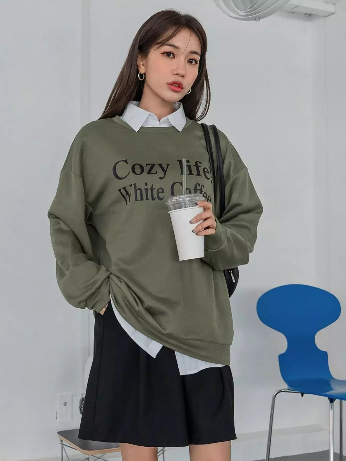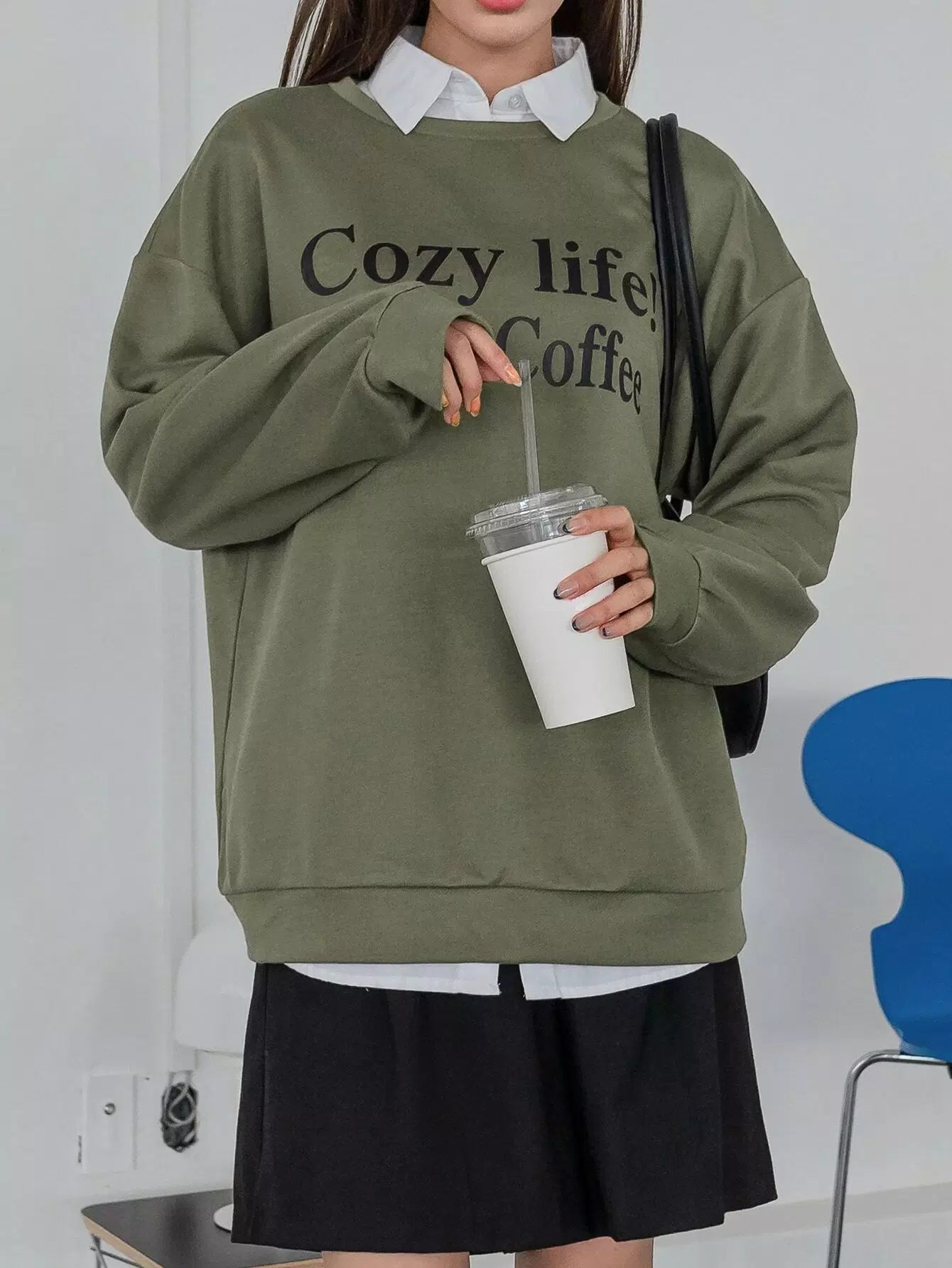 Letter Graphic Drop Shoulder Pullover Without Blouse