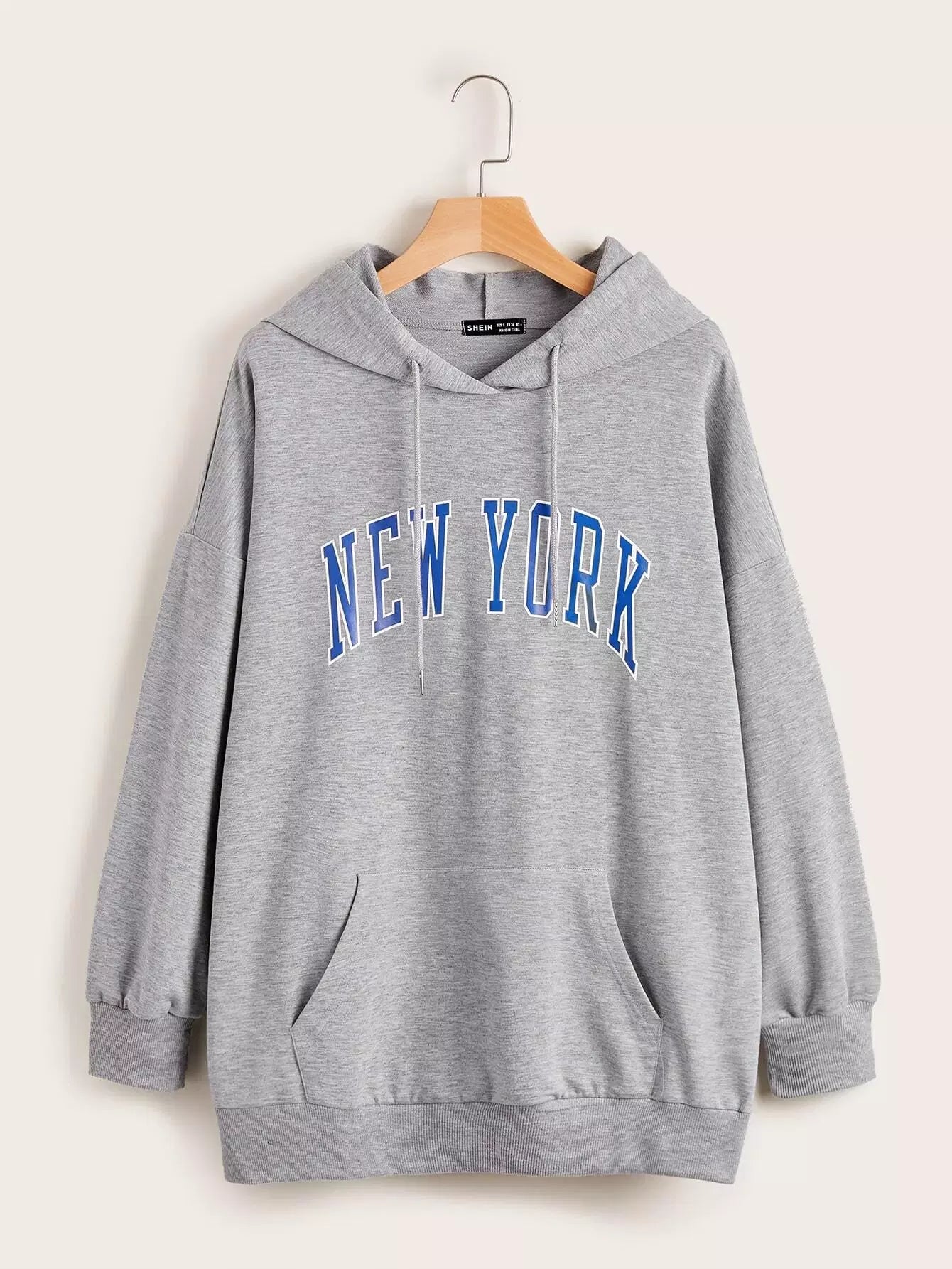Letter Graphic Kangaroo Pocket Drawstring Oversized Hoodie