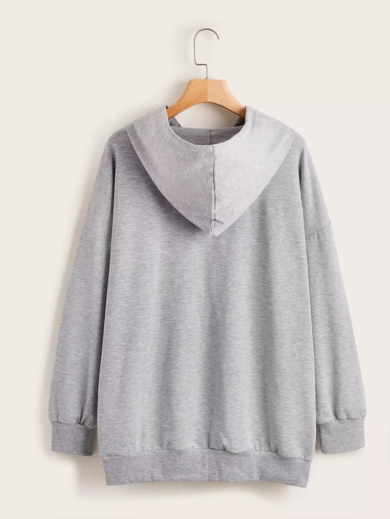 Women - Letter Graphic Kangaroo Pocket Drawstring Oversized Hoodie