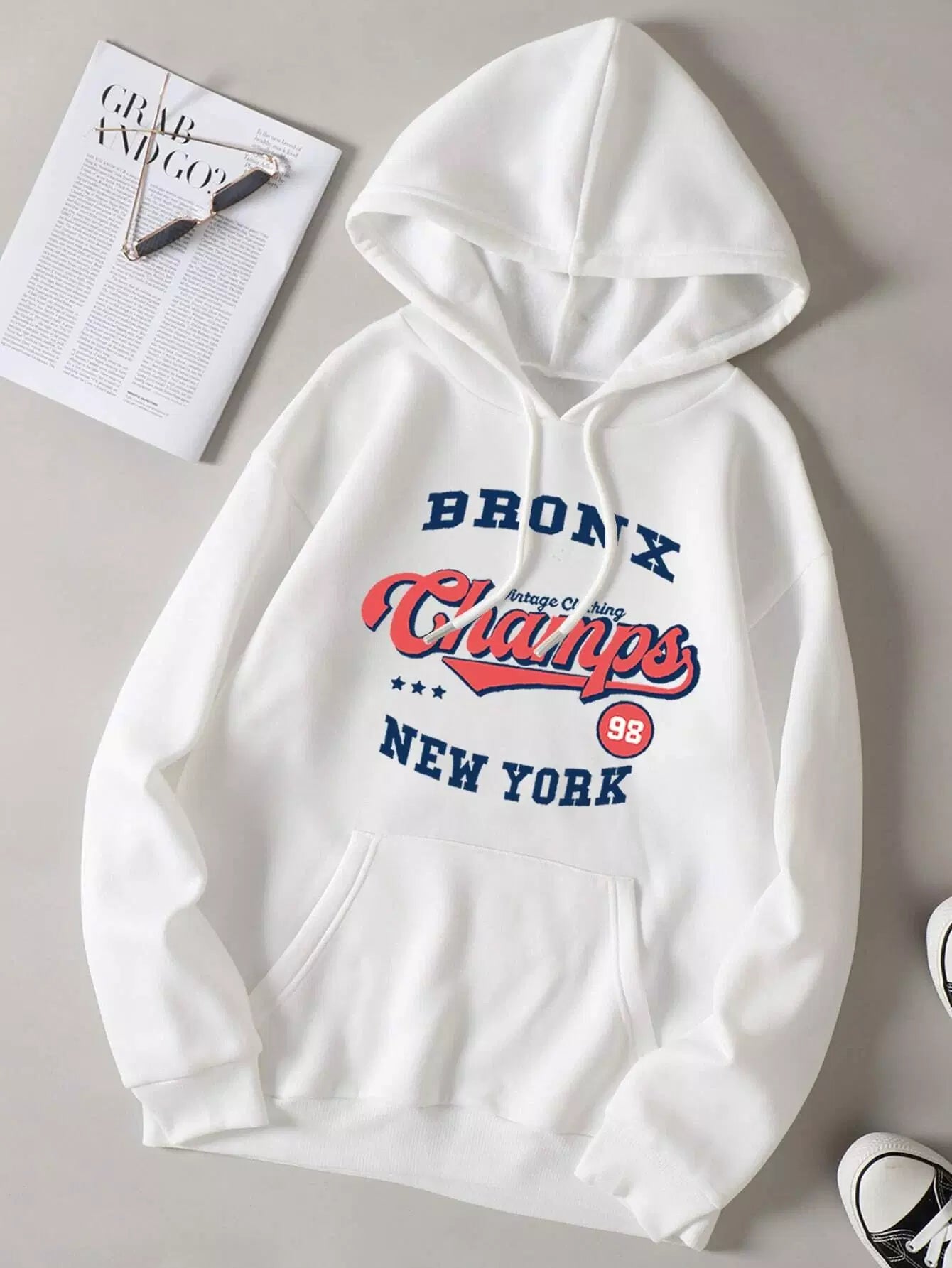 Letter Graphic Kangaroo Pocket Drawstring Thermal Hoodie