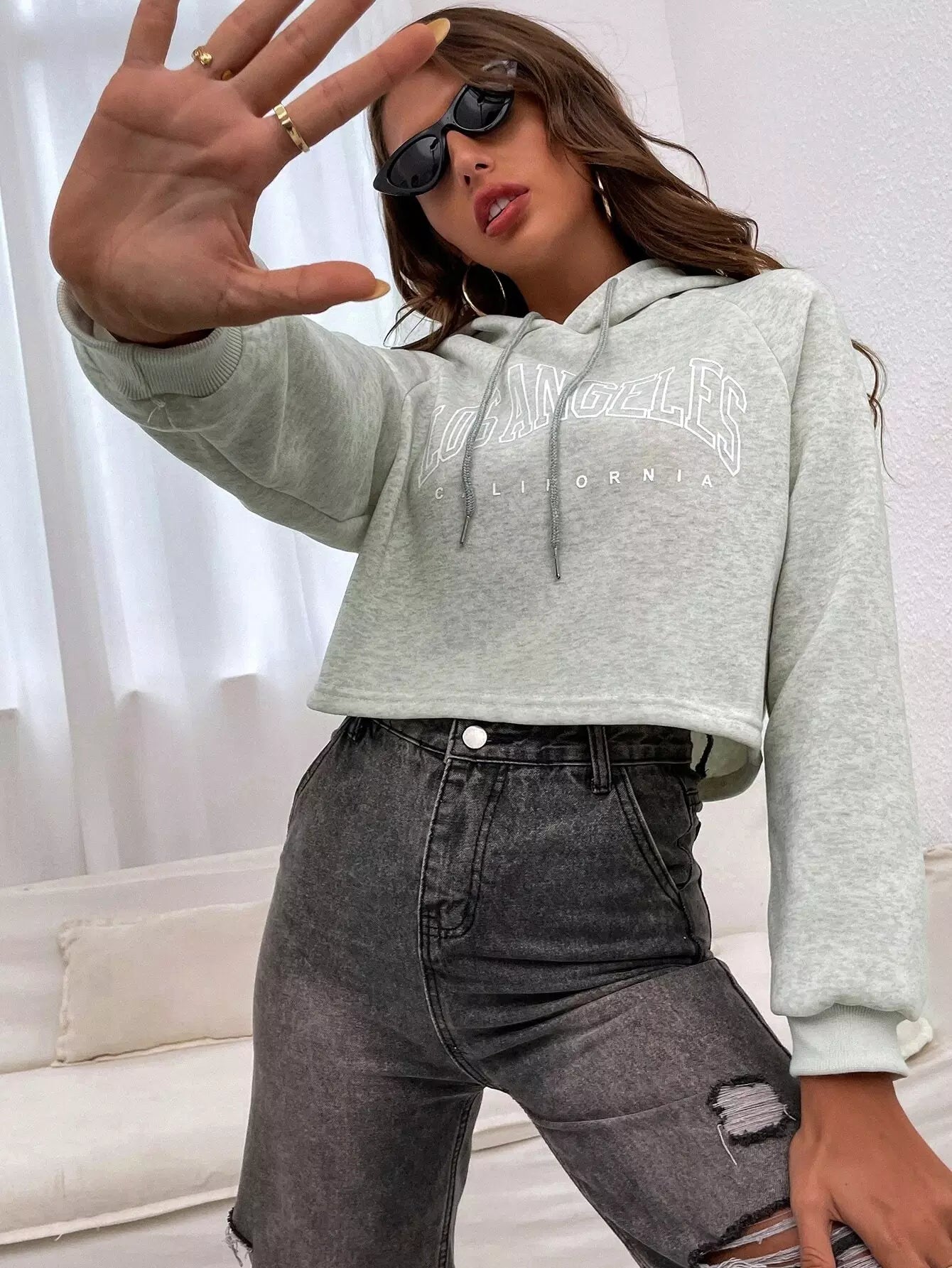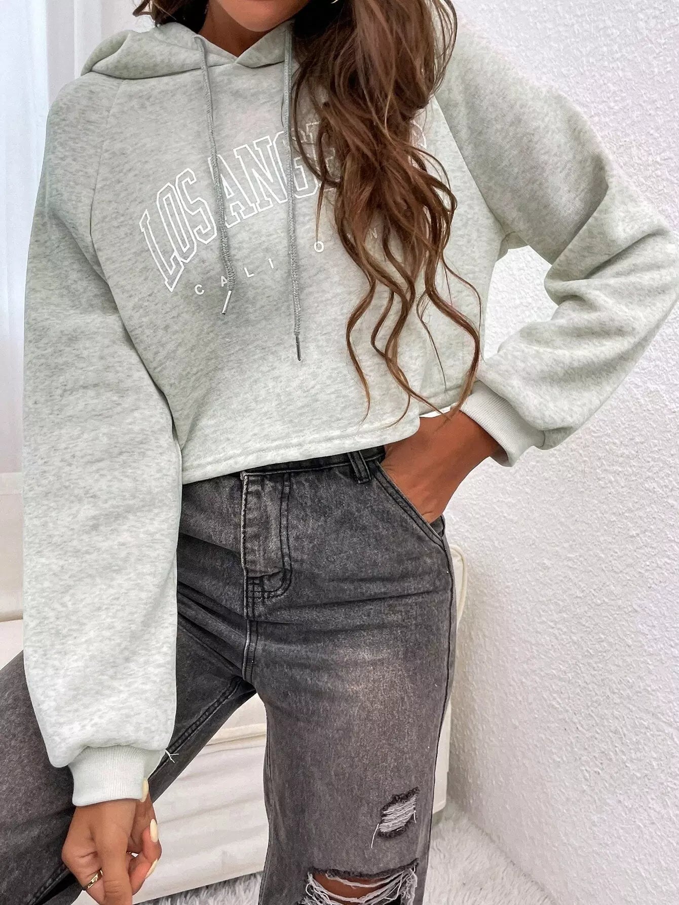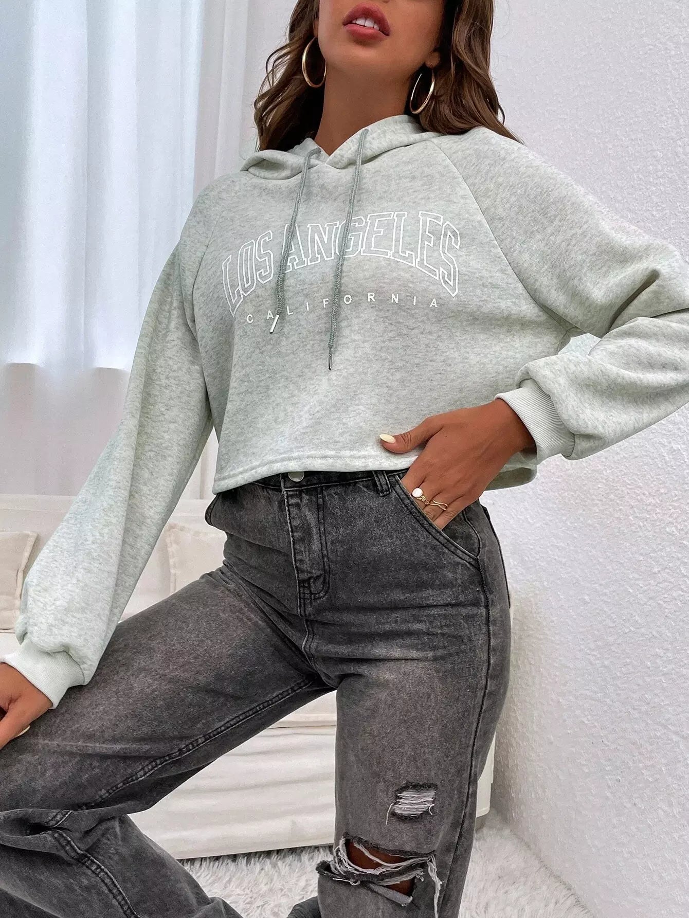 Letter Graphic Raglan Sleeve Drawstring Hoodie