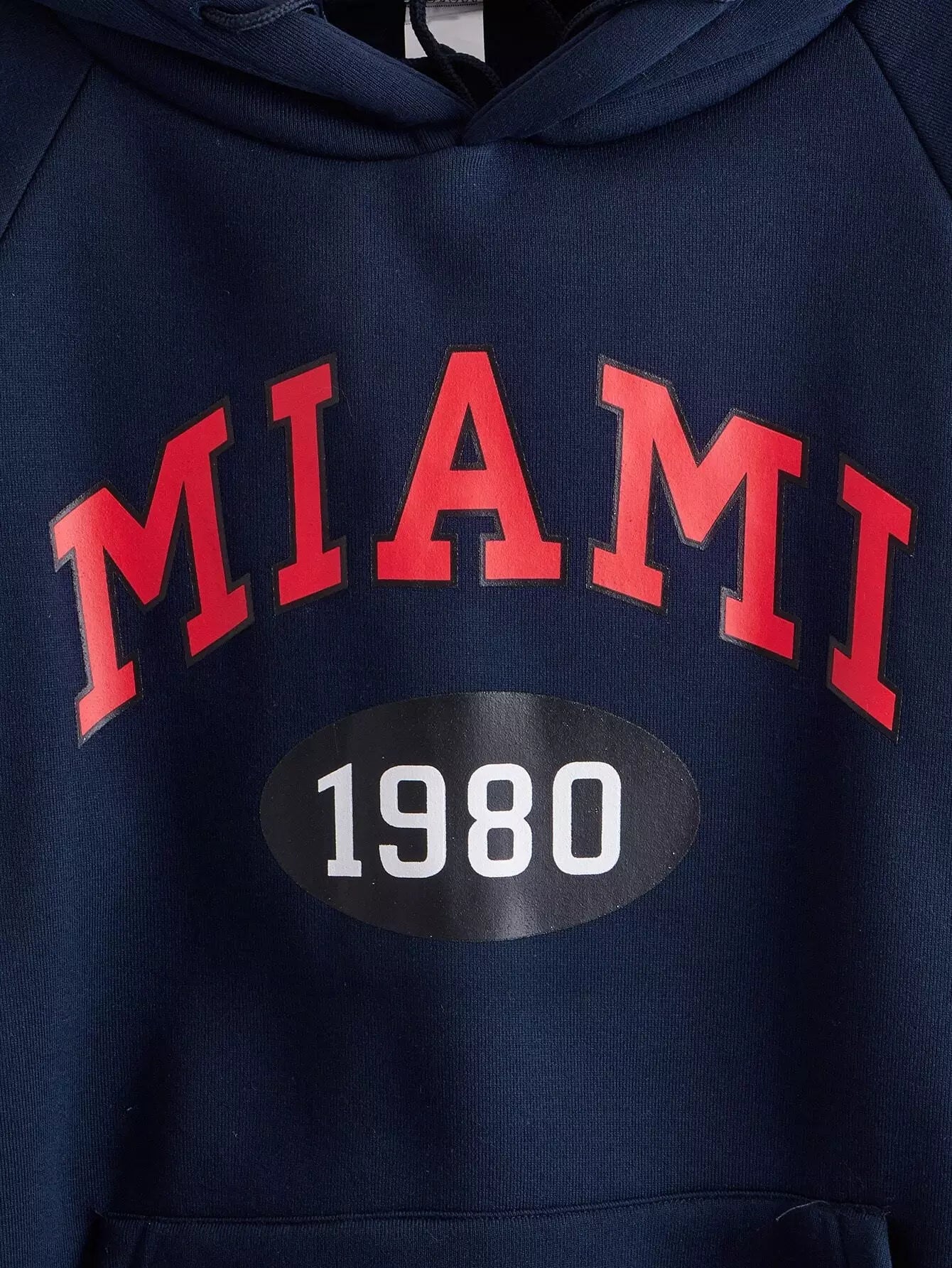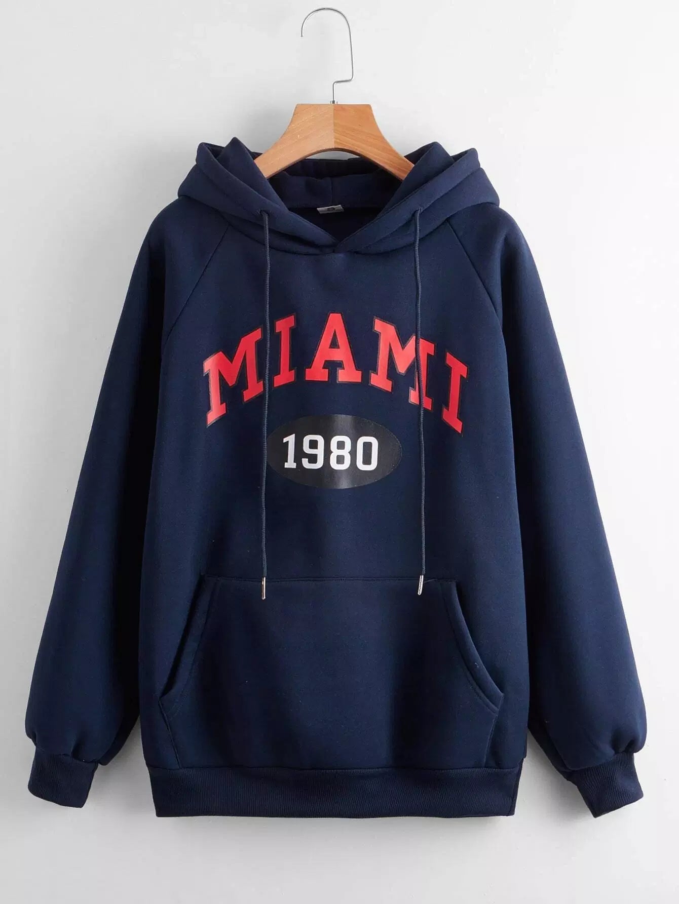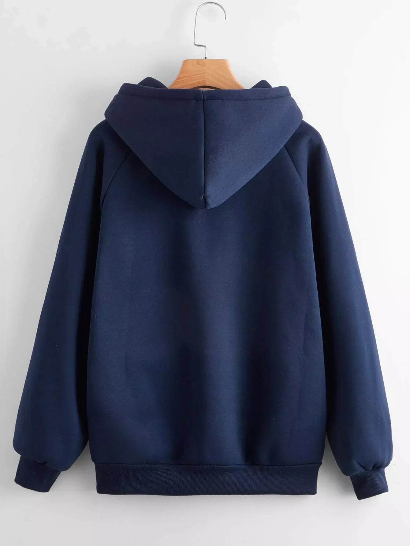 Letter Graphic Raglan Sleeve Thermal Hoodie