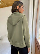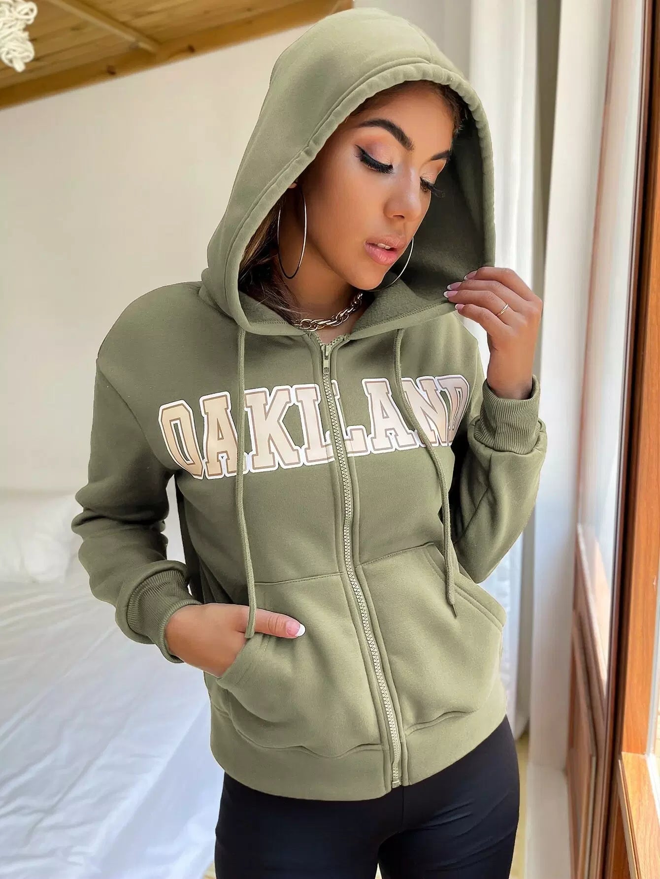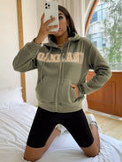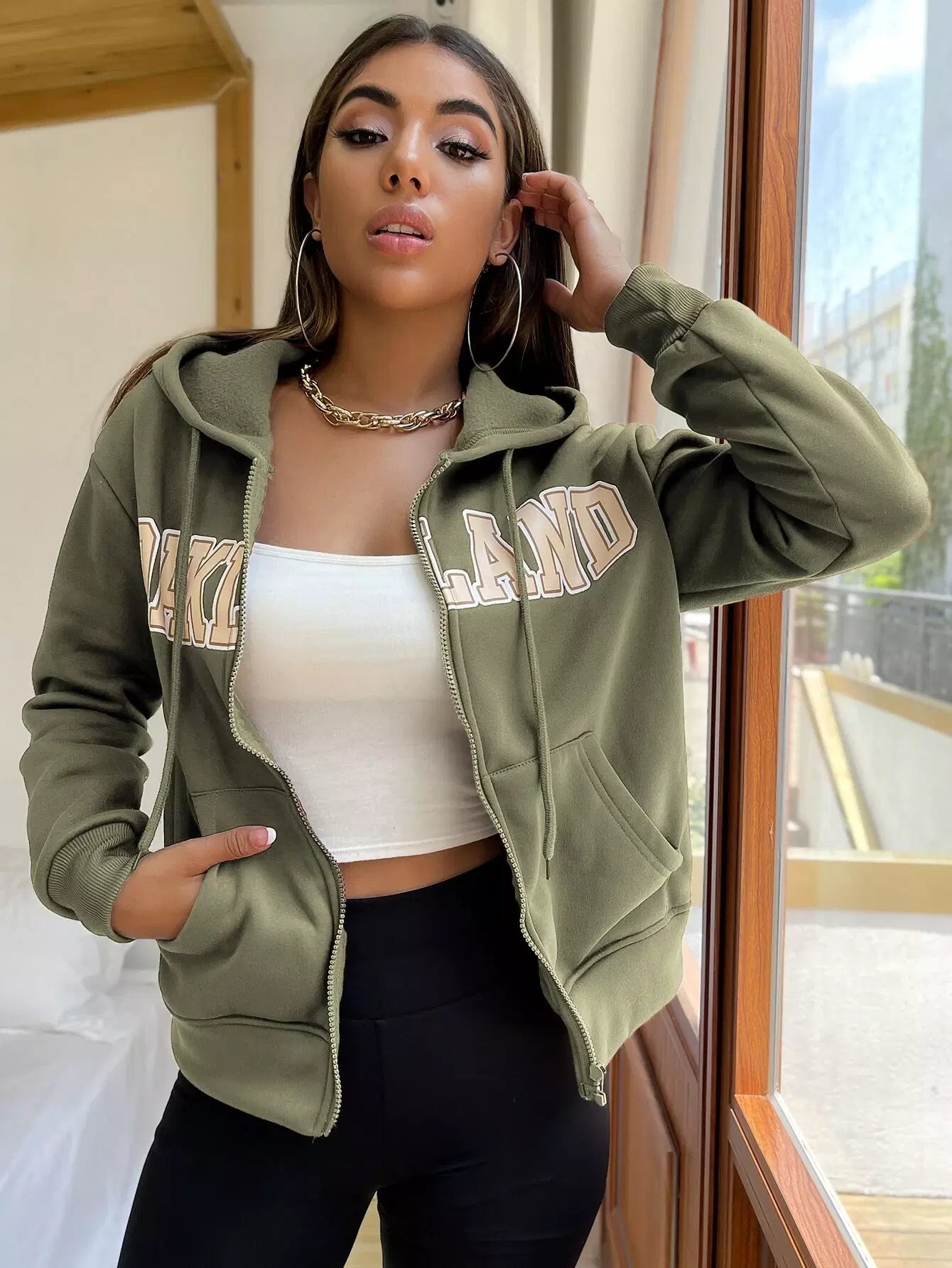 Letter Graphic Zip Up Drawstring Thermal Hoodie