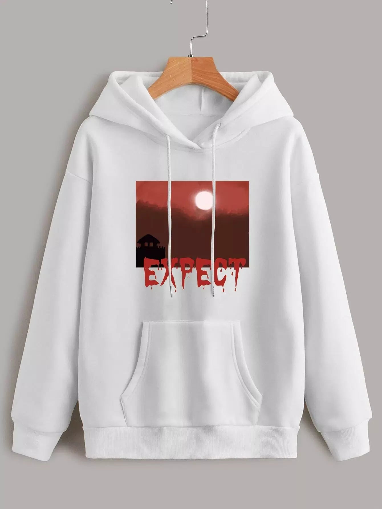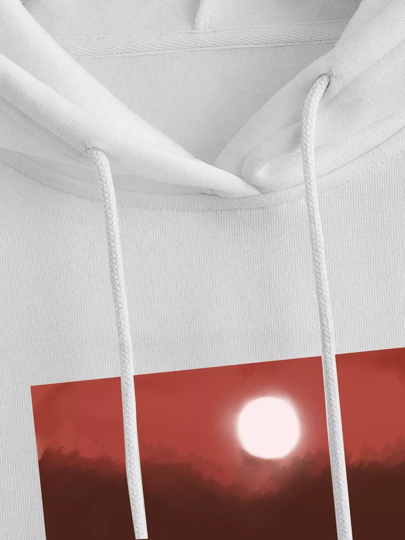Letter & Scenery Print Drop Shoulder Drawstring Thermal Hoodie