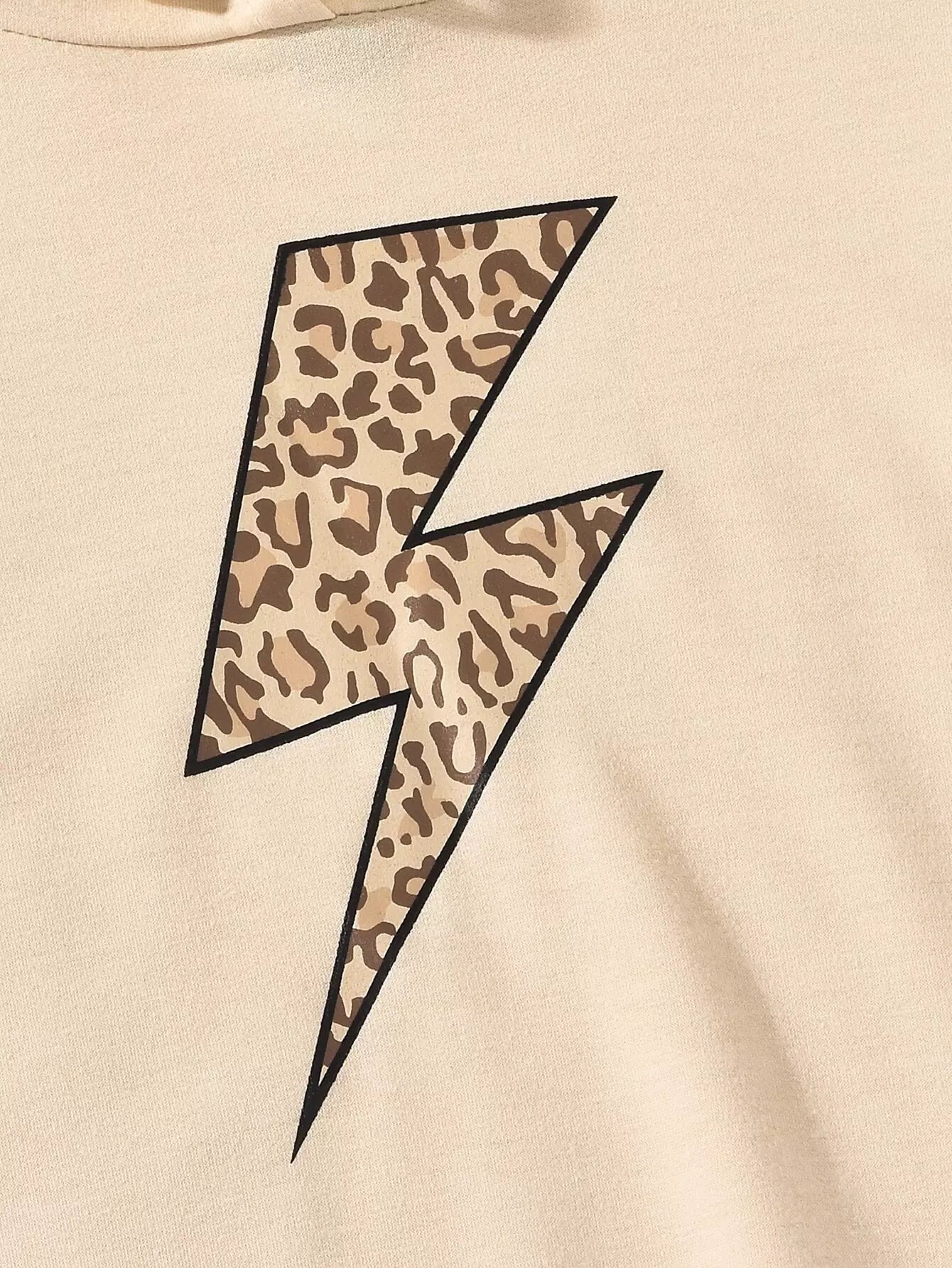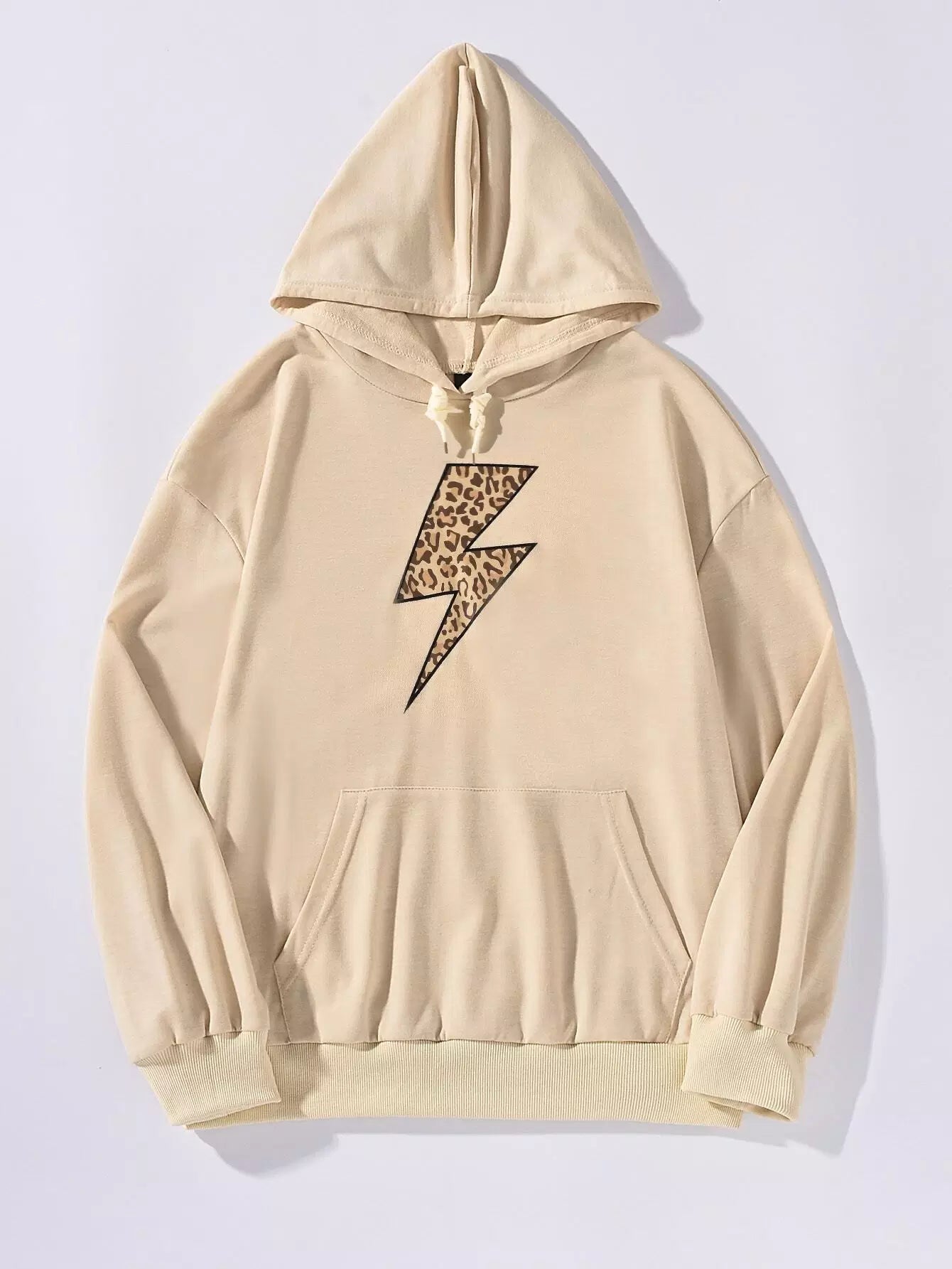 Lightning Print Kangaroo Pocket Drawstring Hoodie