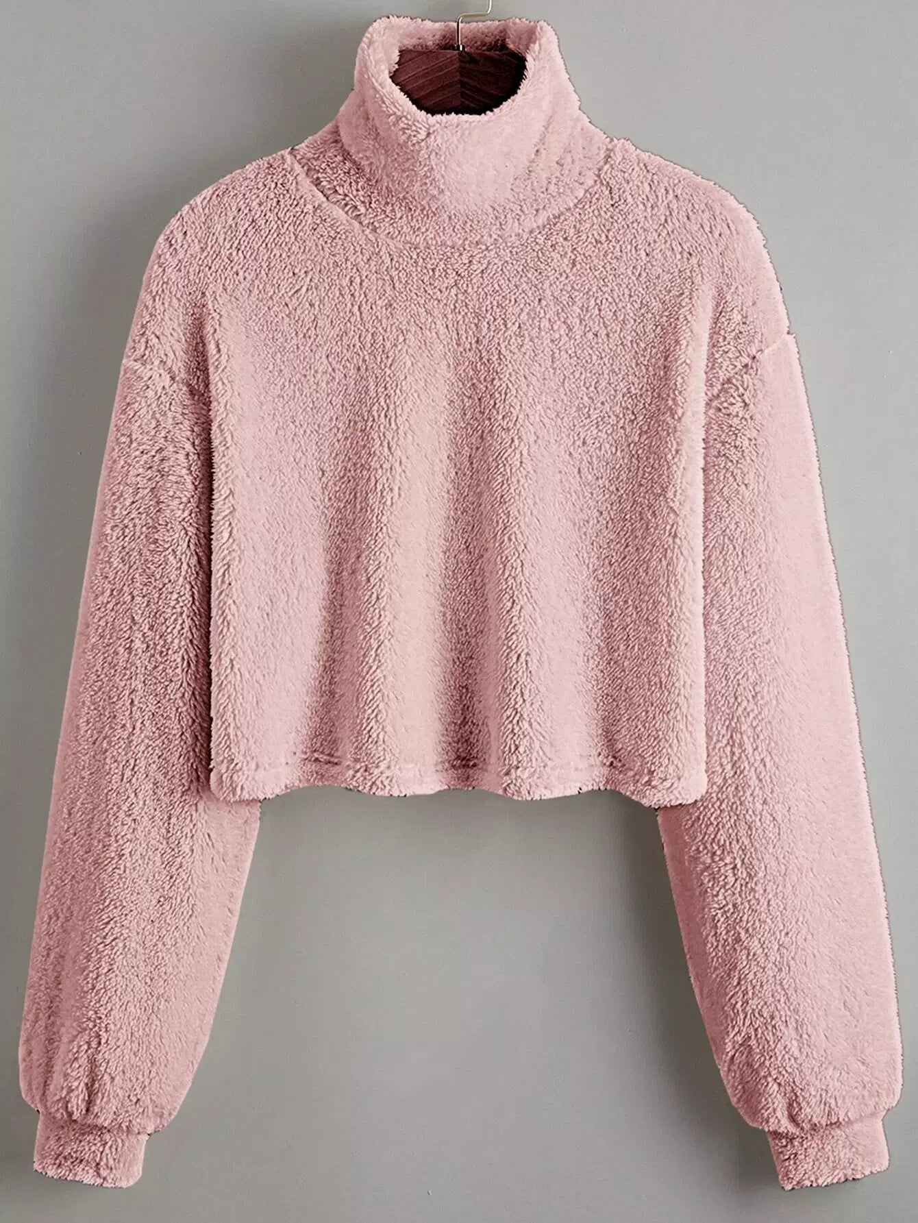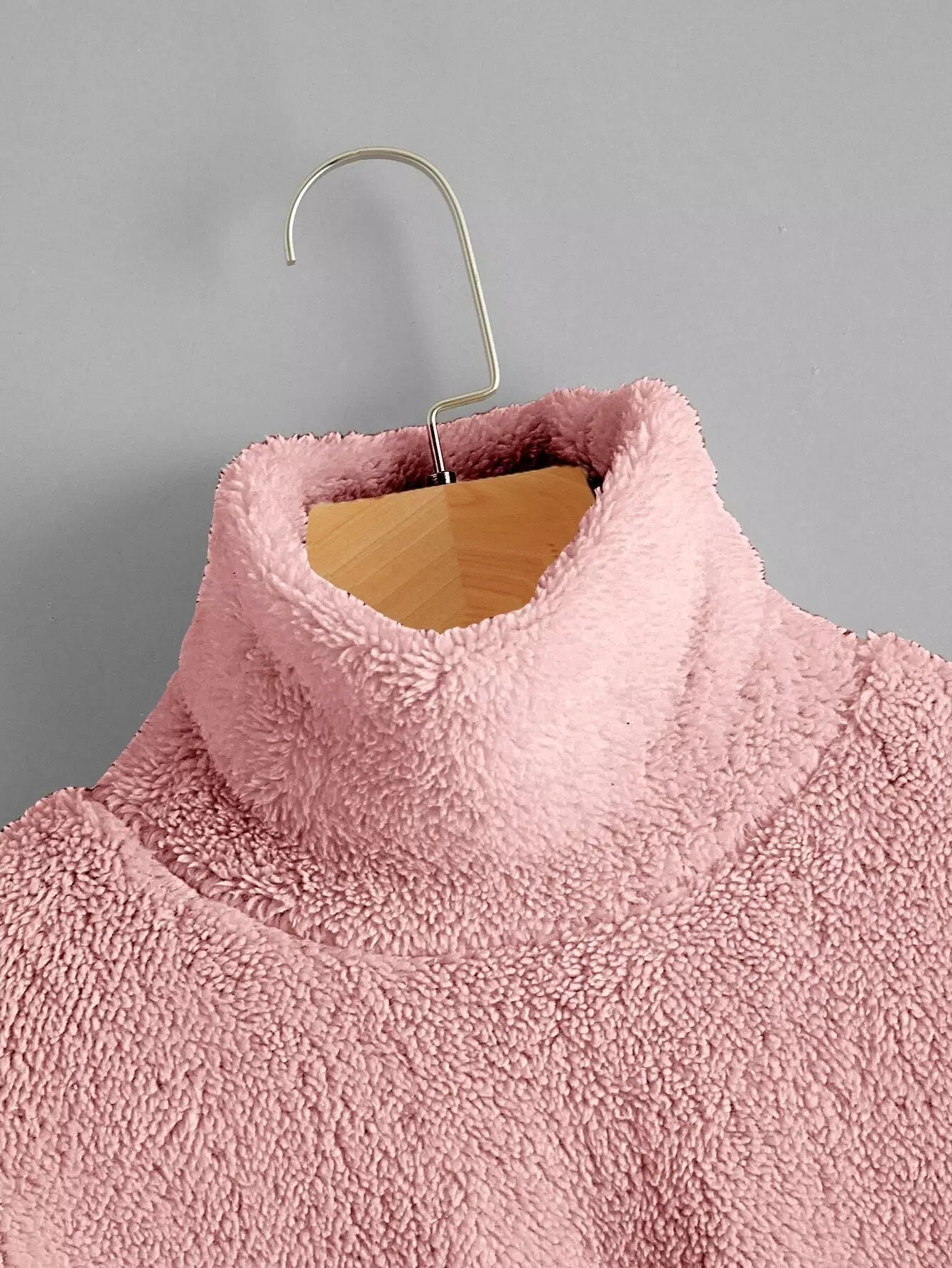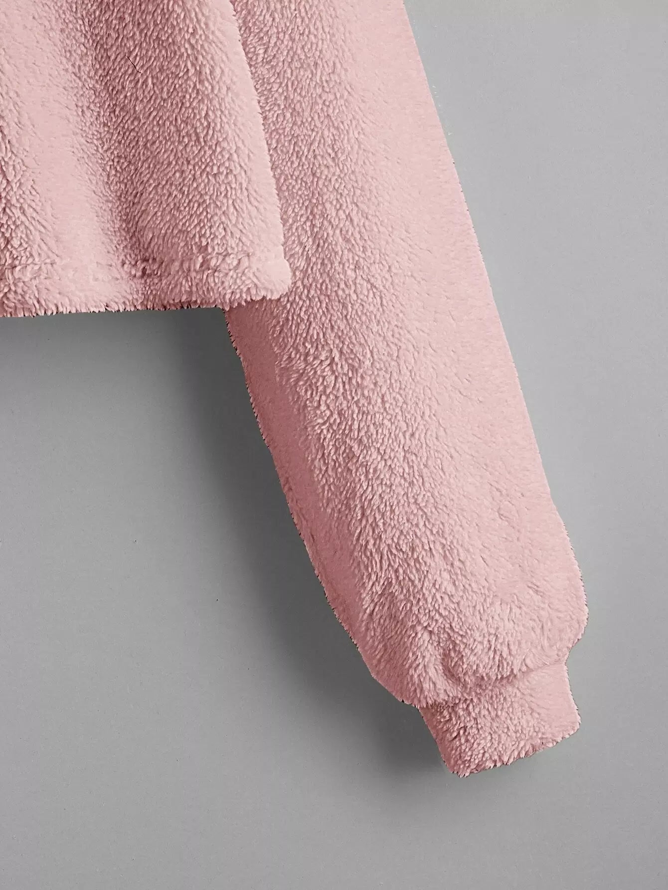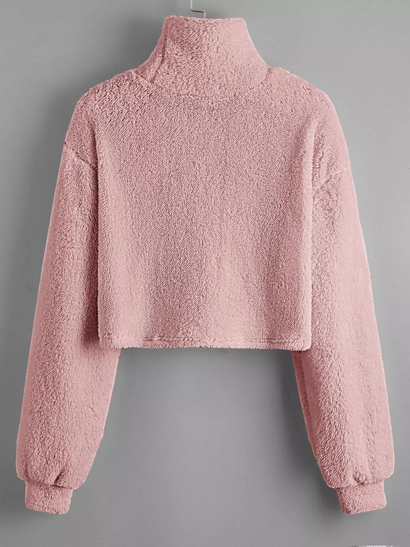 Women - Mock Neck Drop Shoulder Teddy Pullover