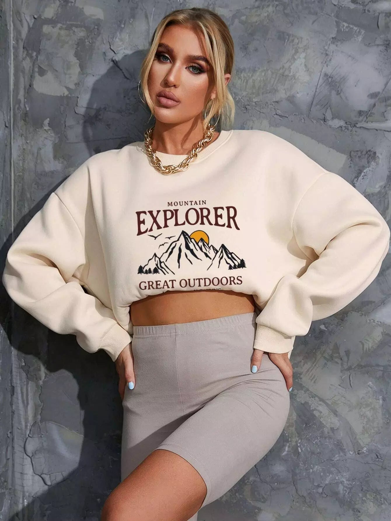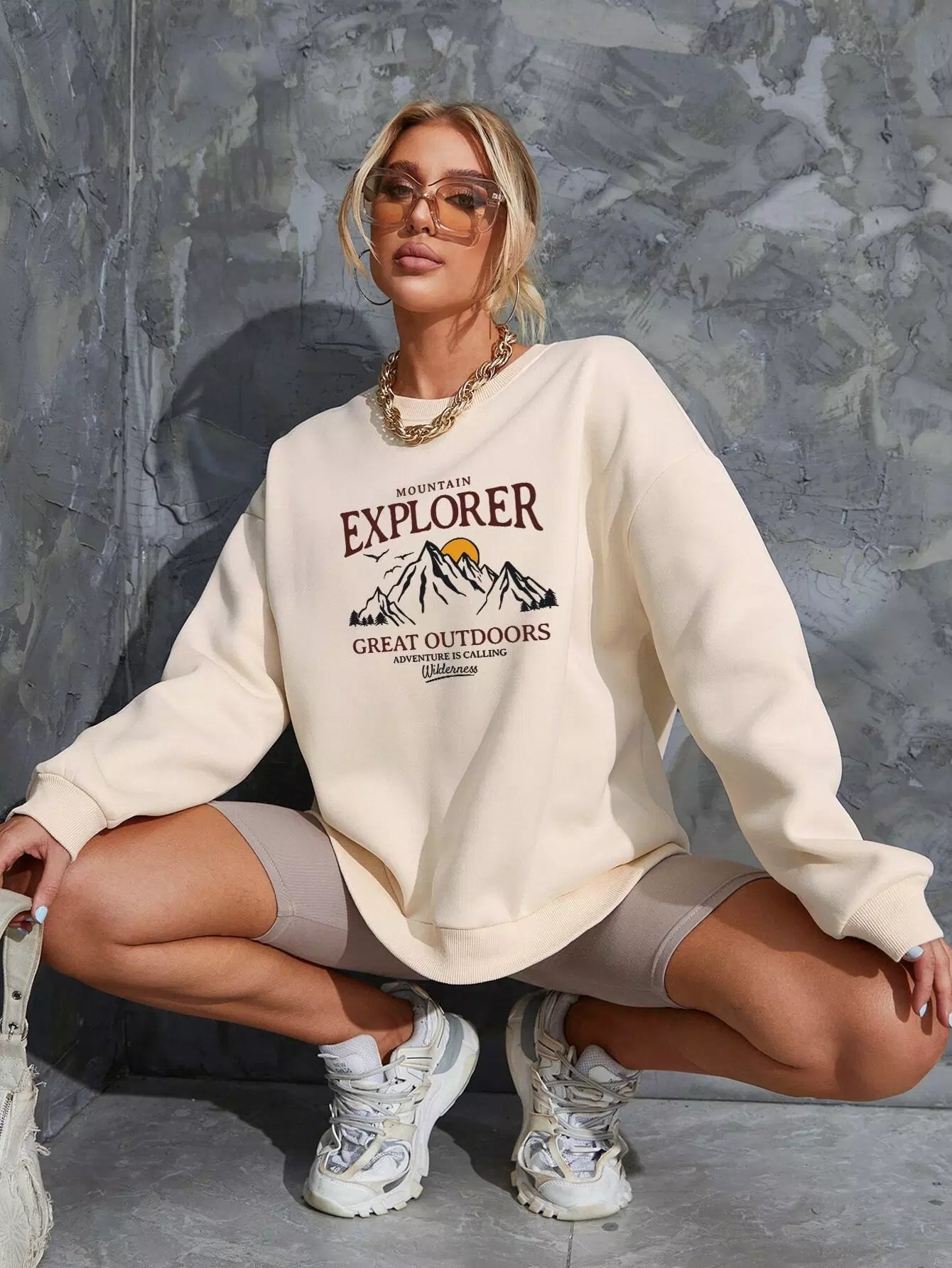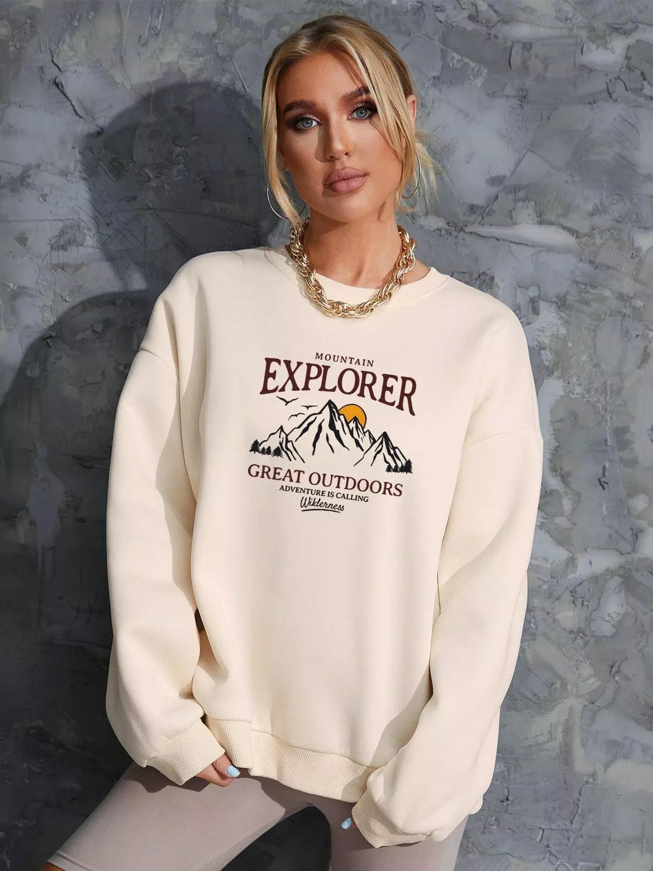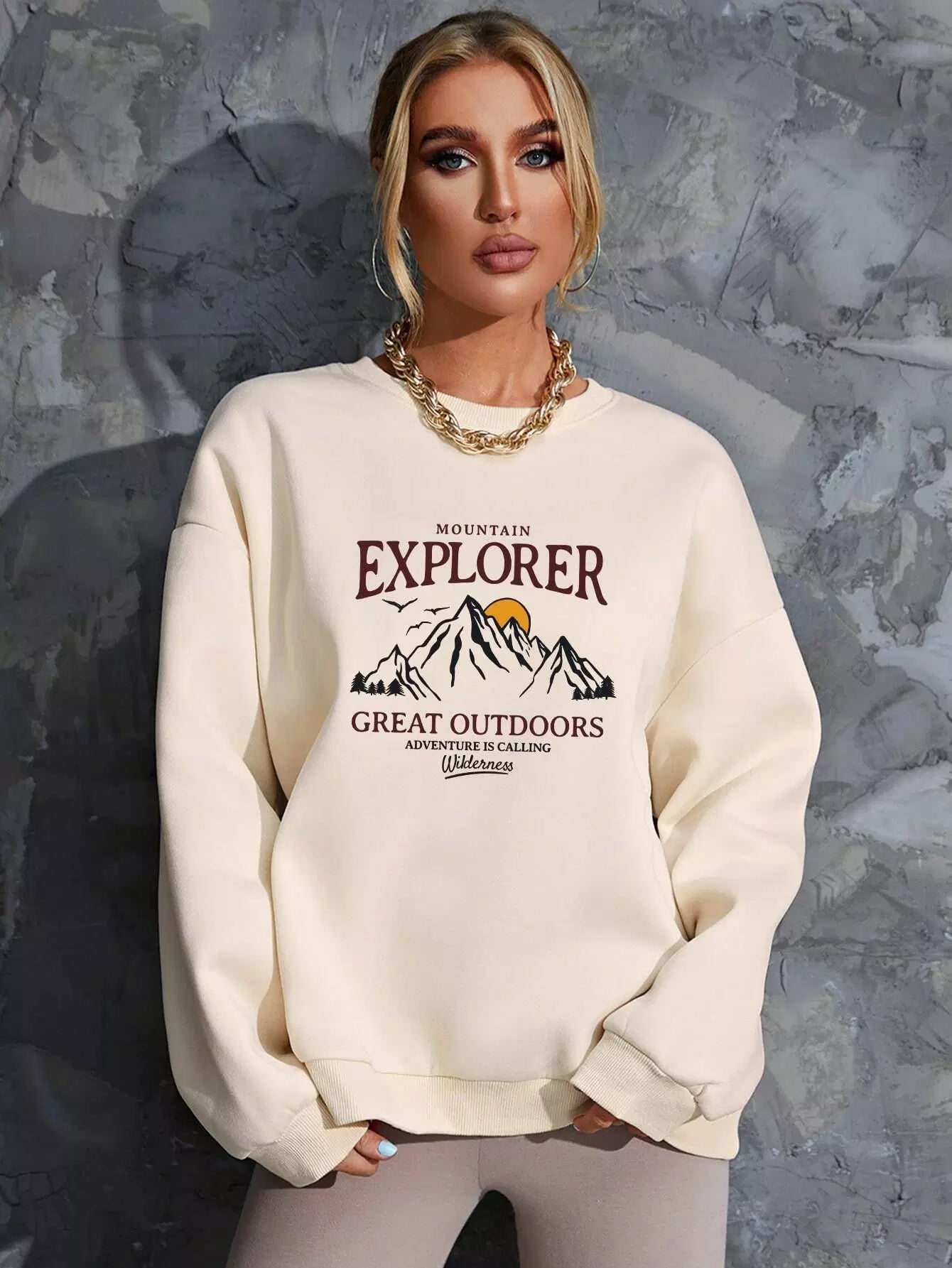 Mountain & Slogan Graphic Drop Shoulder Sweatshirt