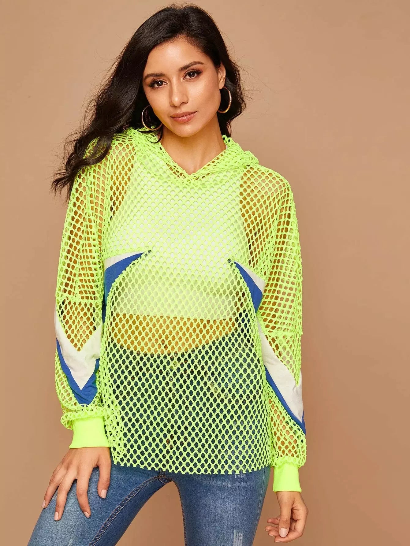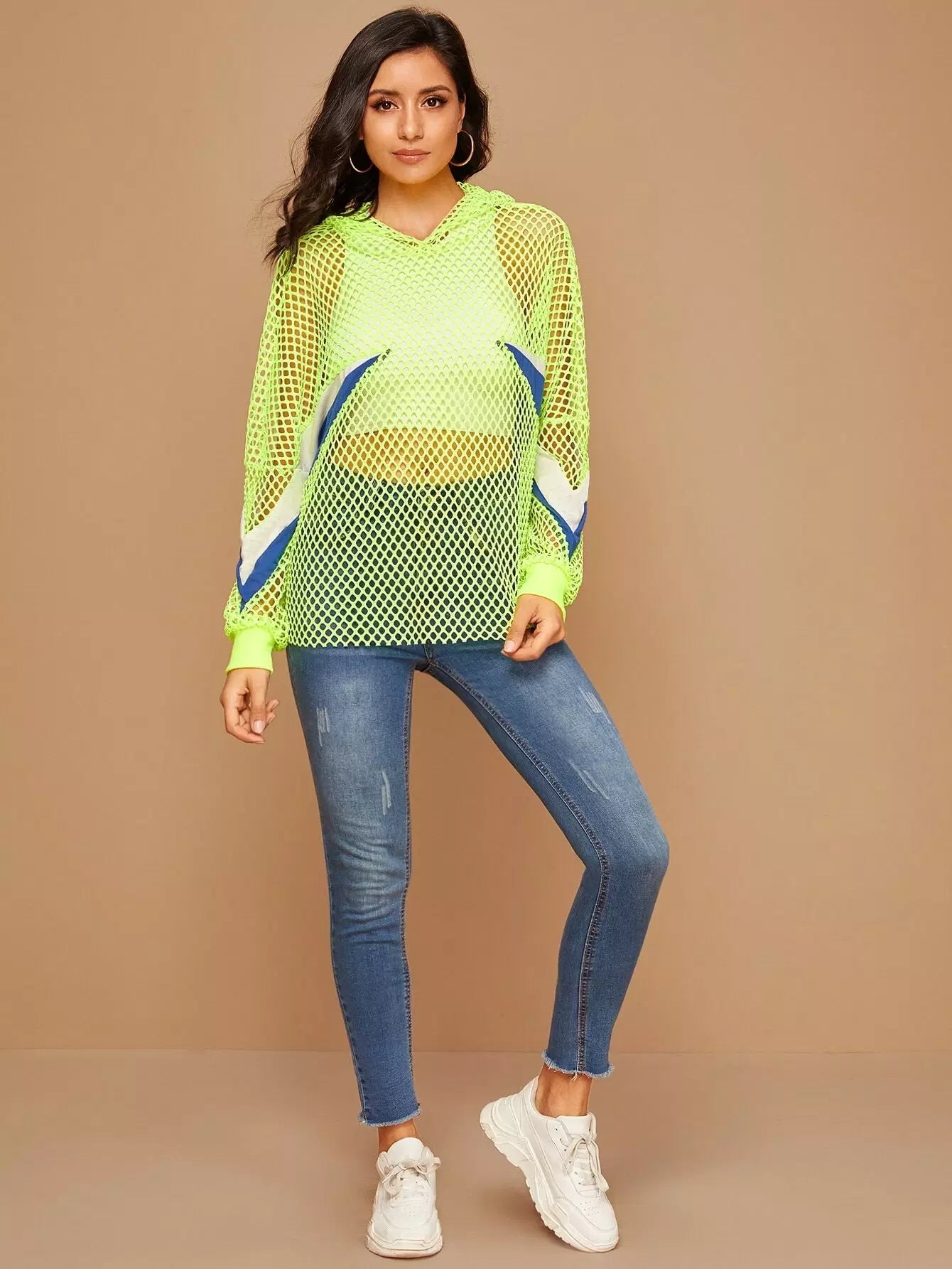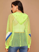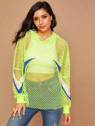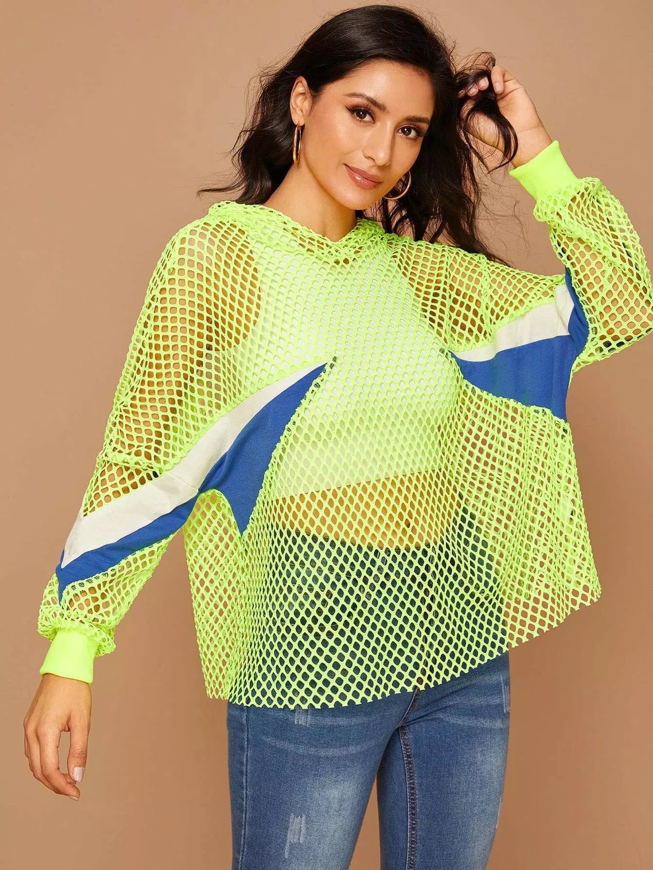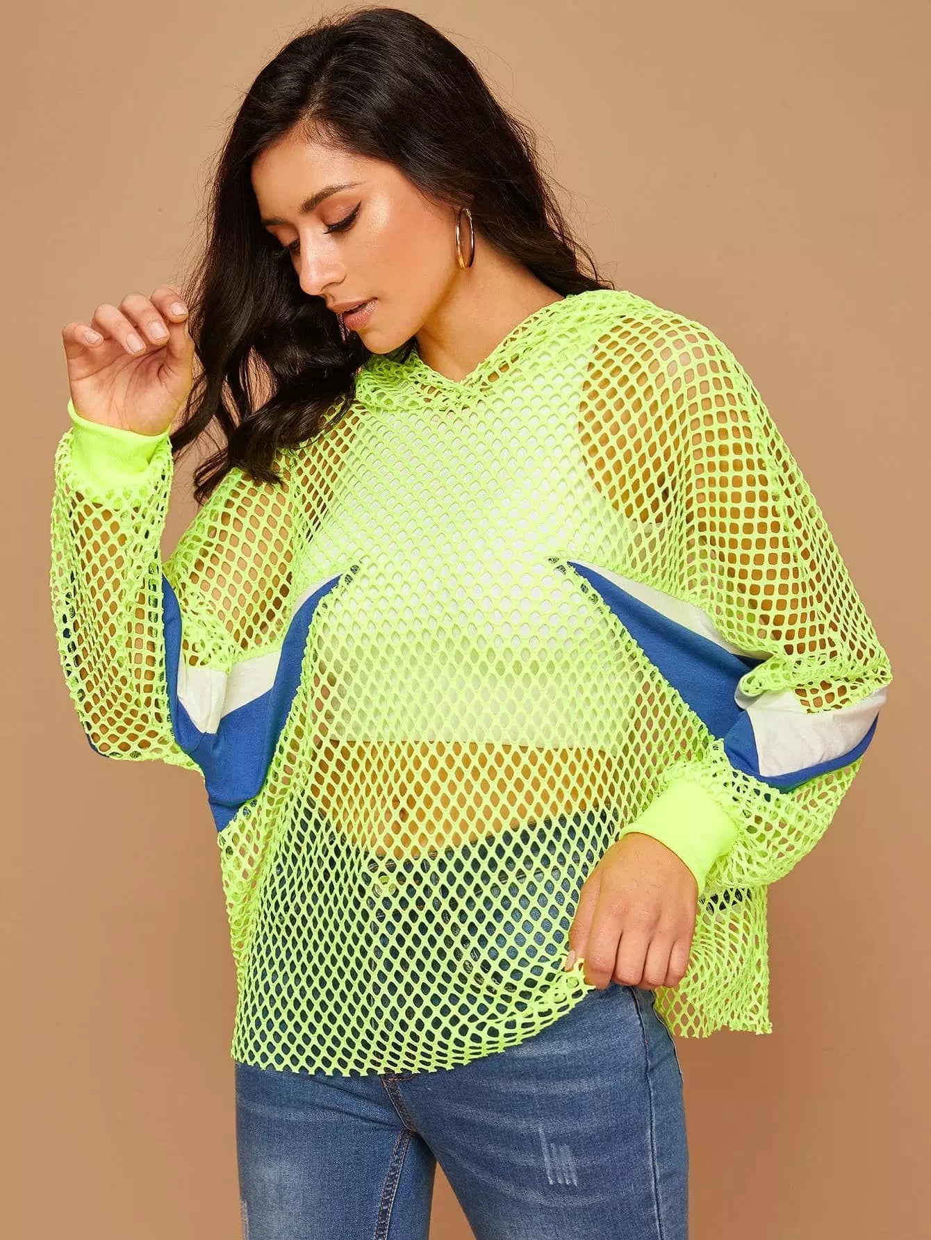 Neon Lime Chevron Dolman Sleeve Fishnet Hoodie
