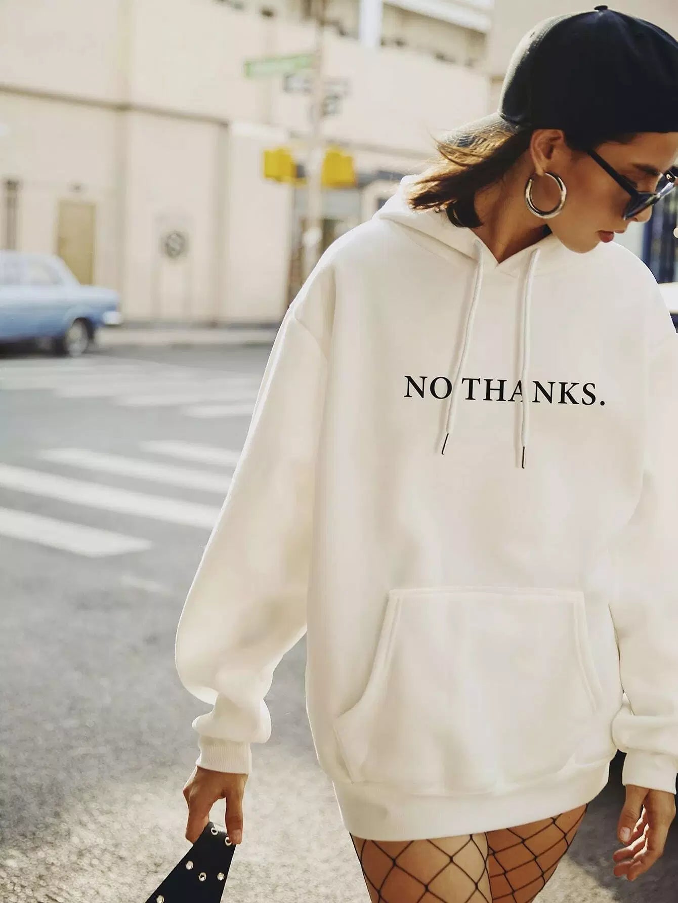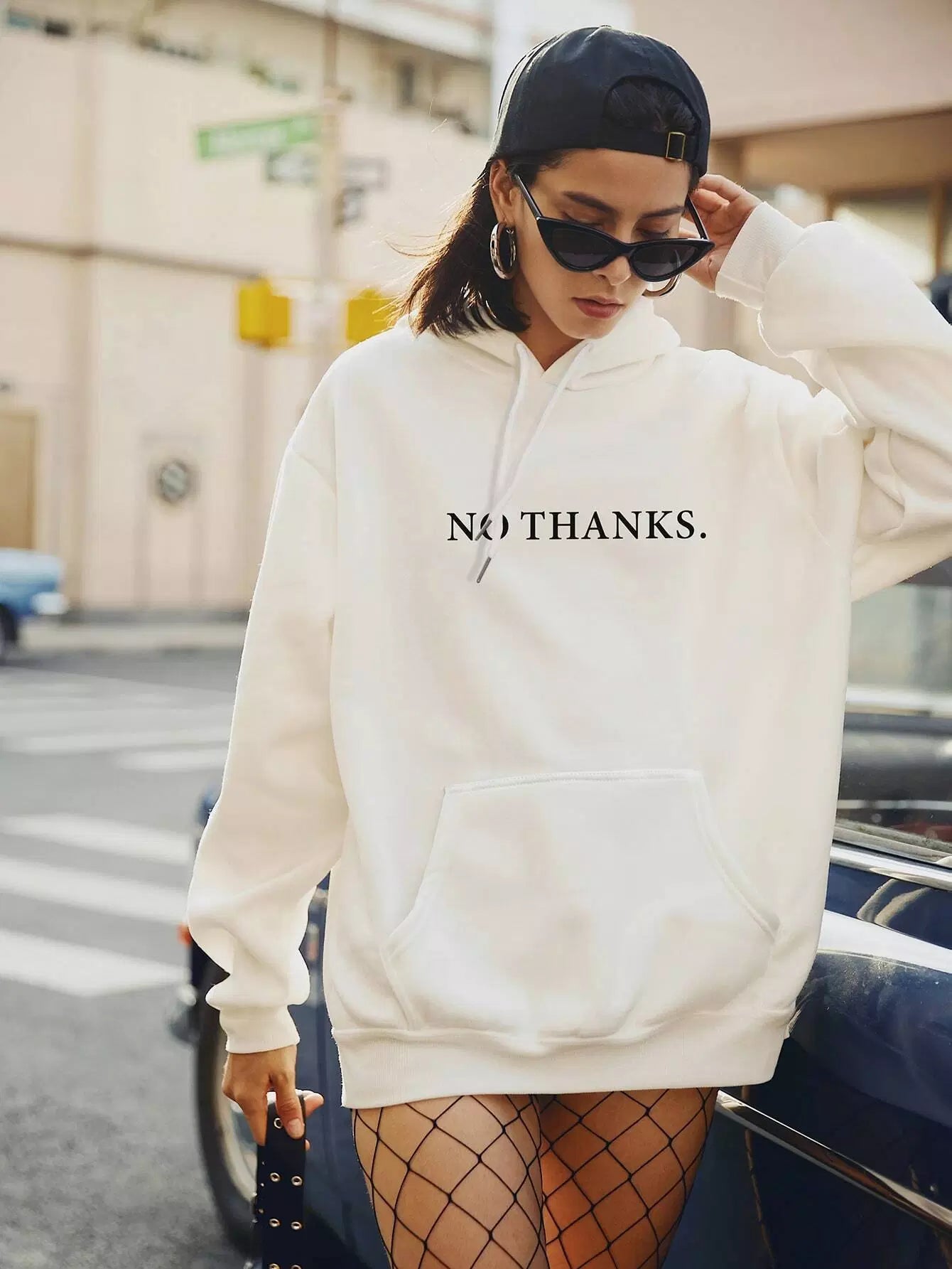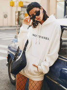 No Thanks Graphic Fleece Drawstring Oversized Hoodie