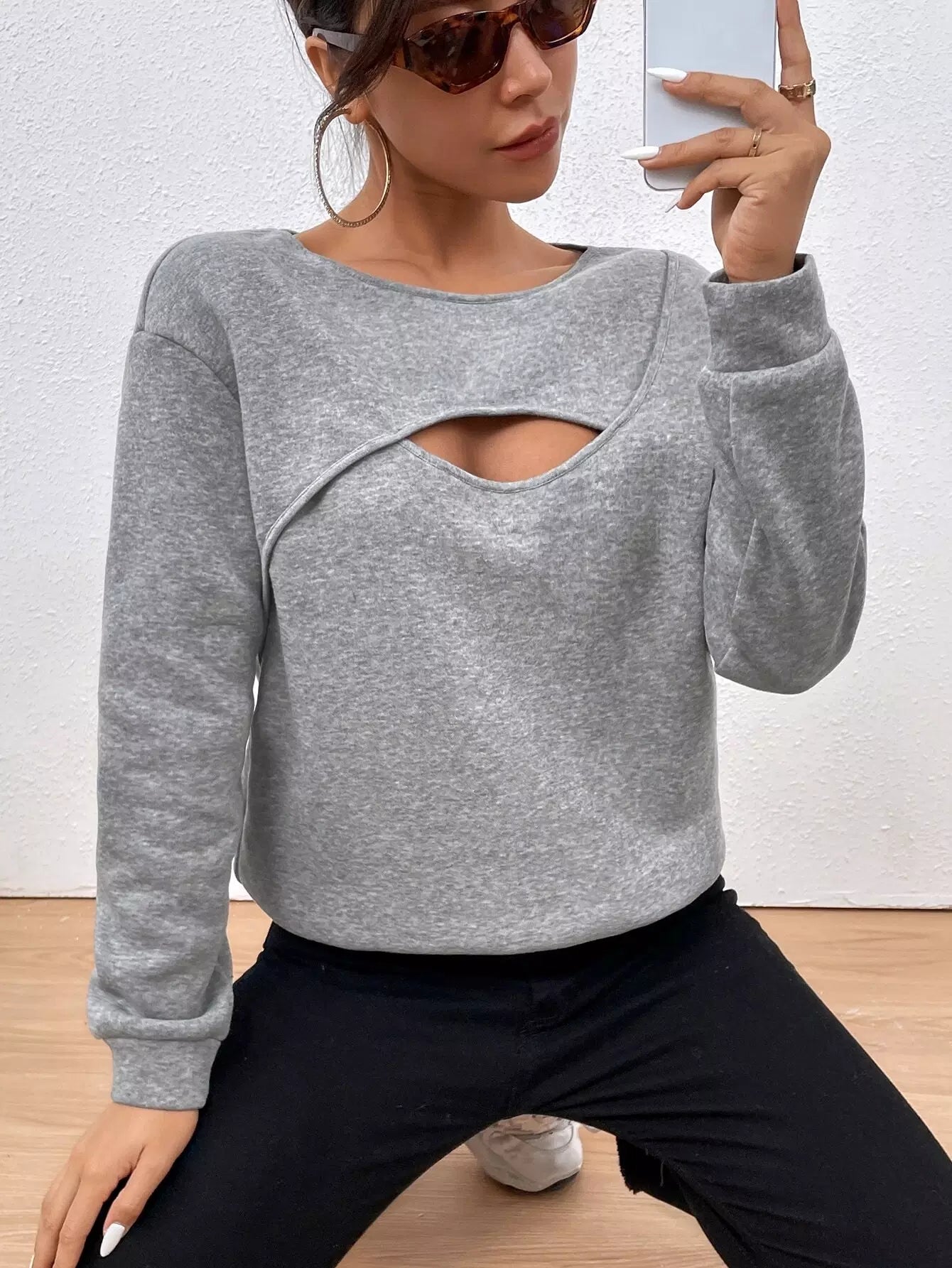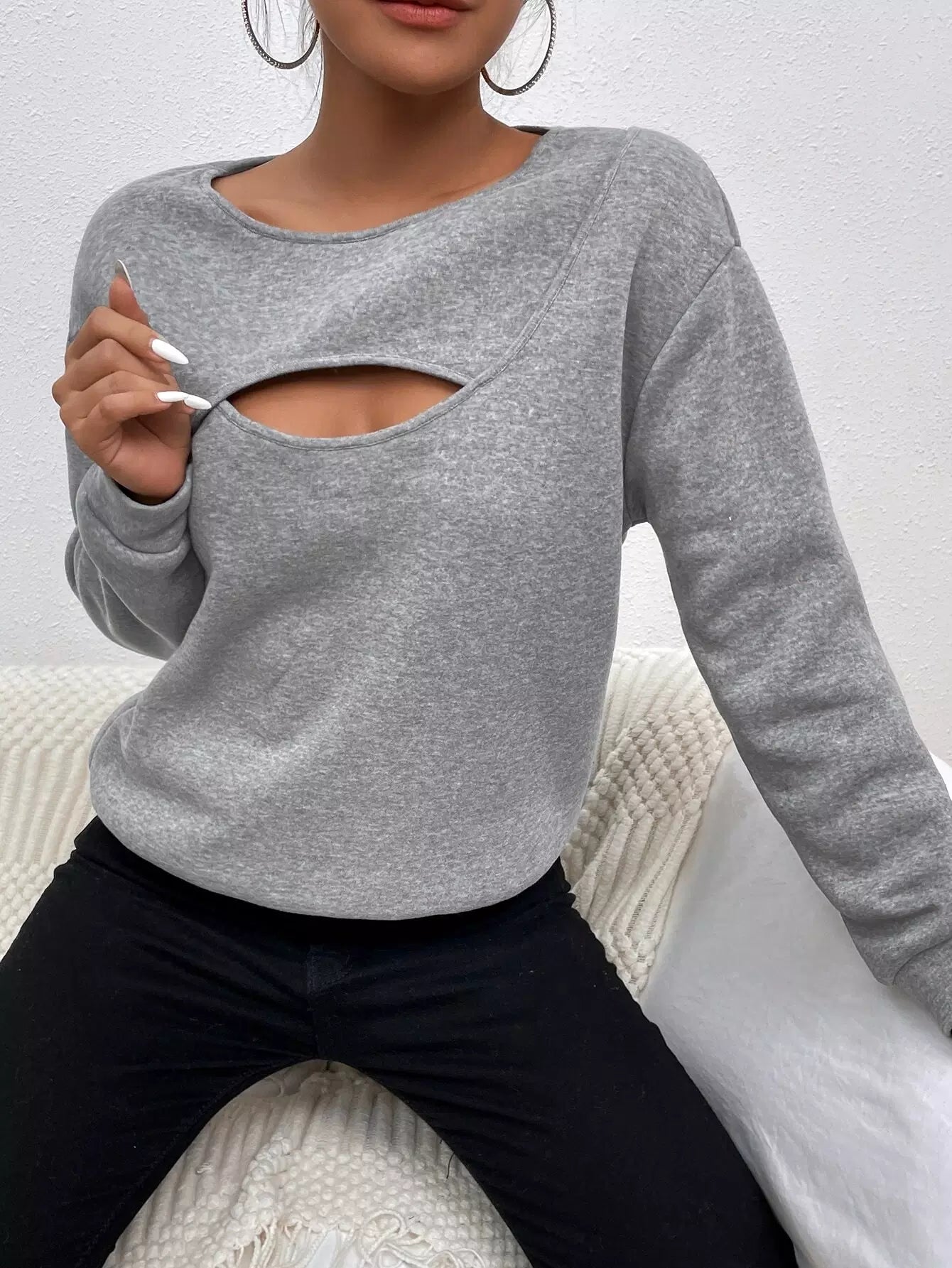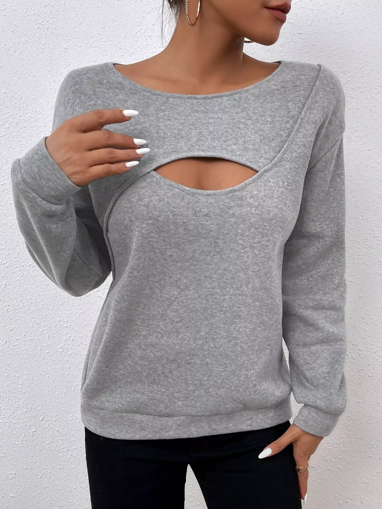 Peekaboo Front Drop Shoulder Pullover