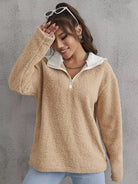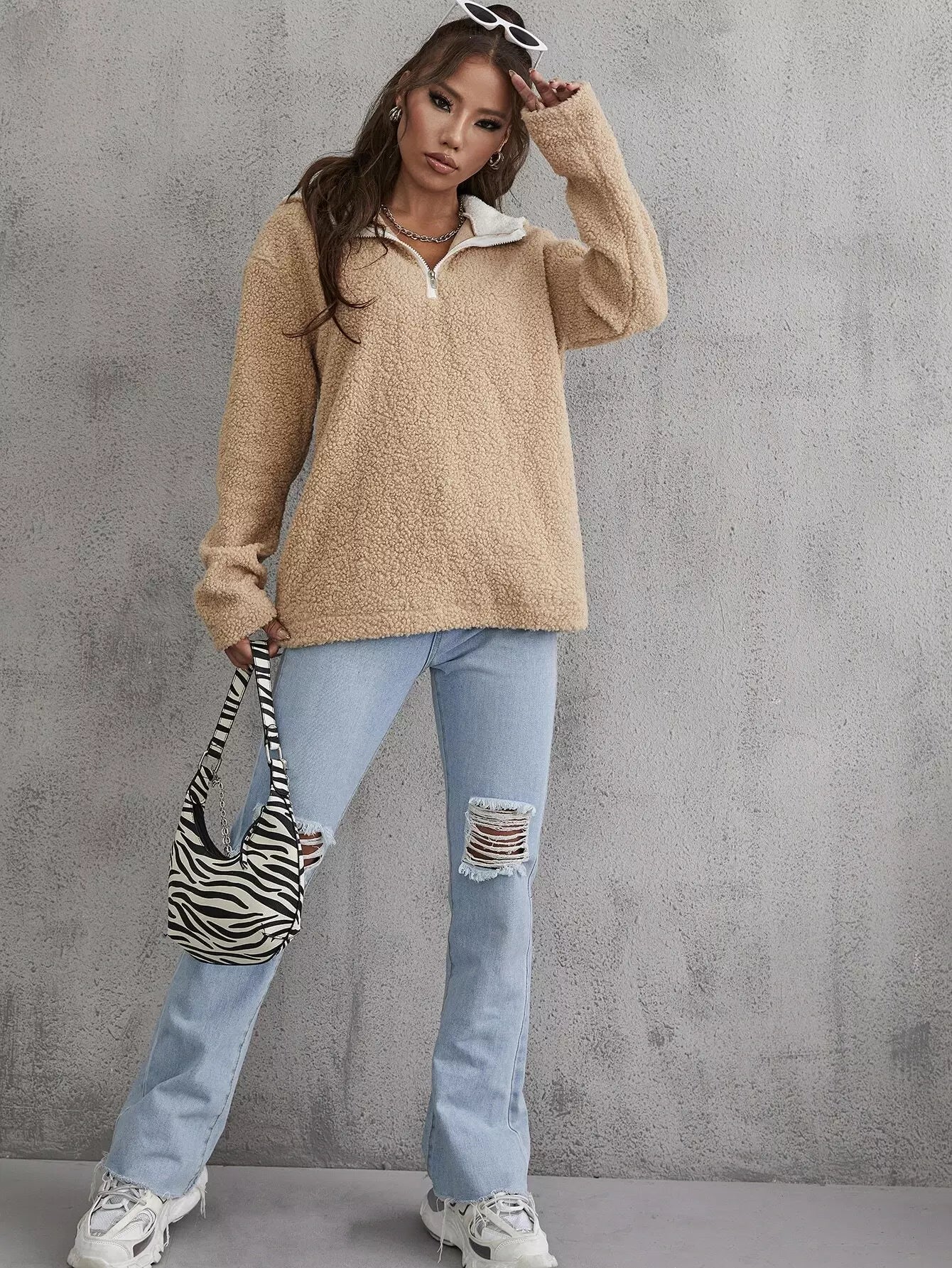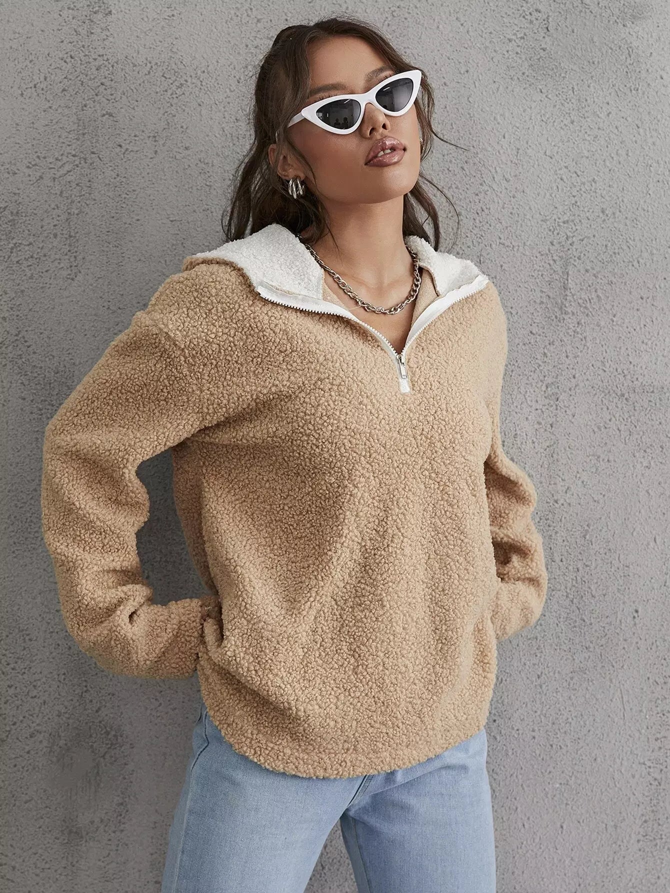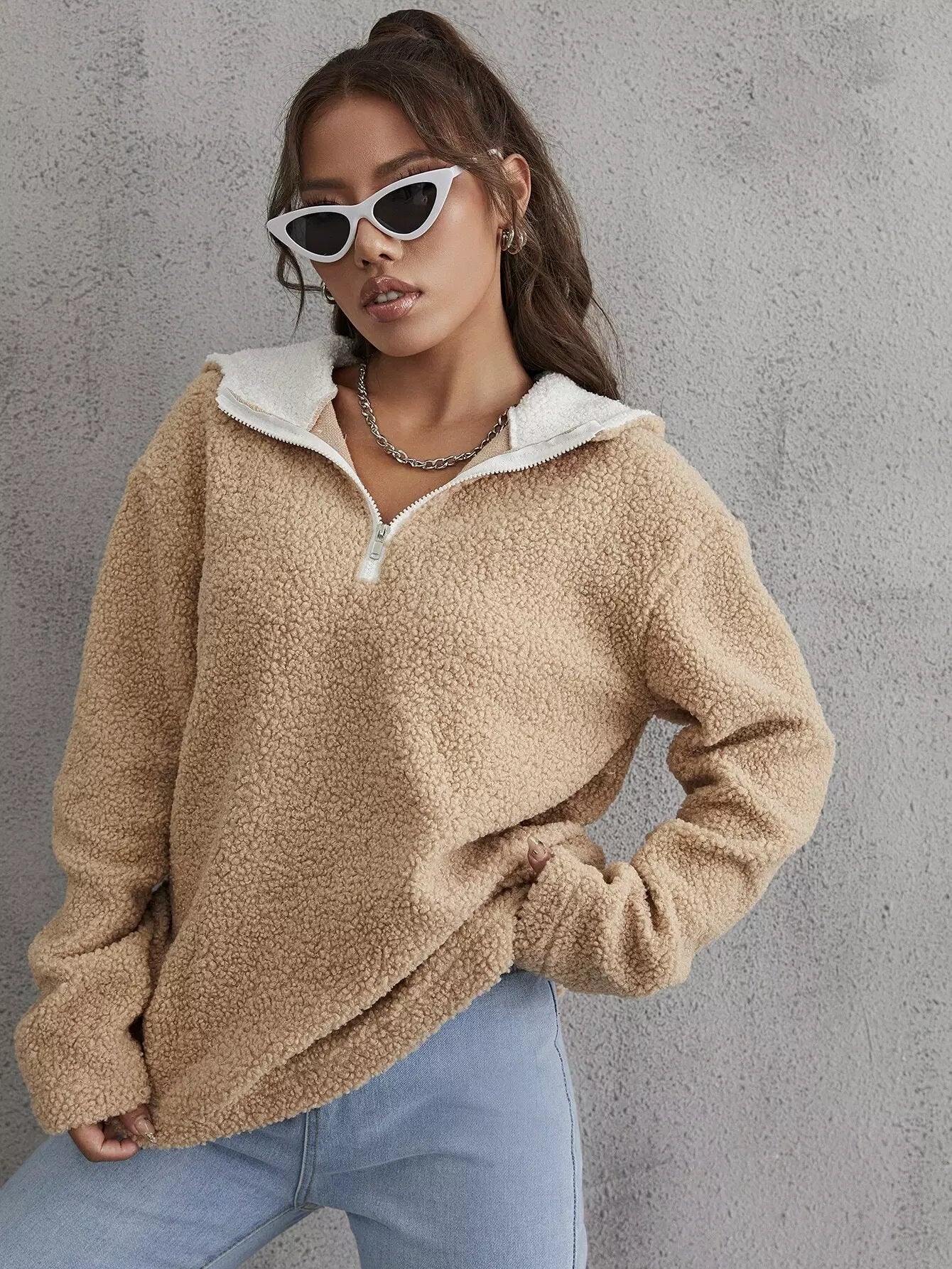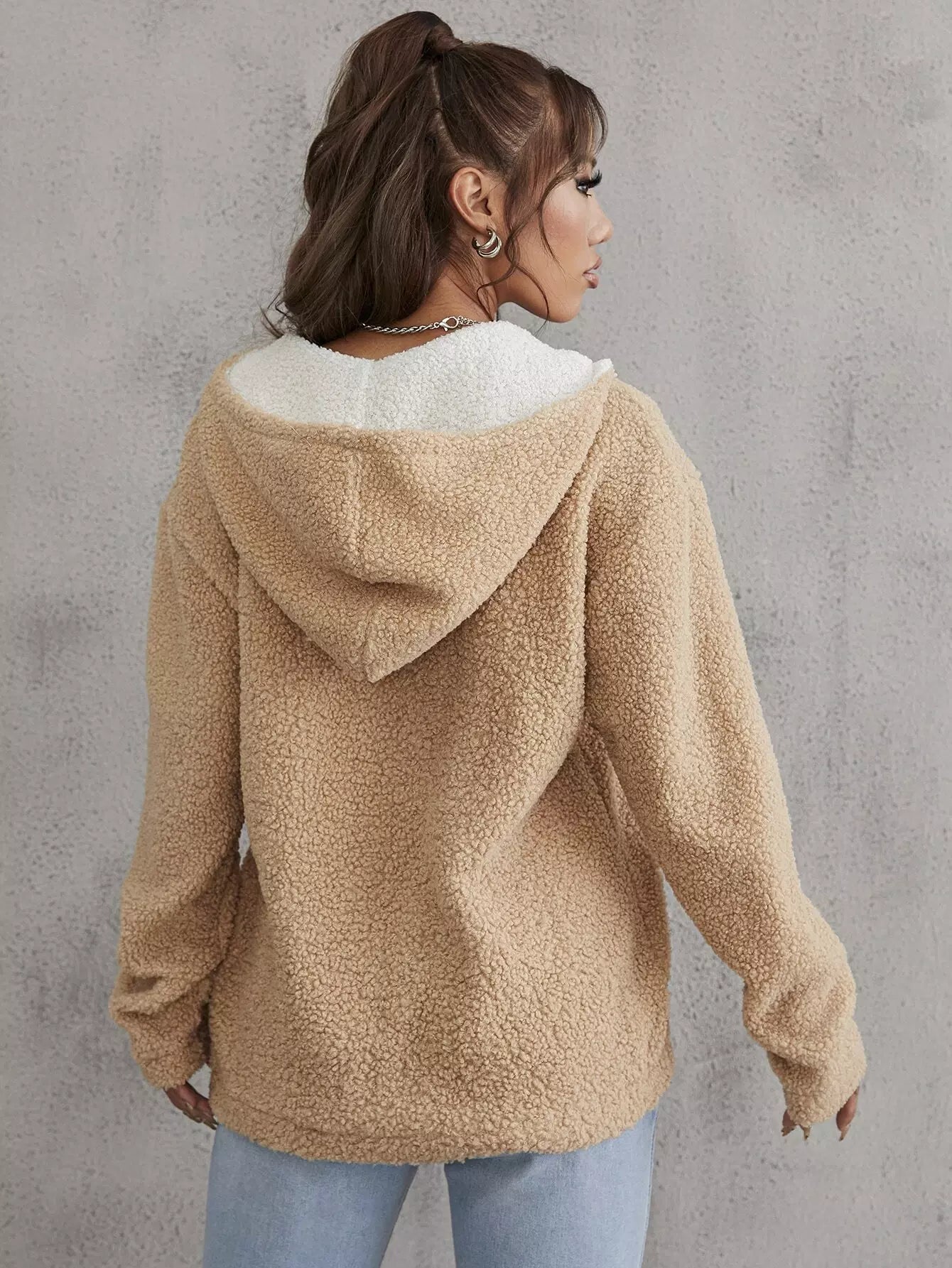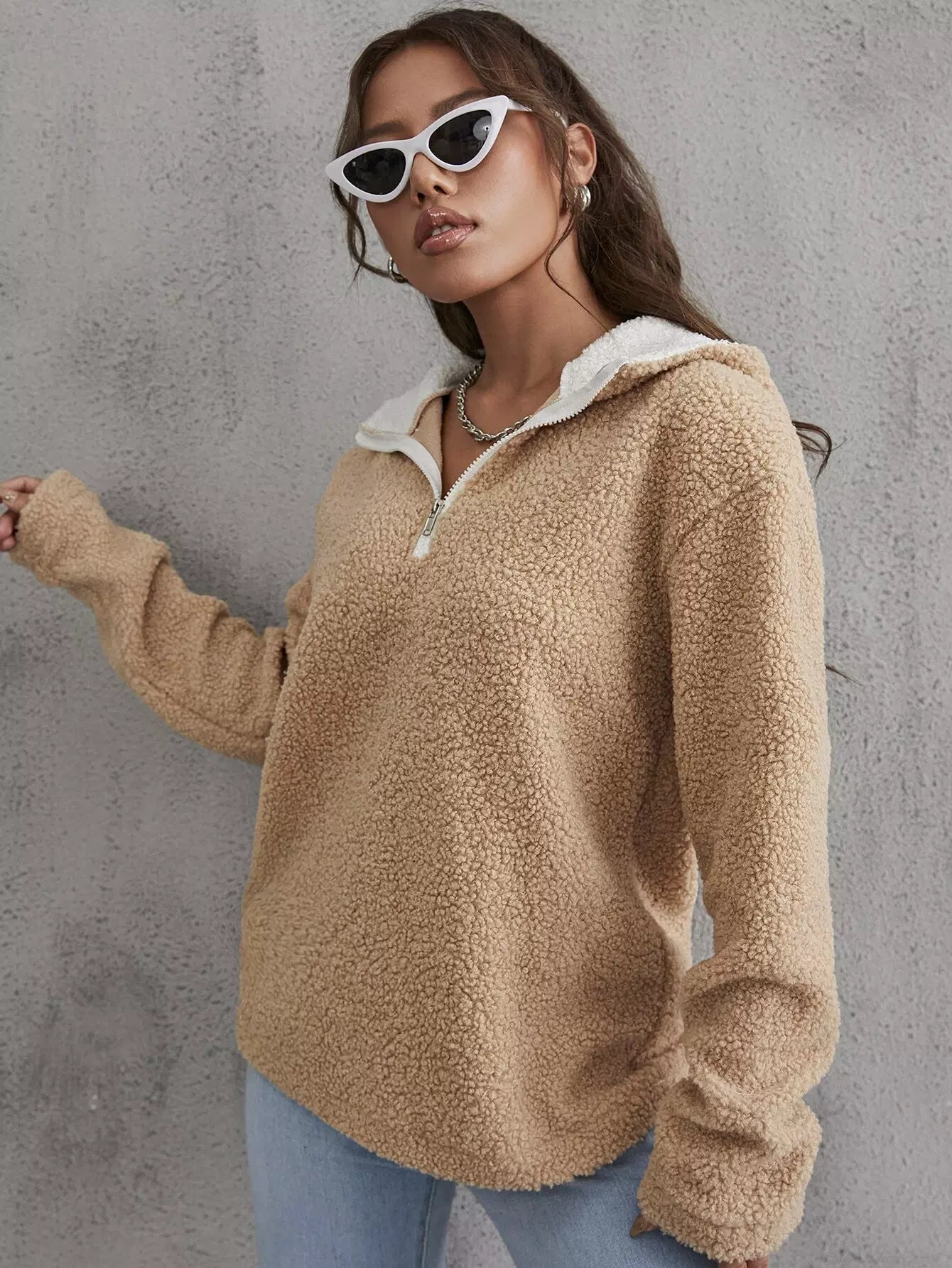 Quarter Zip Drop Shoulder Teddy Hoodie