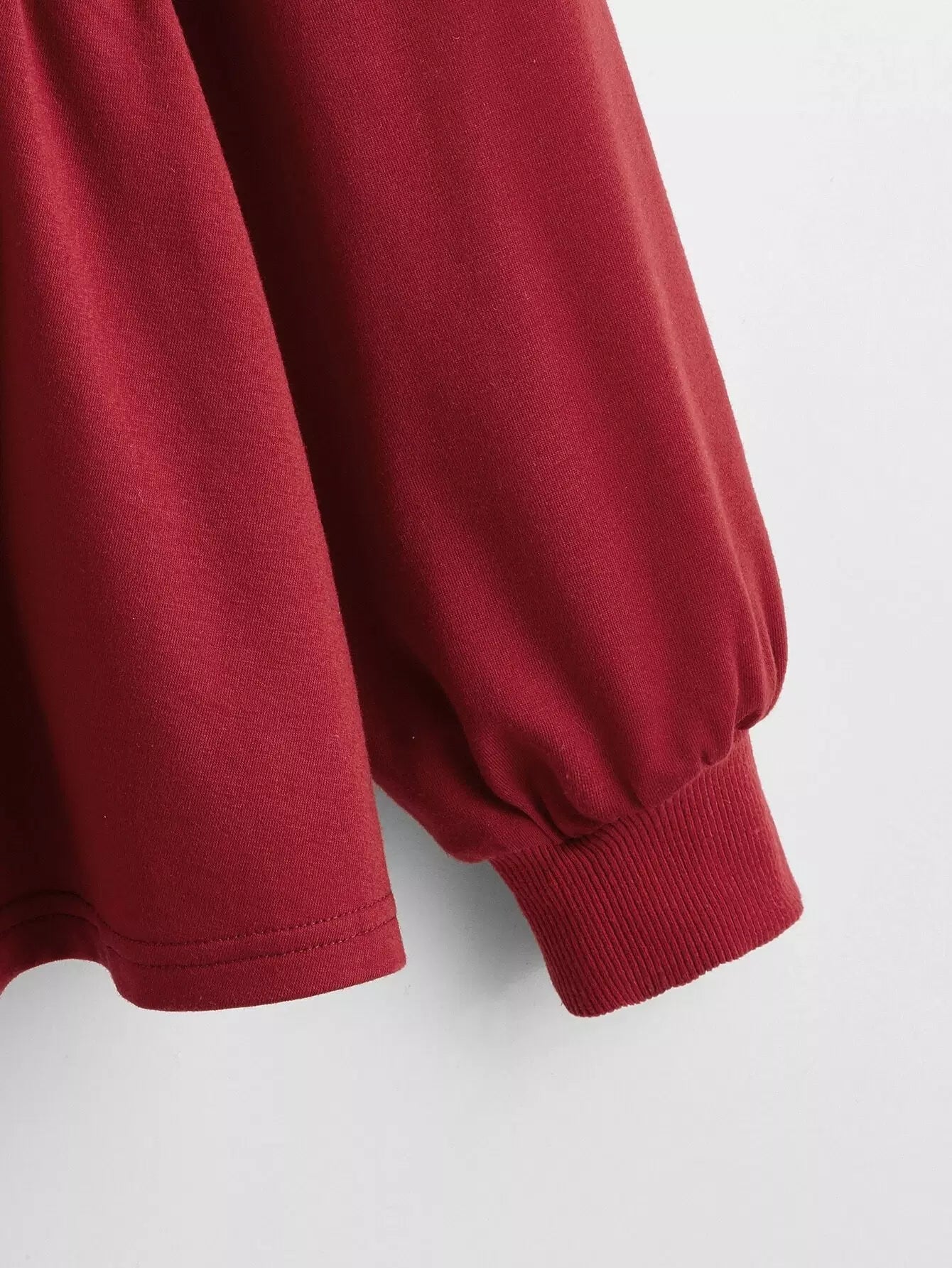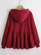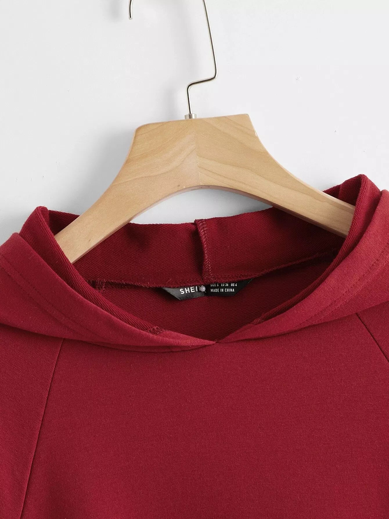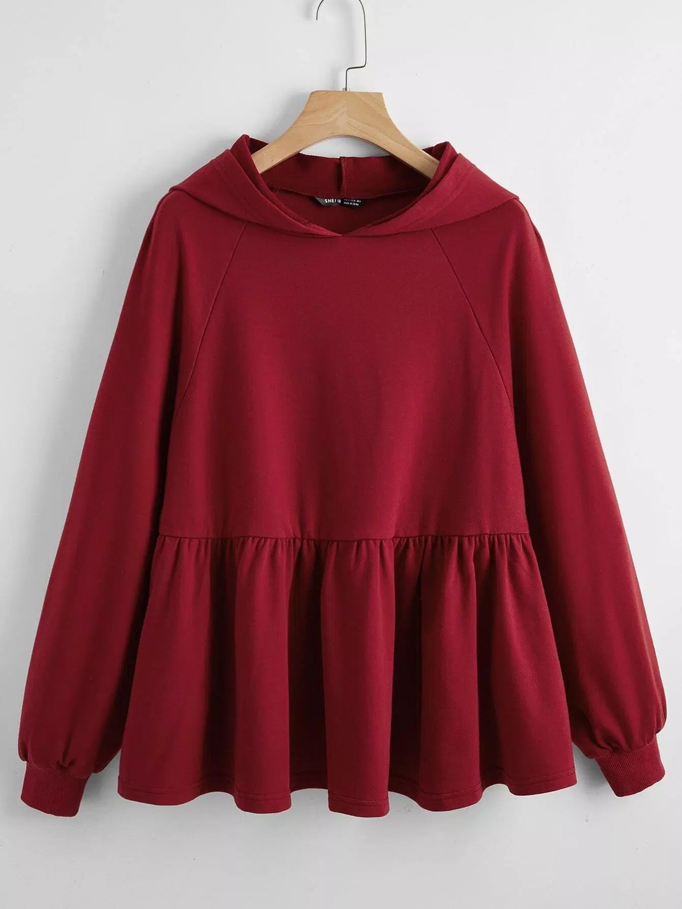 Raglan Sleeve Ruffle Hem Solid Hoodie