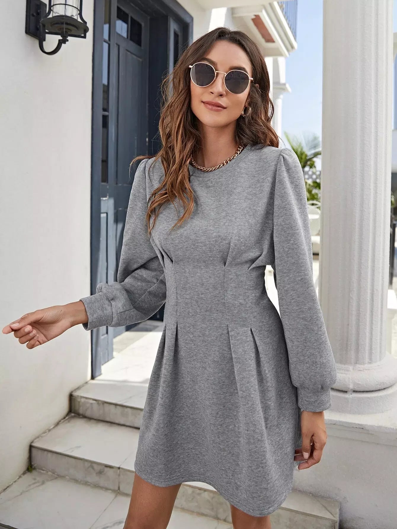 Ruched Waist Sweatshirt Dress