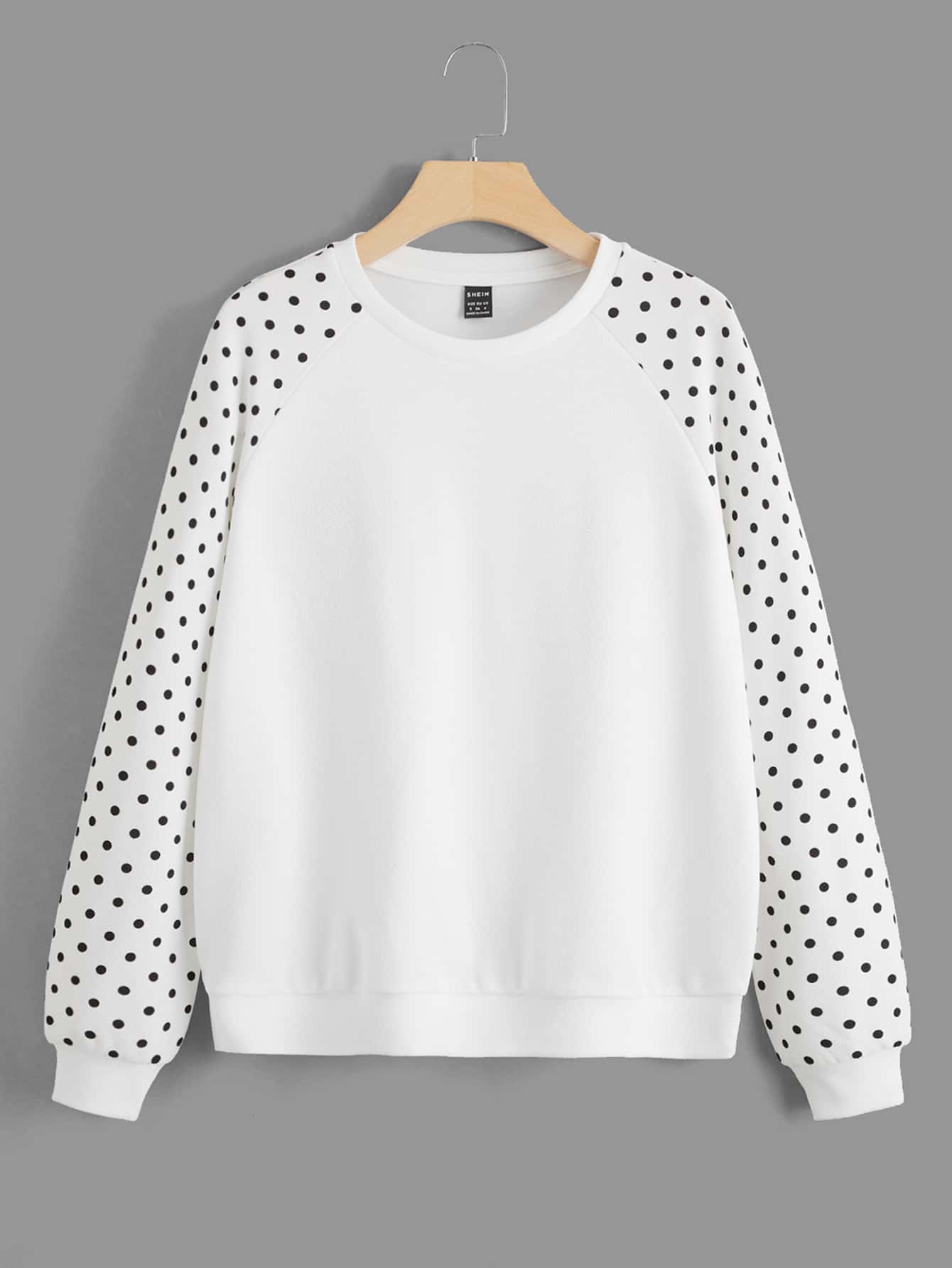 SHEIN LUNE Polka Dot Raglan Sleeve Sweatshirt