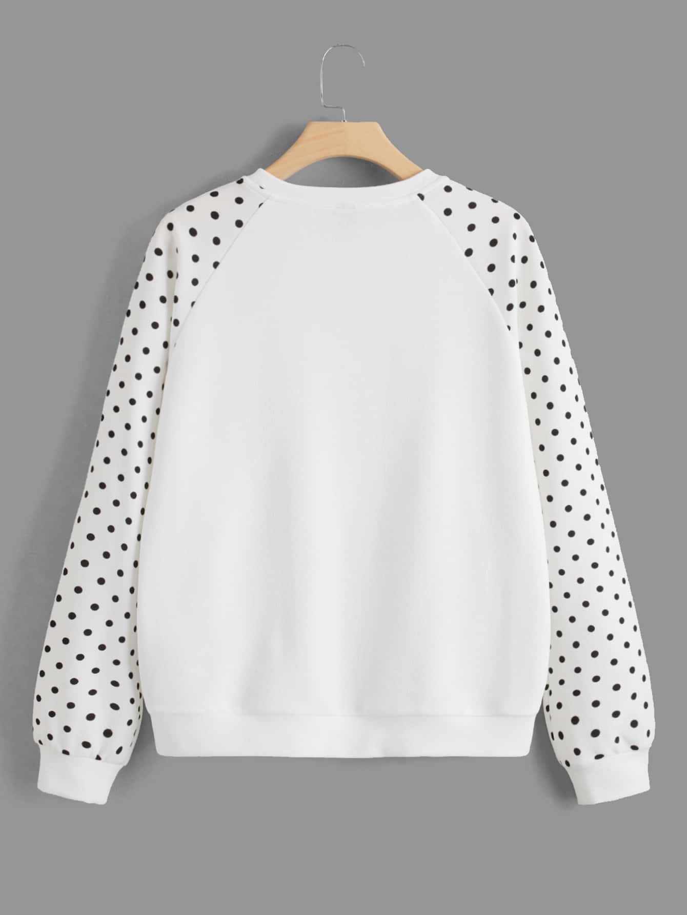 women SHEIN LUNE Polka Dot Raglan Sleeve Sweatshirt
