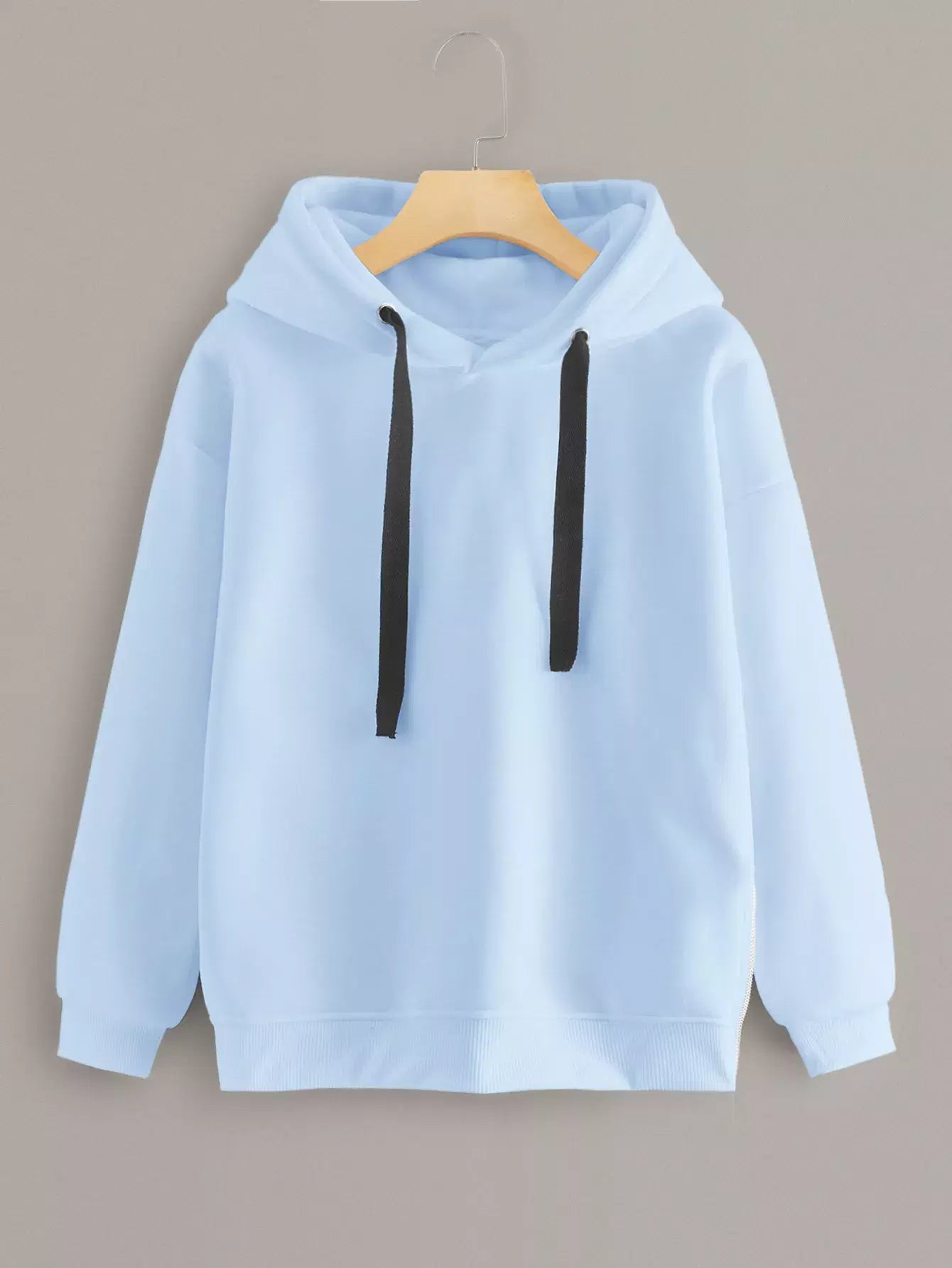 Side Zipper Solid Hoodie