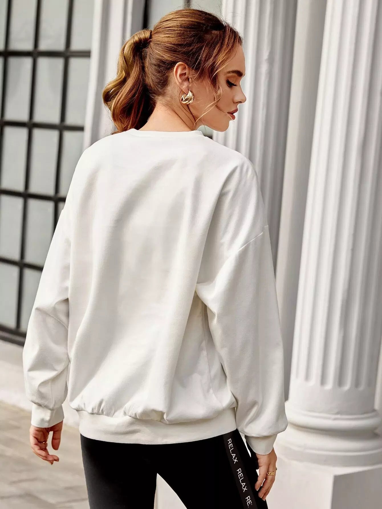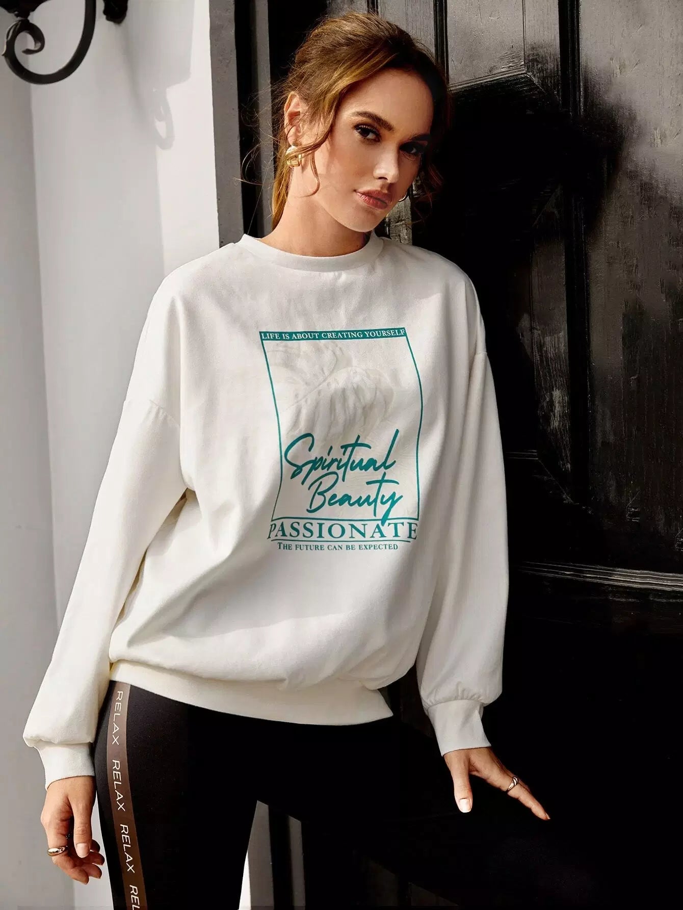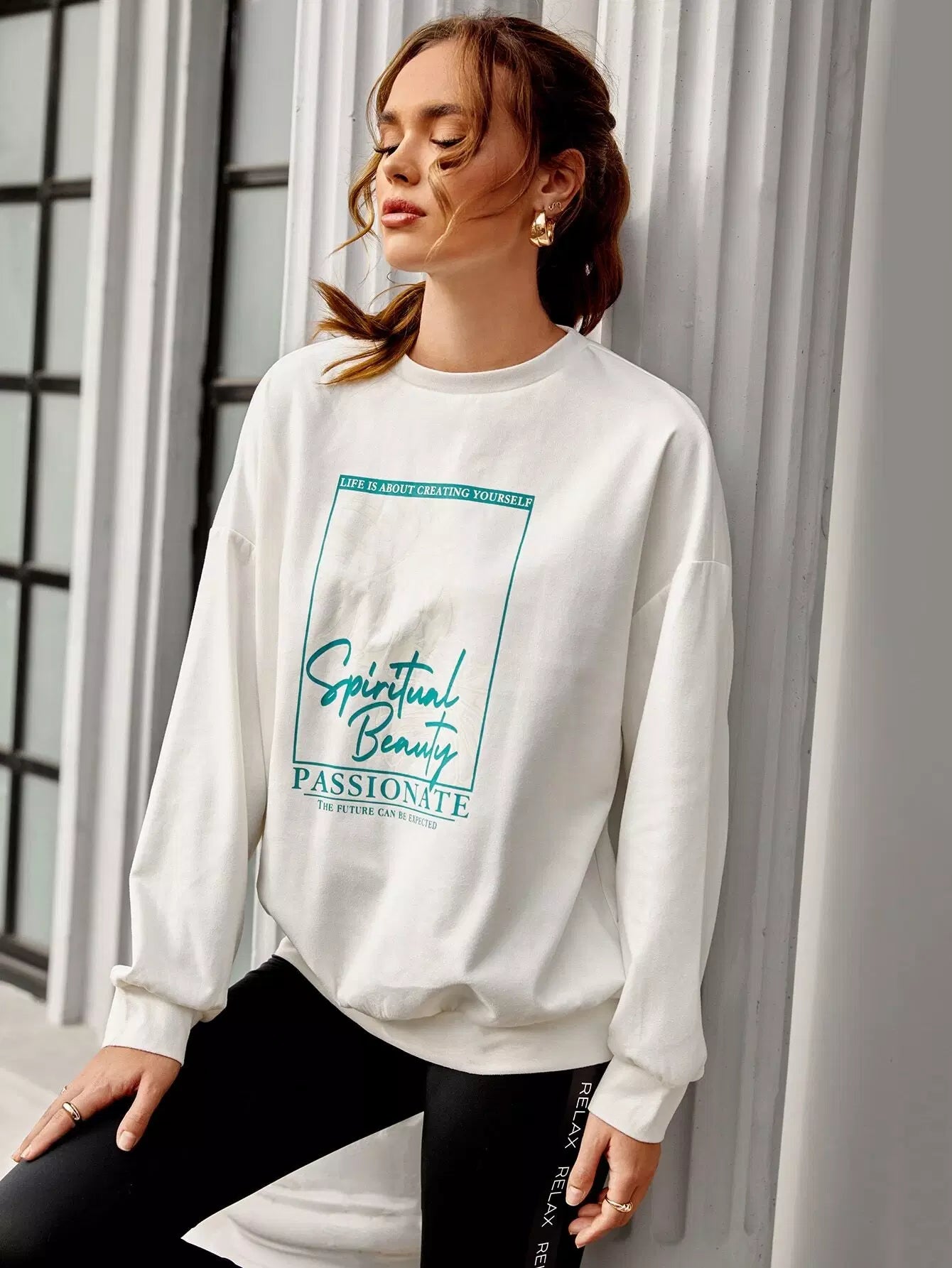 Slogan & Geo Graphic Drop Shoulder Pullover