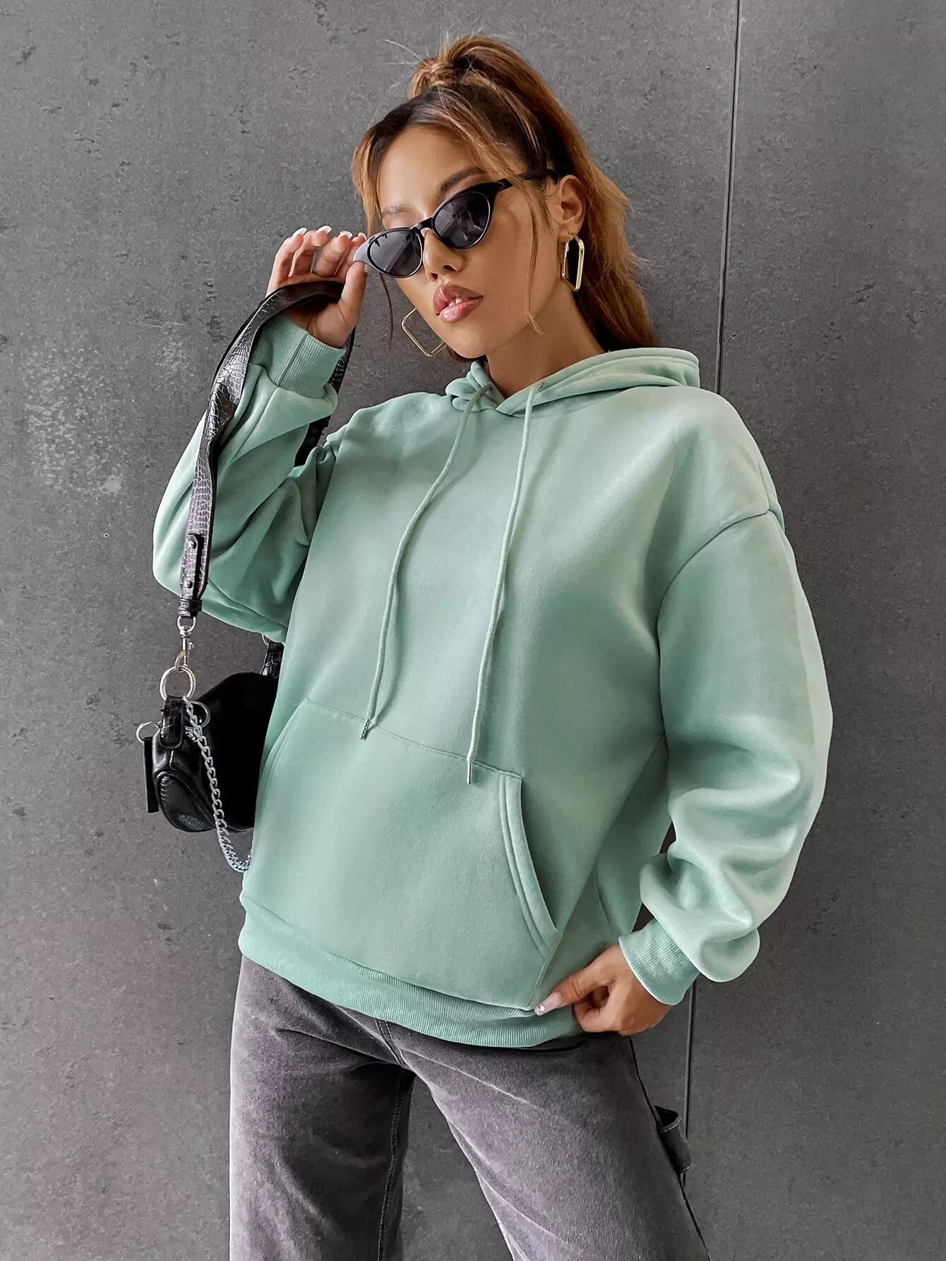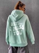 Slogan Graphic Drop Shoulder Drawstring Thermal Lined Hoodie