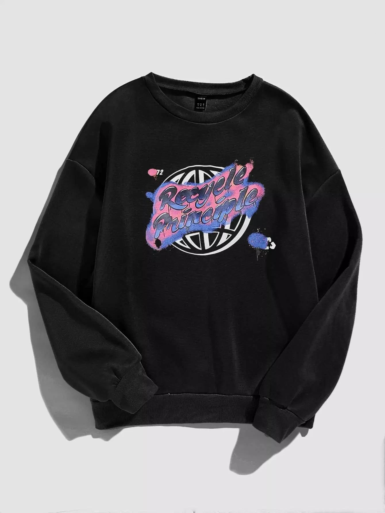 Slogan Graphic Drop Shoulder Thermal Sweatshirt