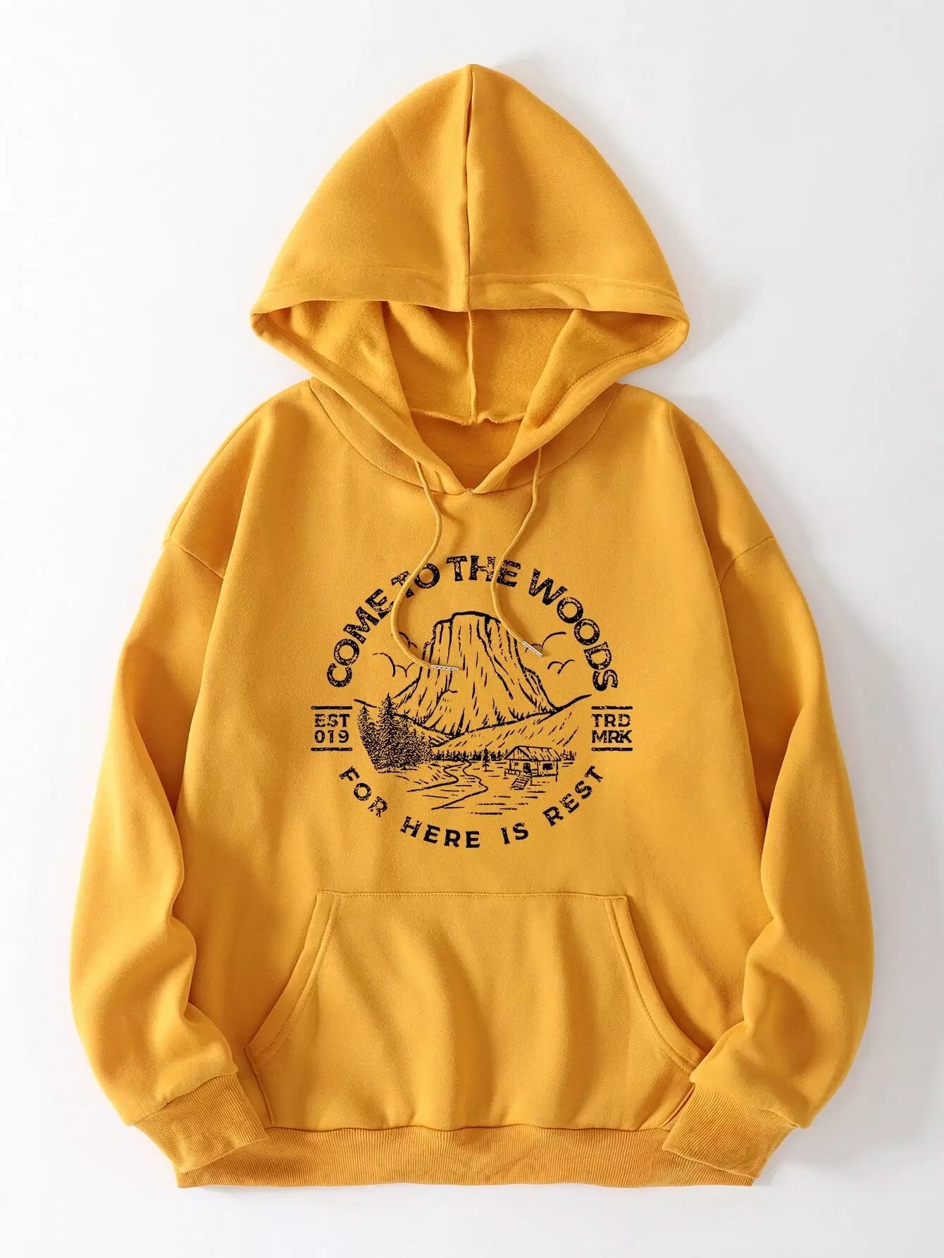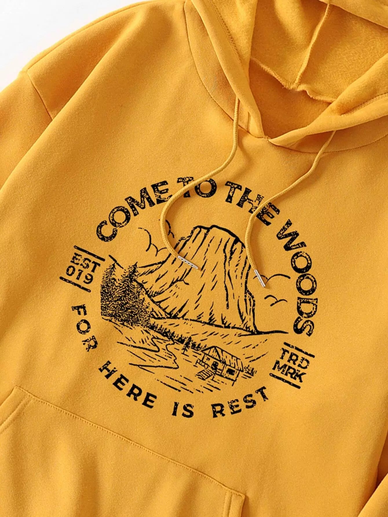 Slogan Graphic Kangaroo Pocket Thermal Lined Hoodie