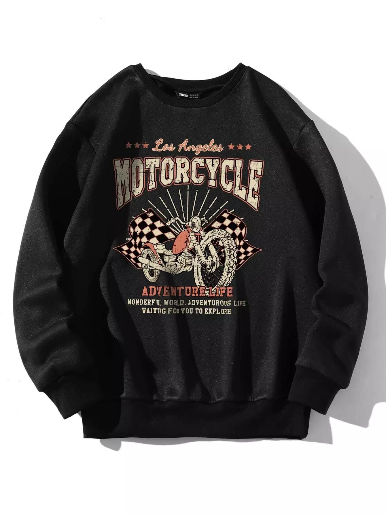 Slogan & Motorcycle Print Thermal Sweatshirt