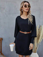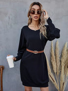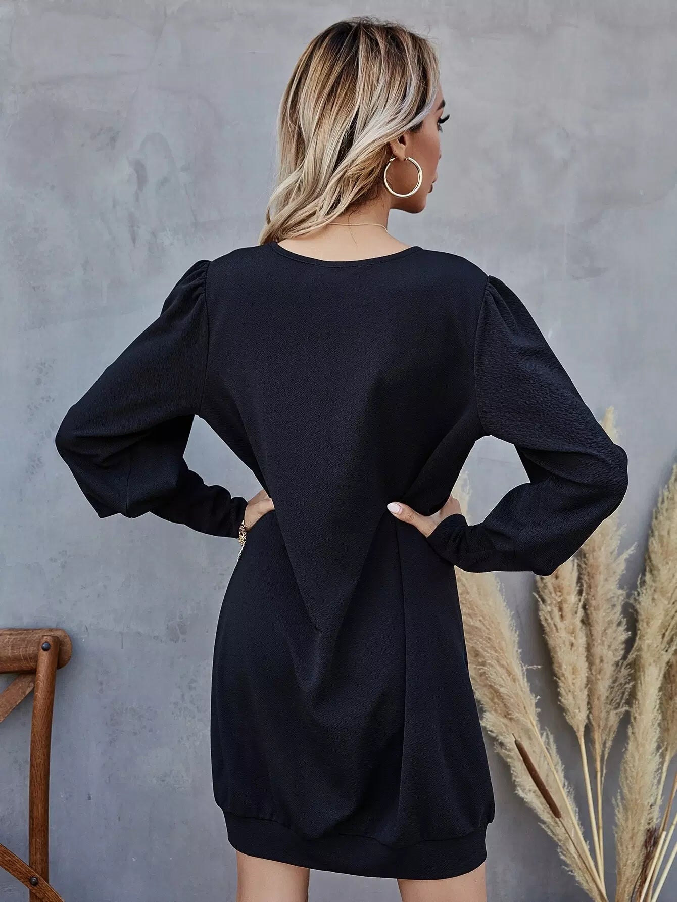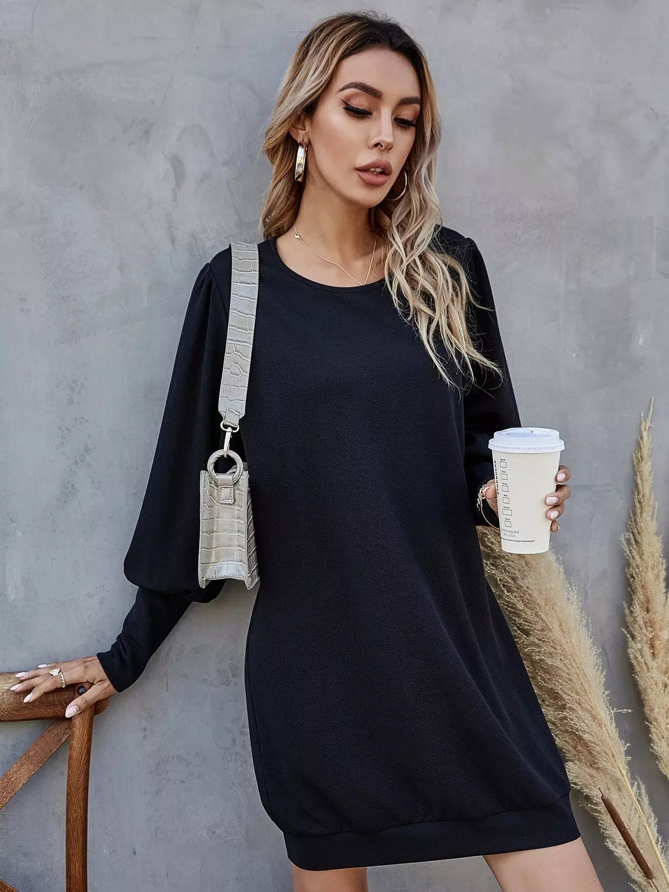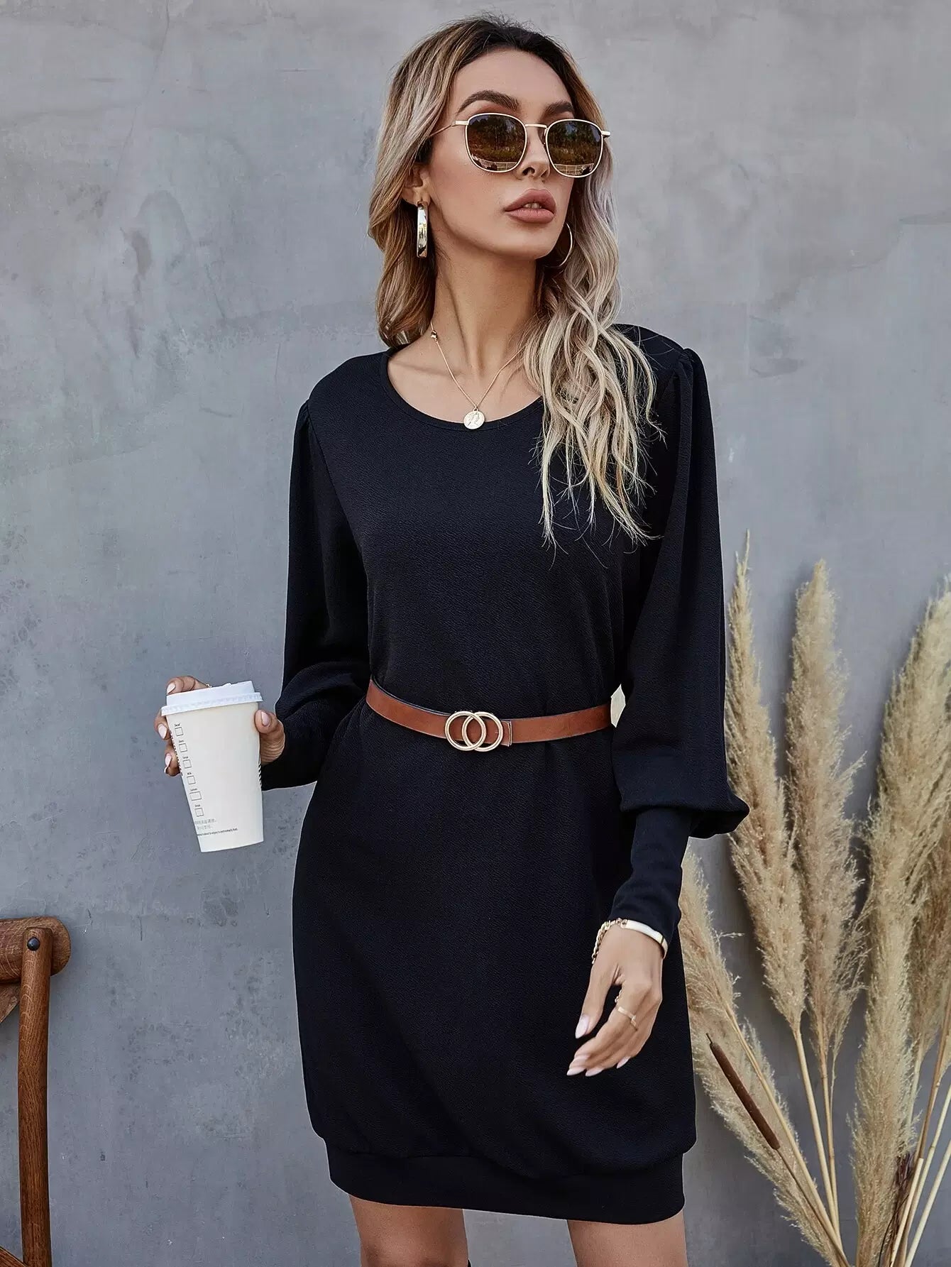 Solid Bishop Sleeve Sweatshirt Dress Without Belt