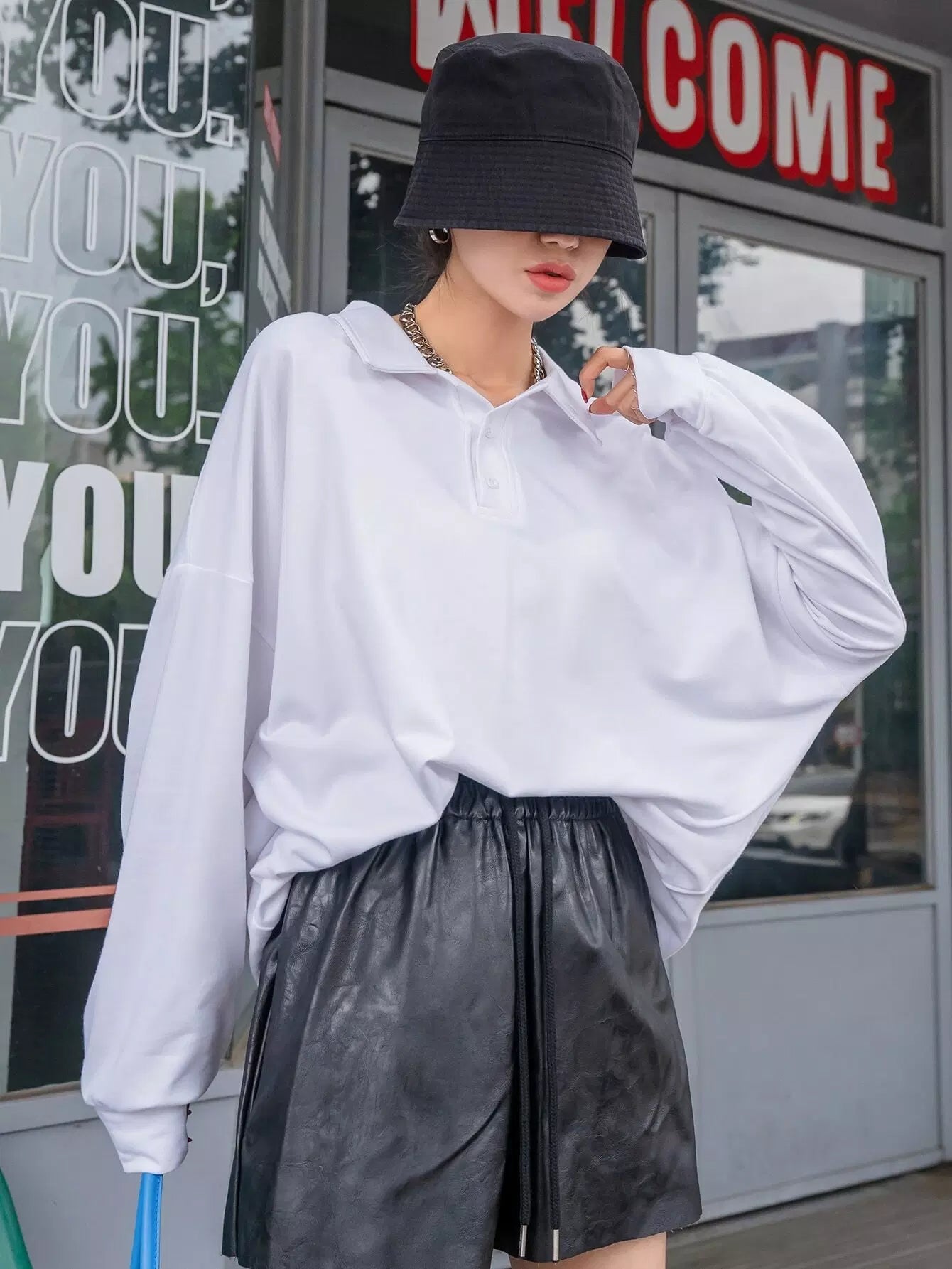 Solid Half Button Sweatshirt