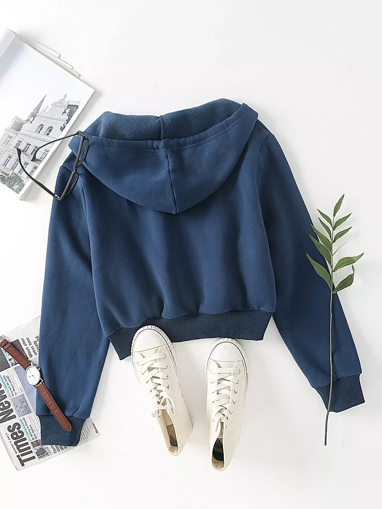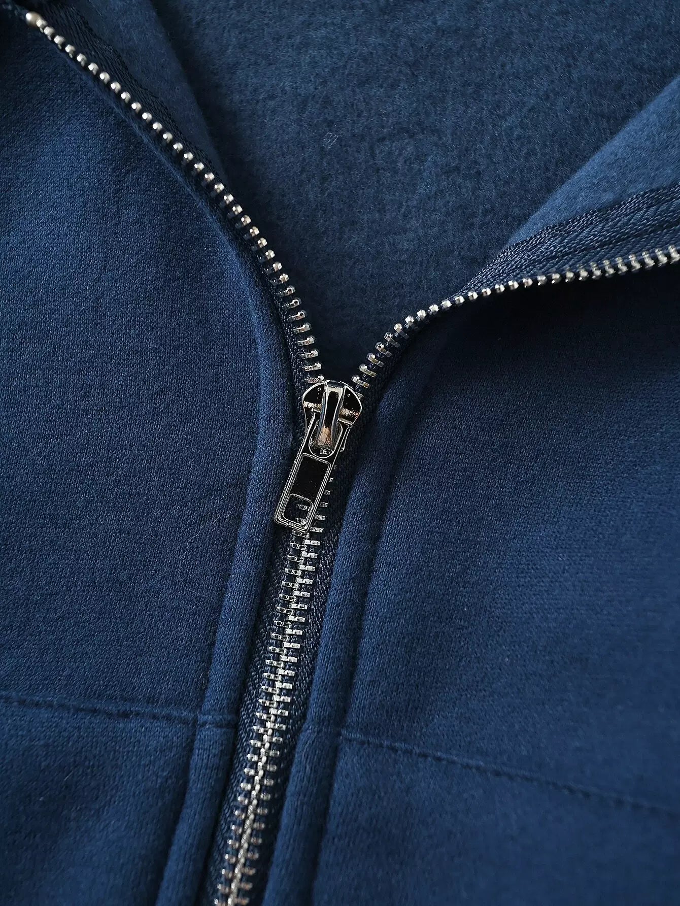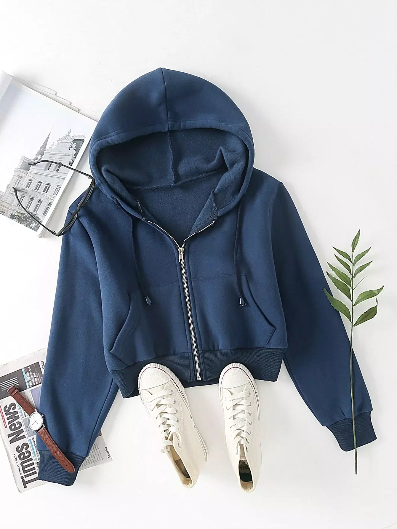 Solid Kangaroo Pocket Drawstring Zip-up Hoodie