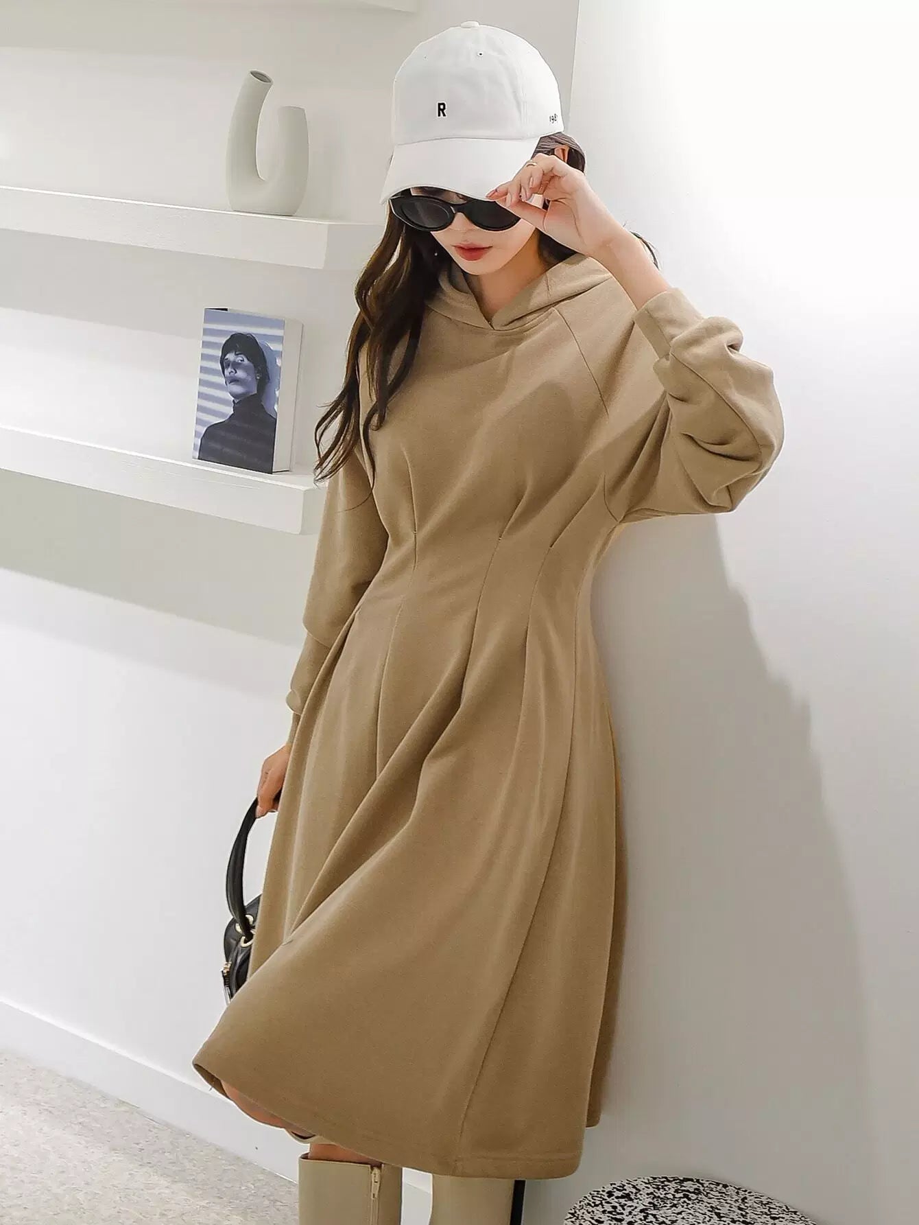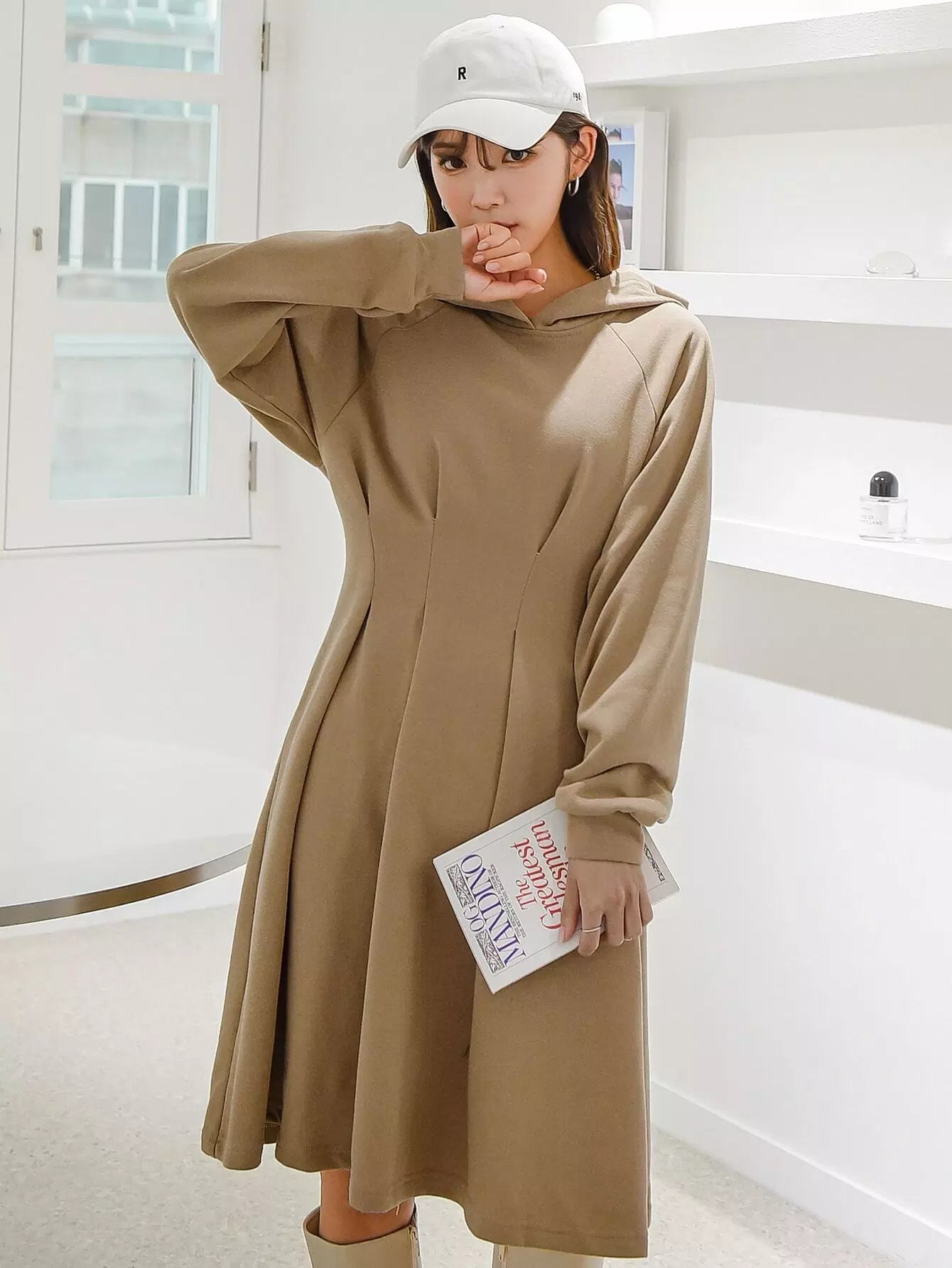Solid Raglan Sleeve Hooded Sweatshirt Dress