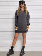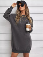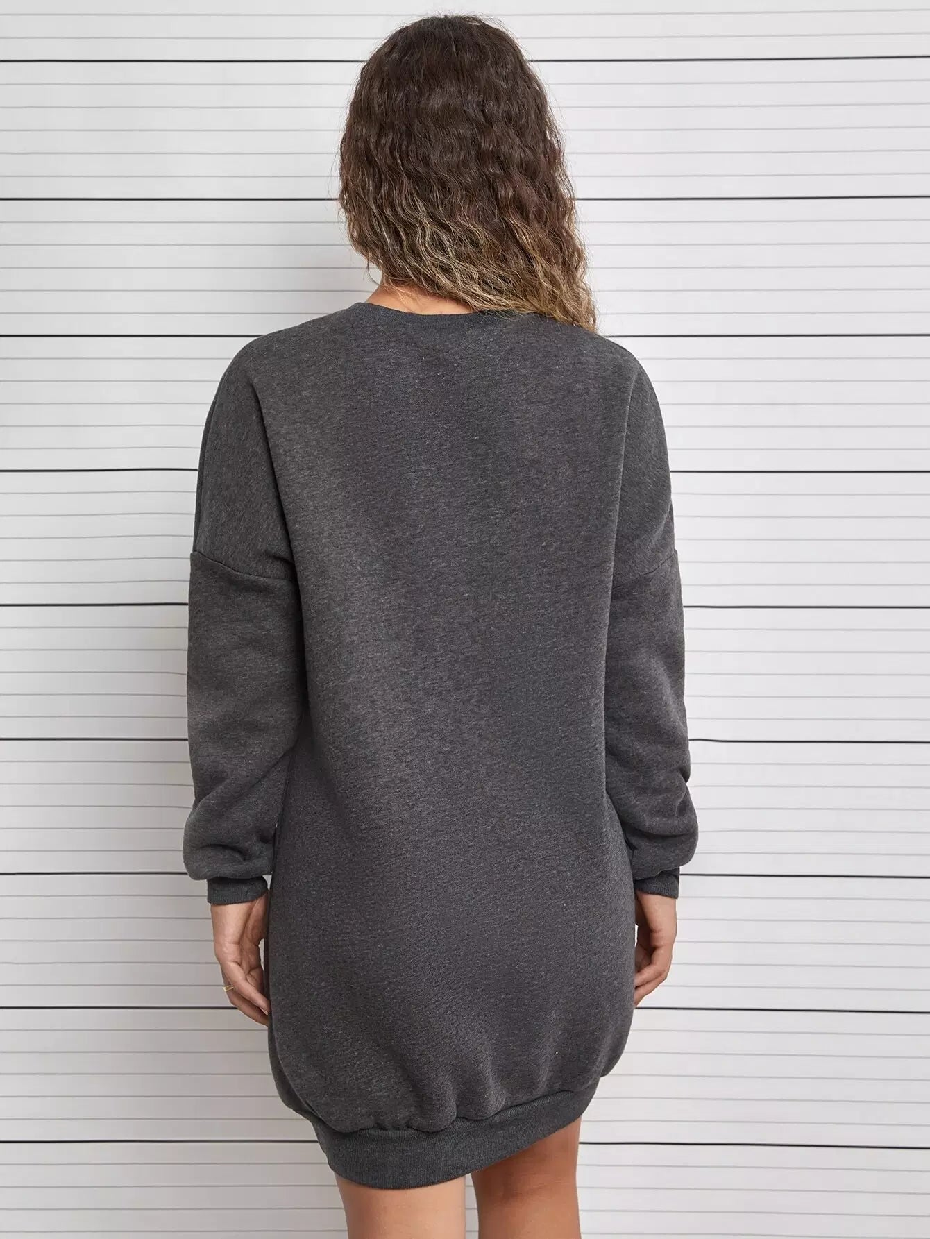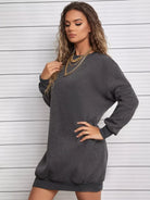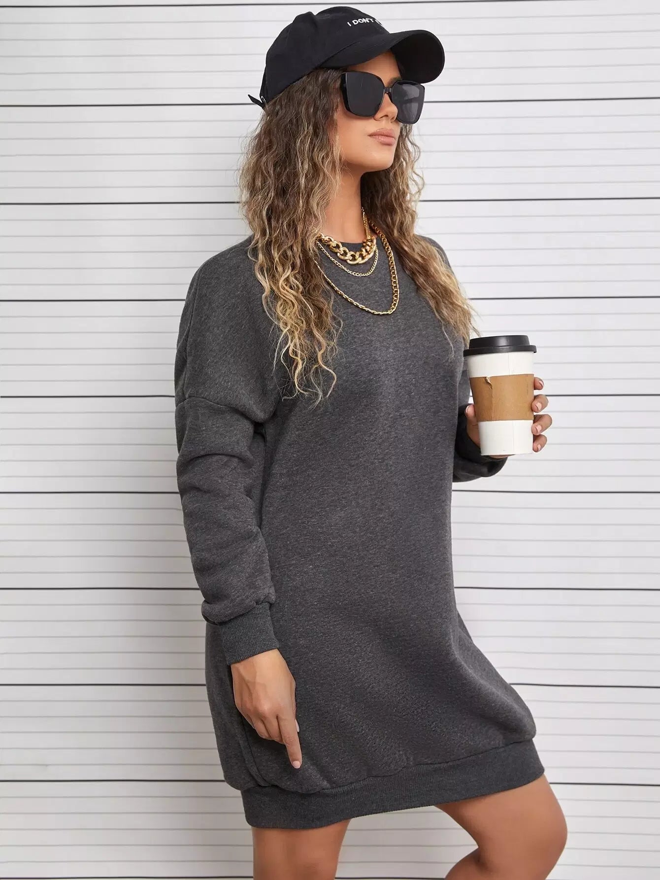 Solid Round Neck Drop Shoulder Sweatshirt Dress
