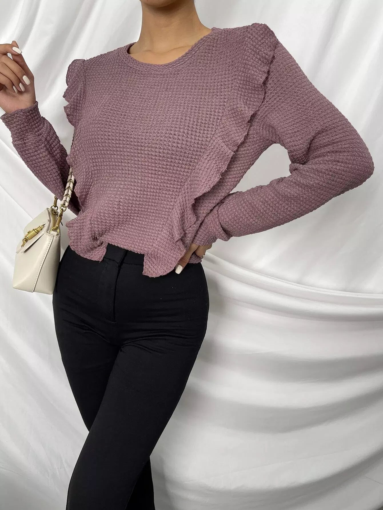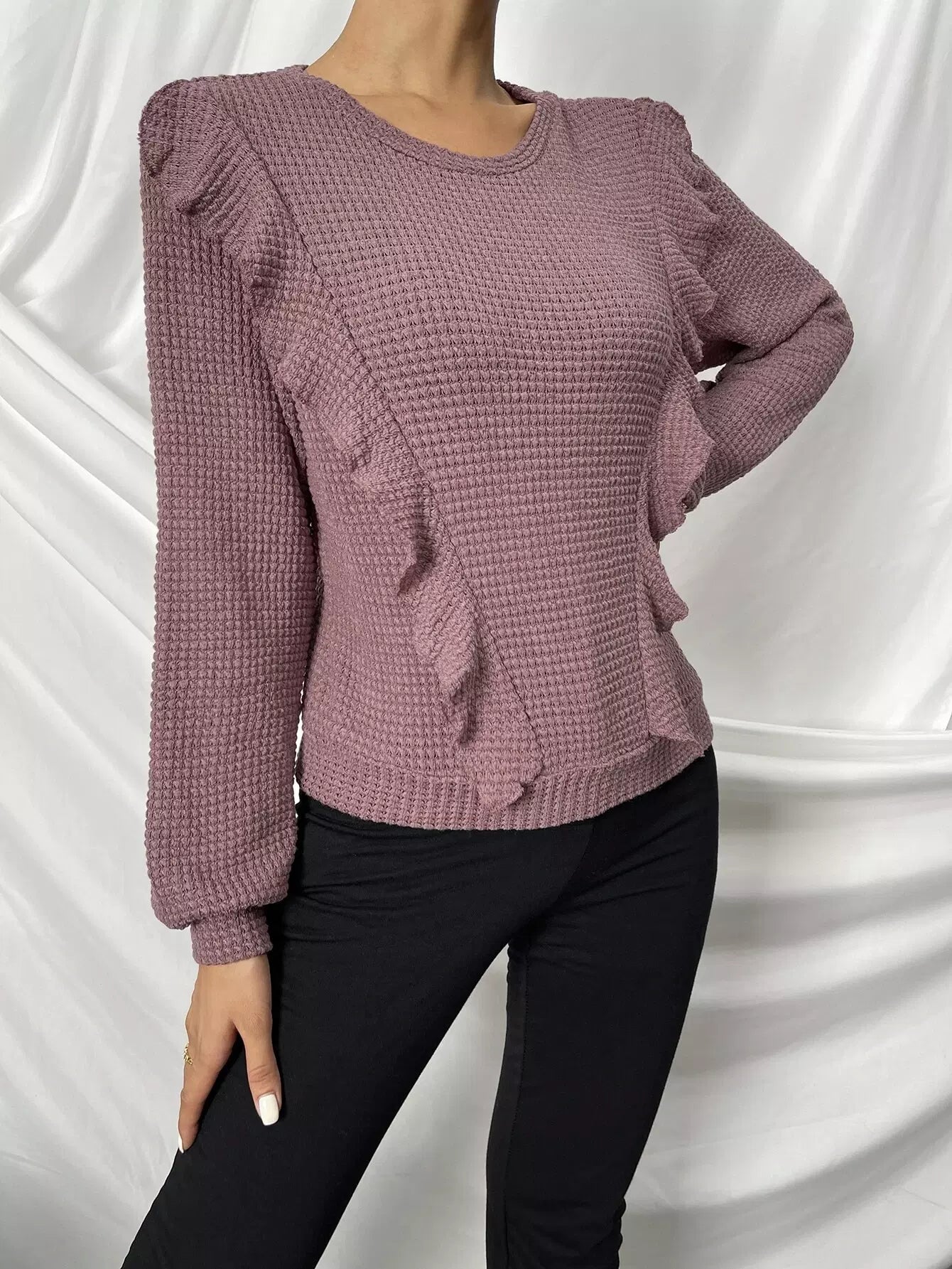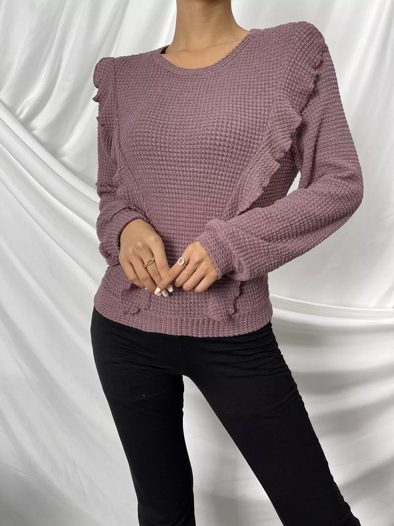 Solid Ruffle Detail Pullover