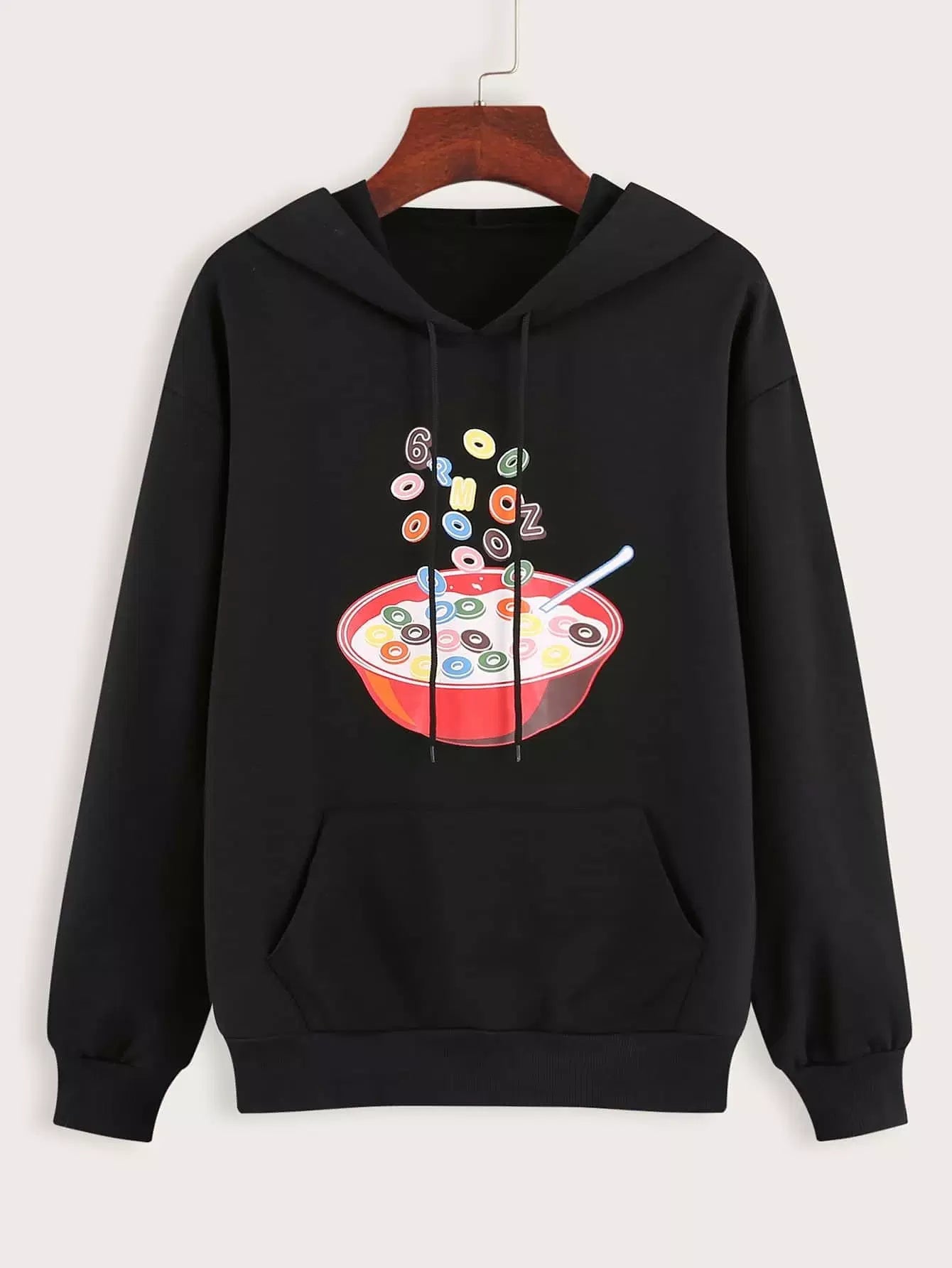 Women - Soup & Letter Graphic Drawstring Hoodie