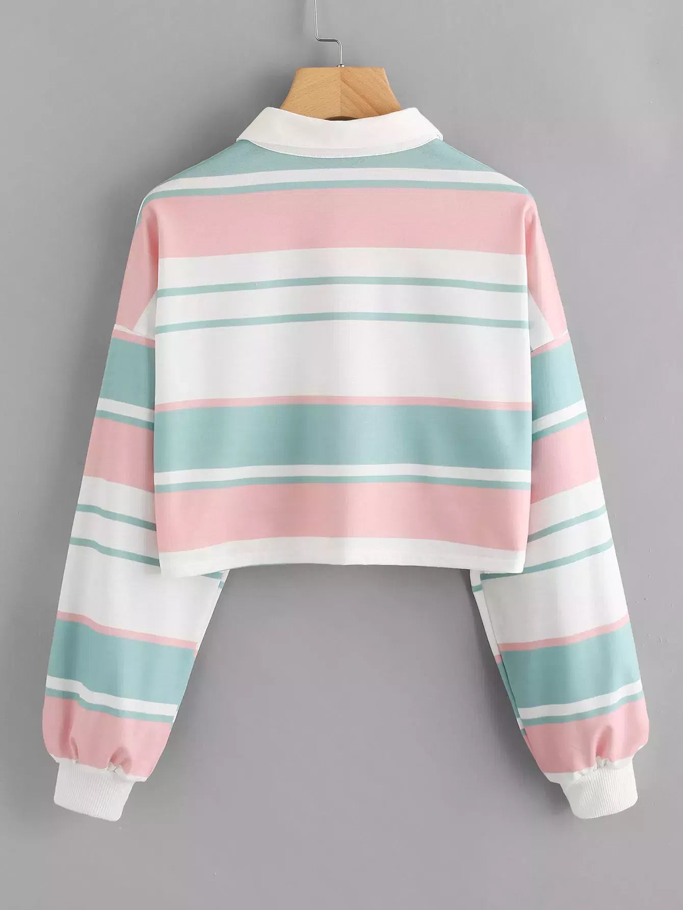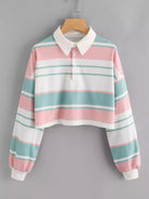 Striped Drop Shoulder Crop Polo Shirt