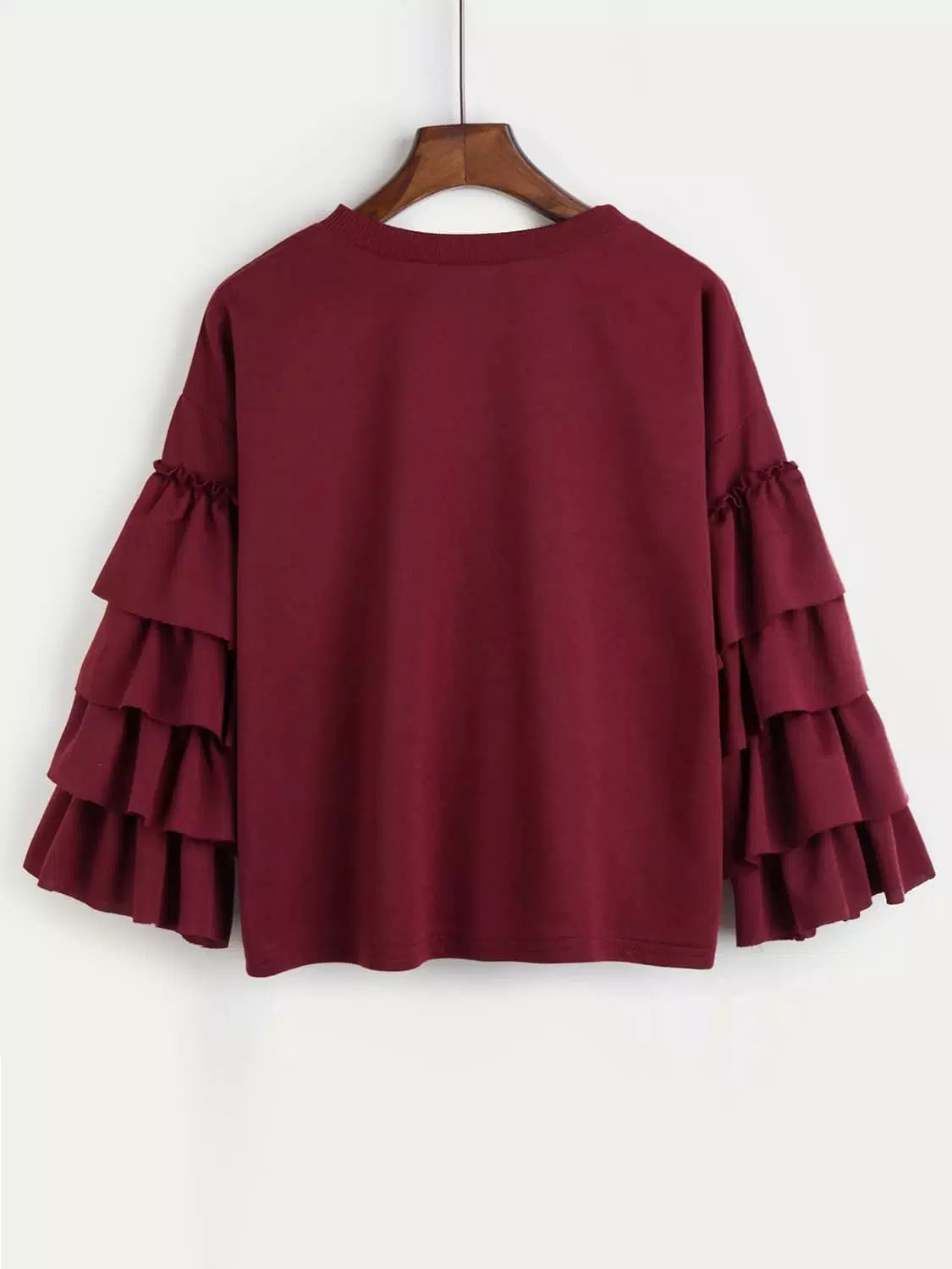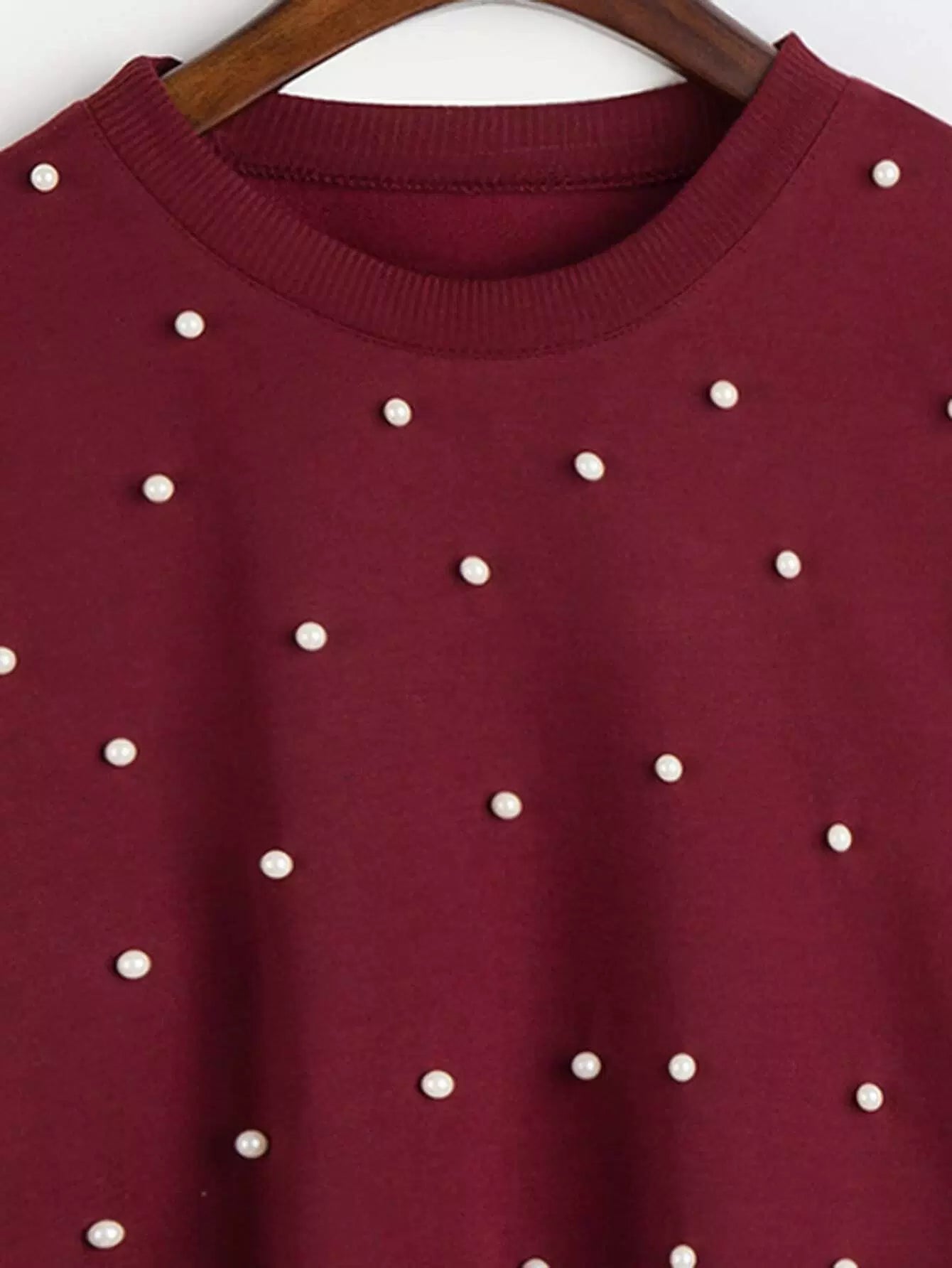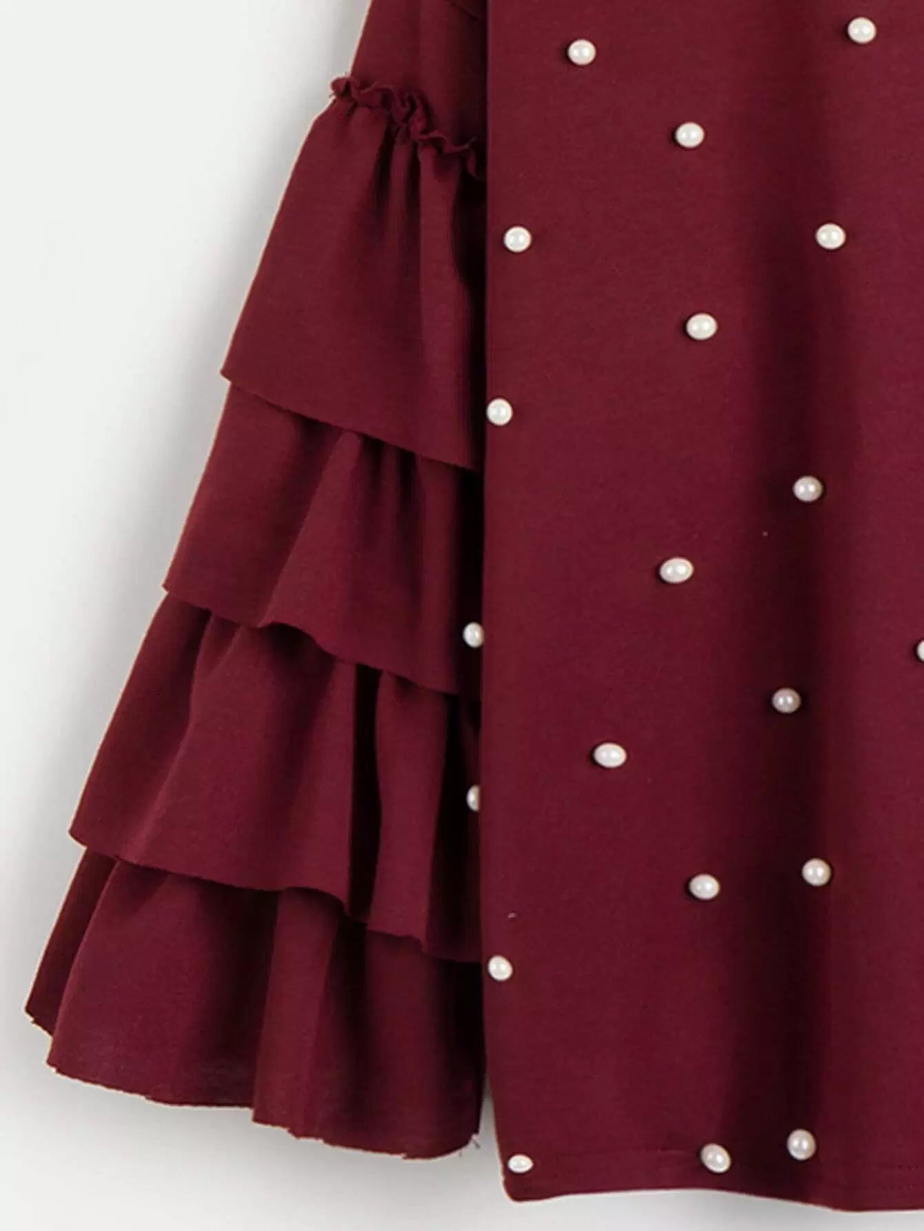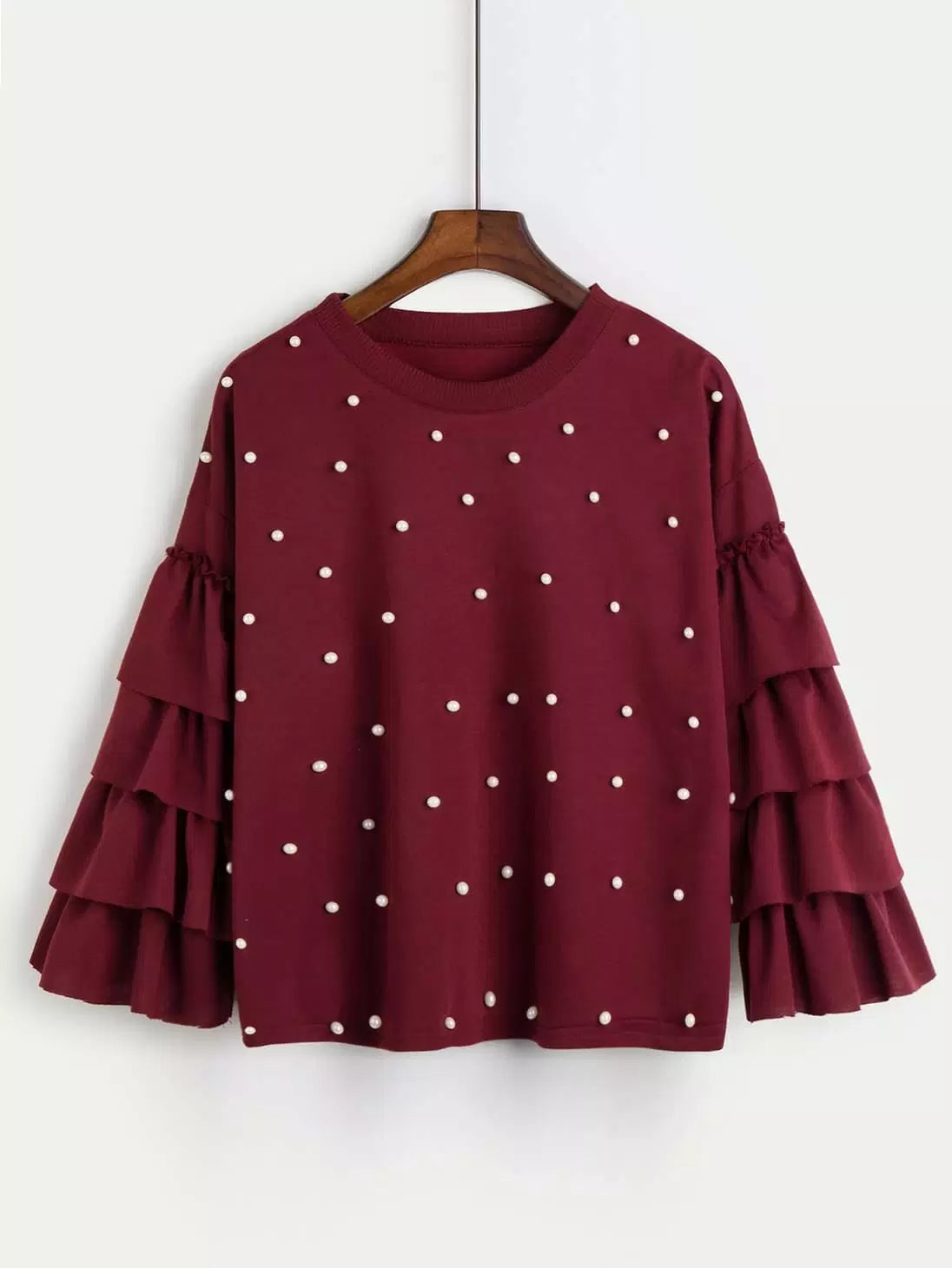 Tiered Fluted Sleeve Pearl Beaded Sweatshirt