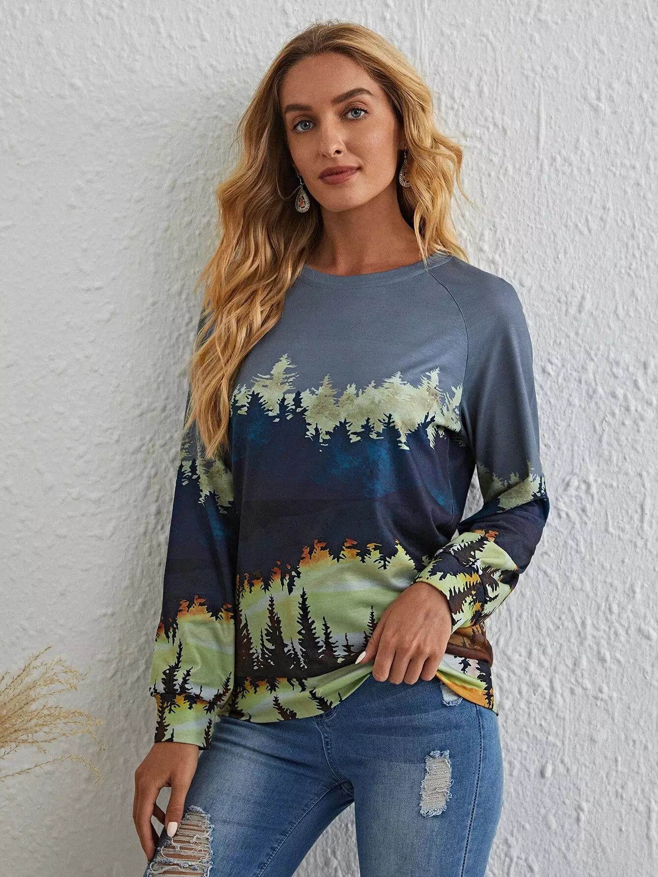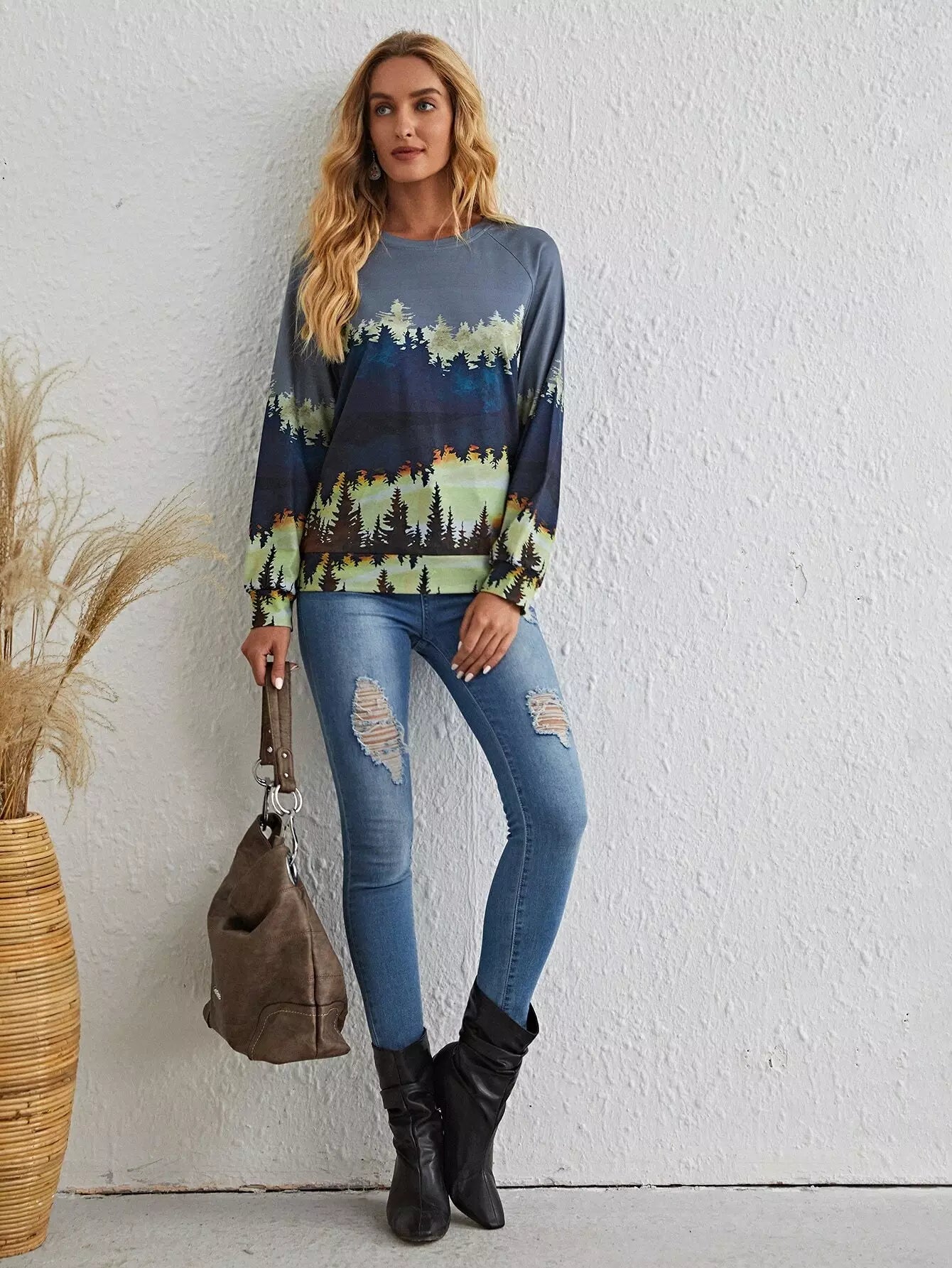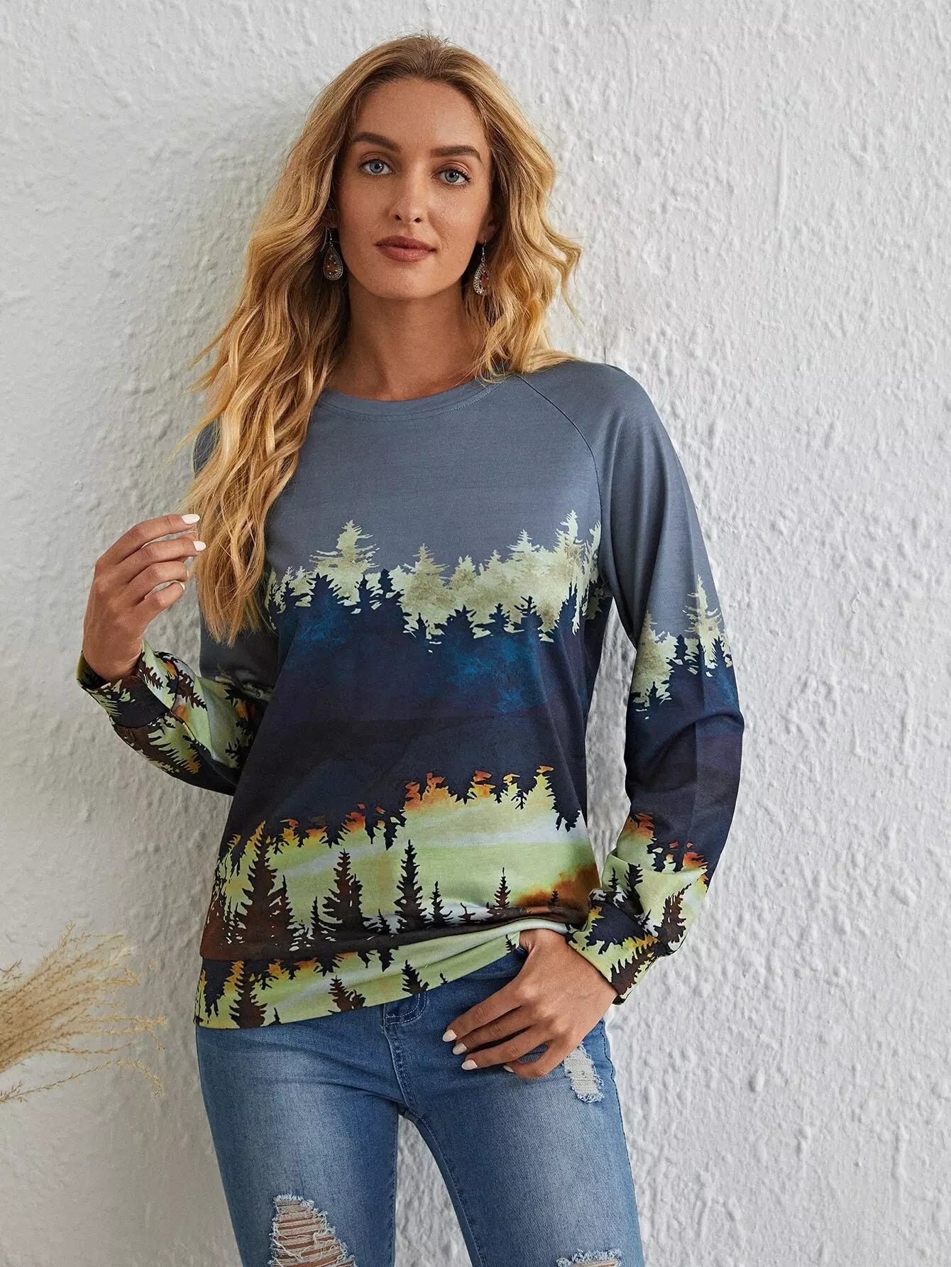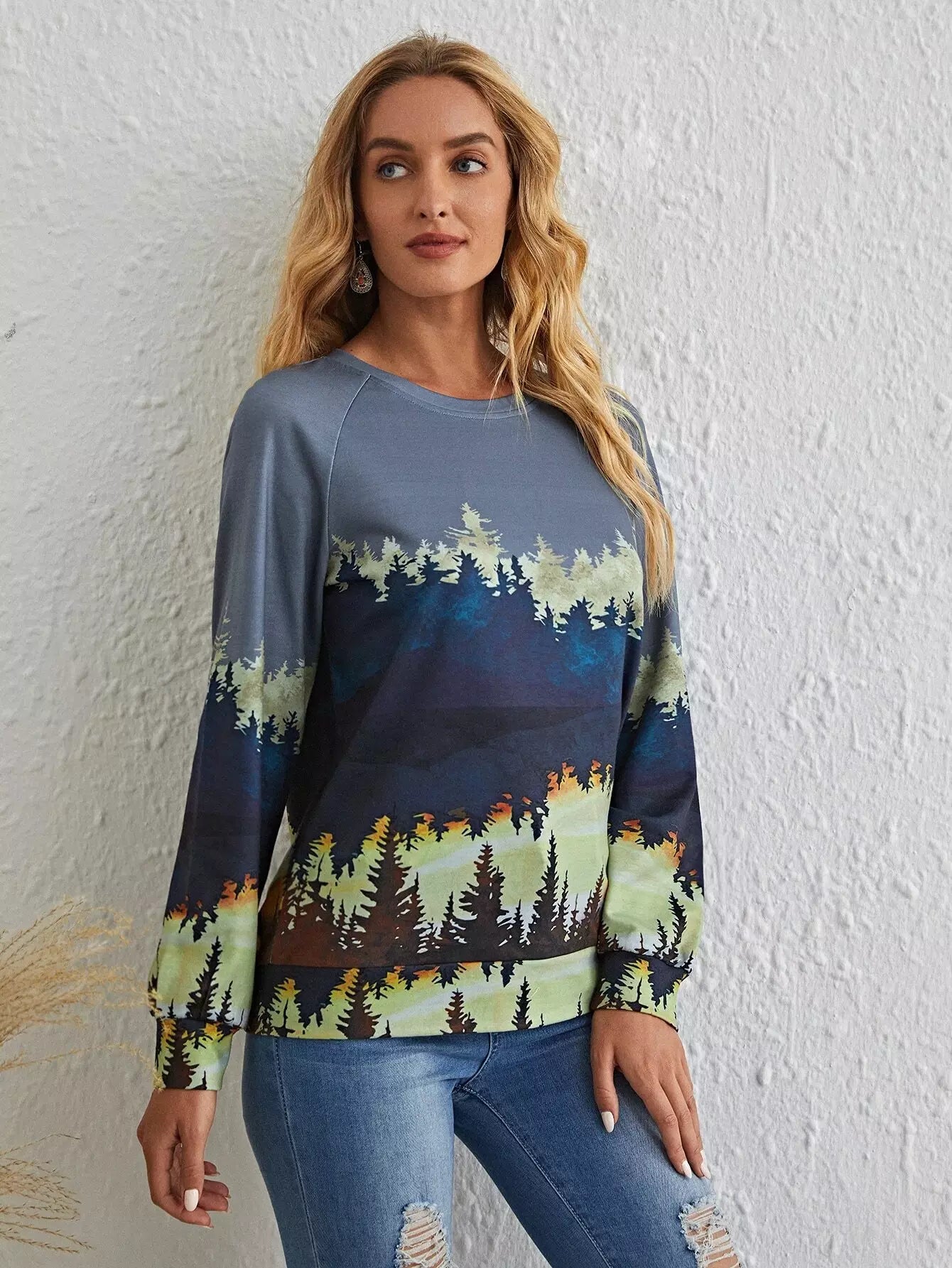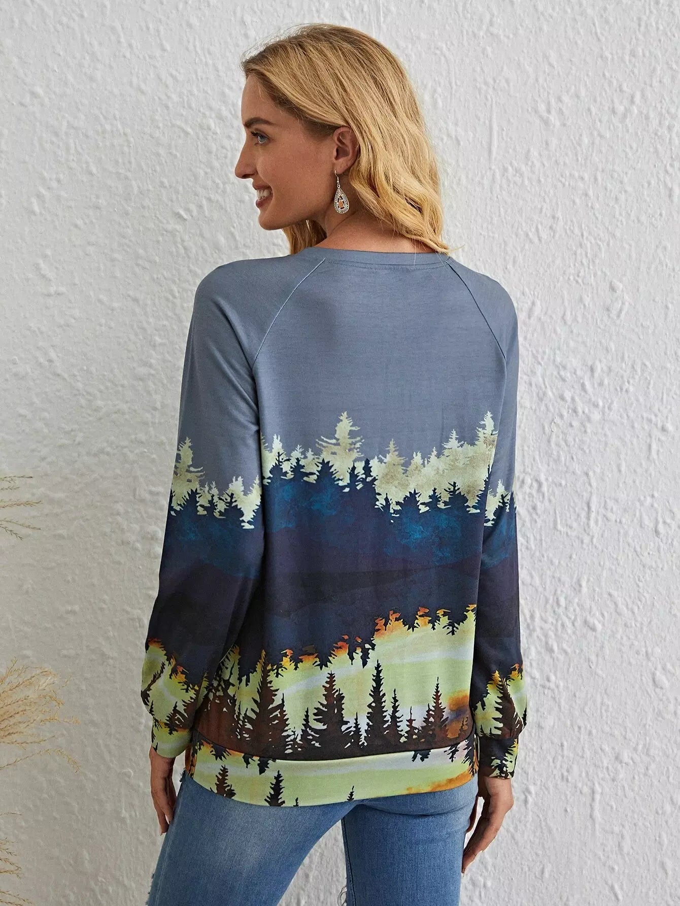 Women - Tree Print Raglan Sleeve Sweatshirt