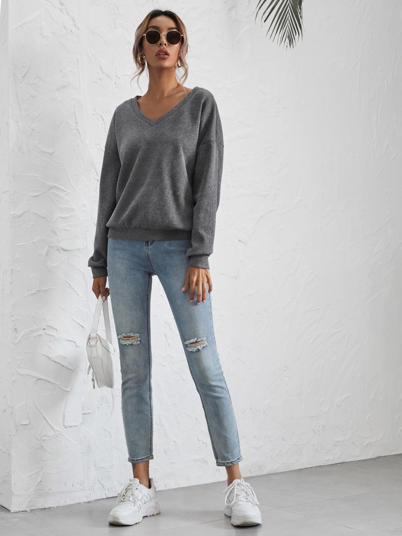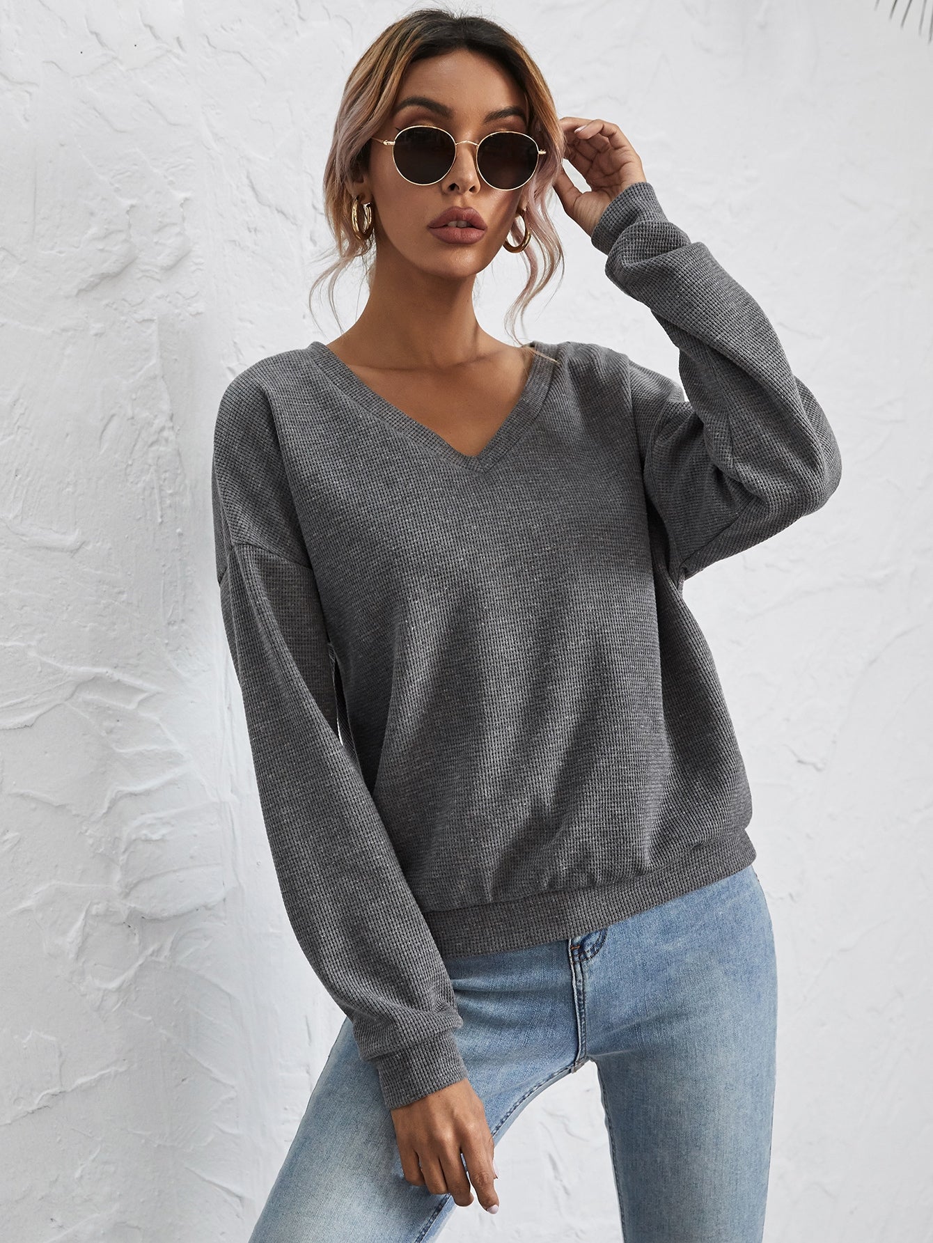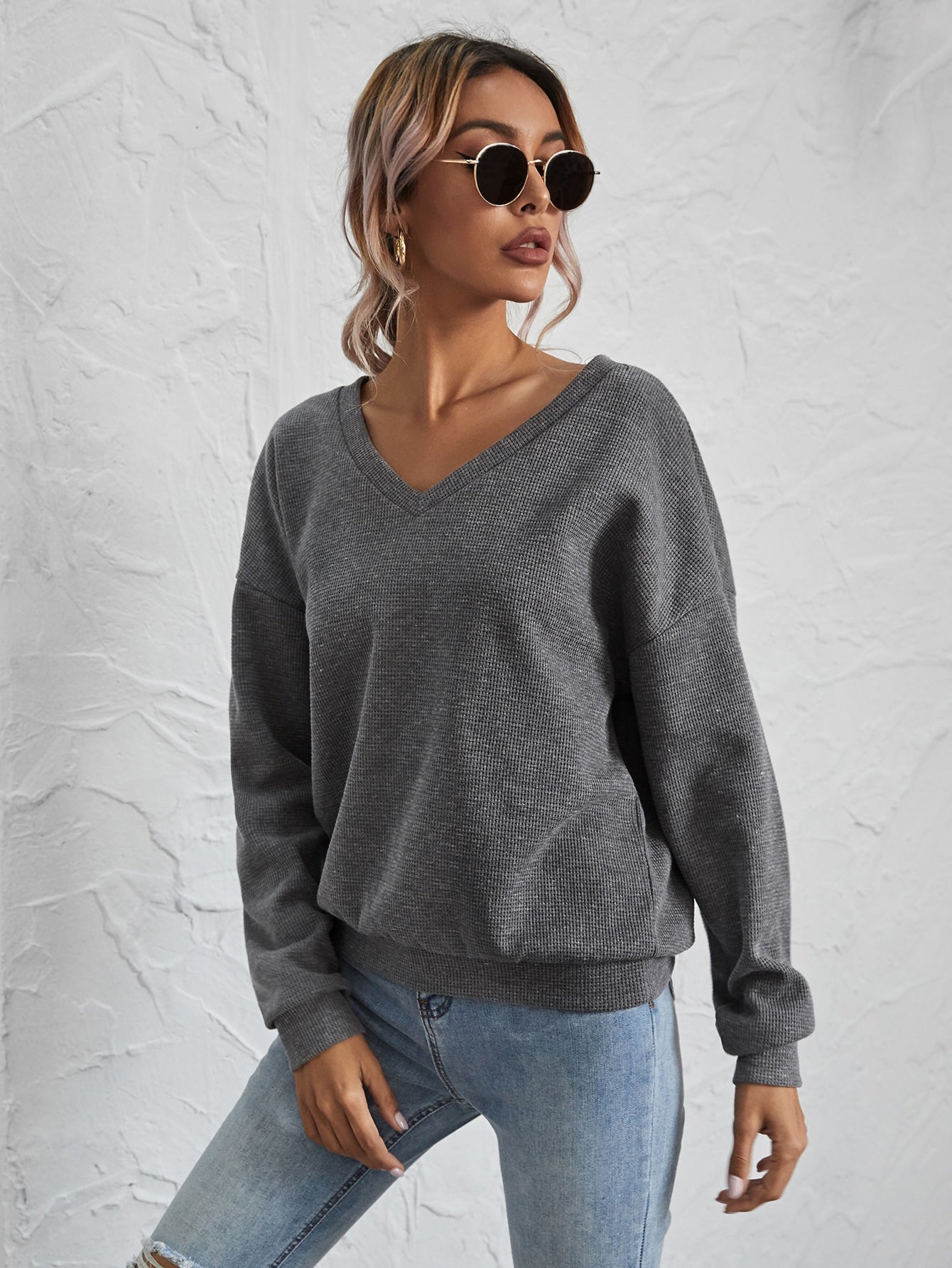 V-neck Drop Shoulder Pullover