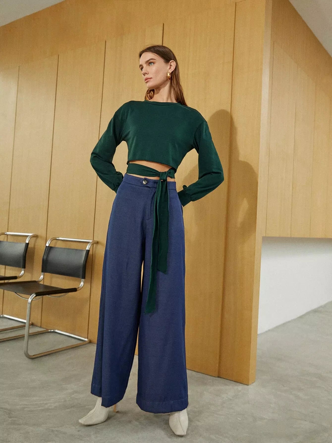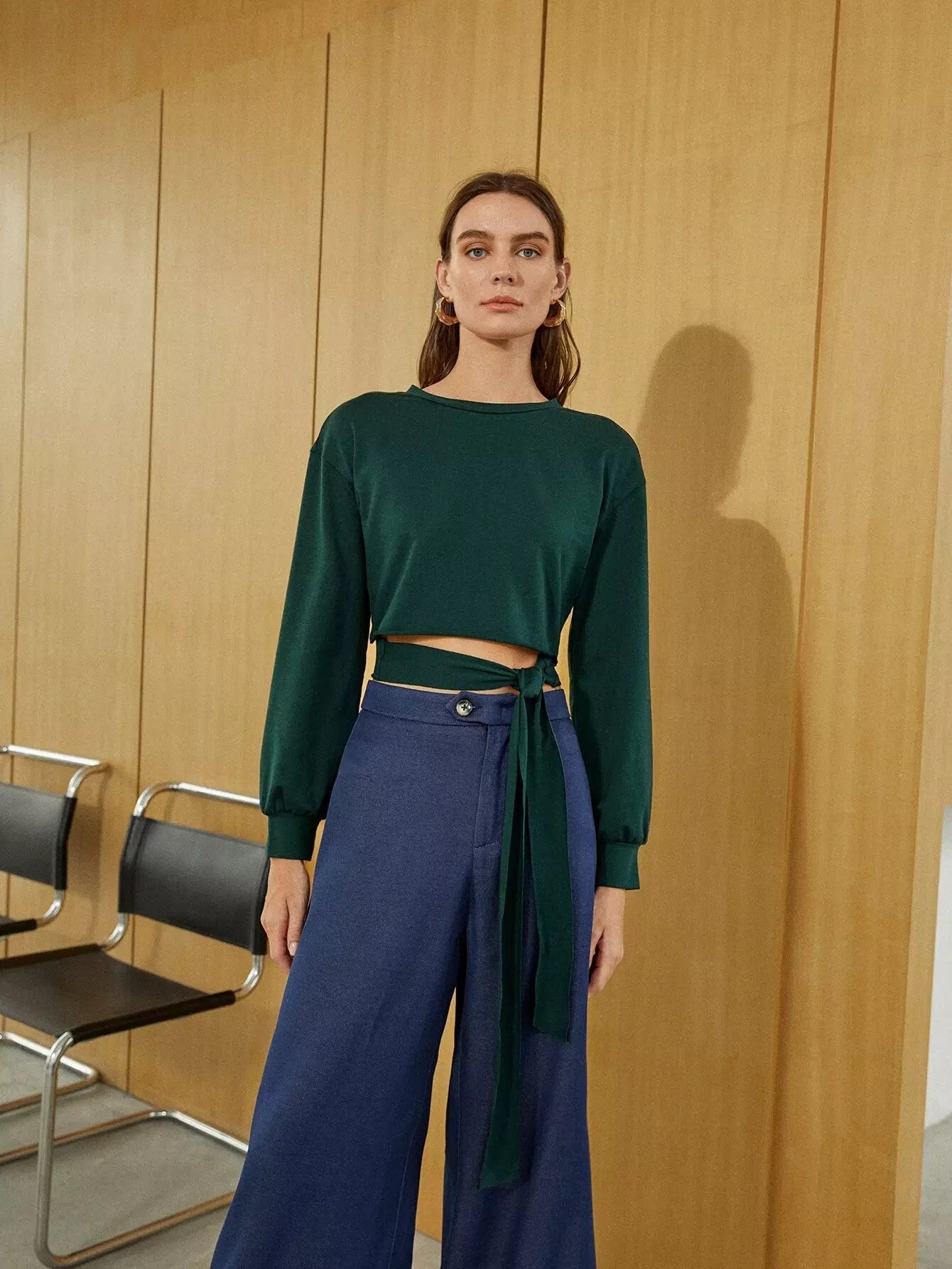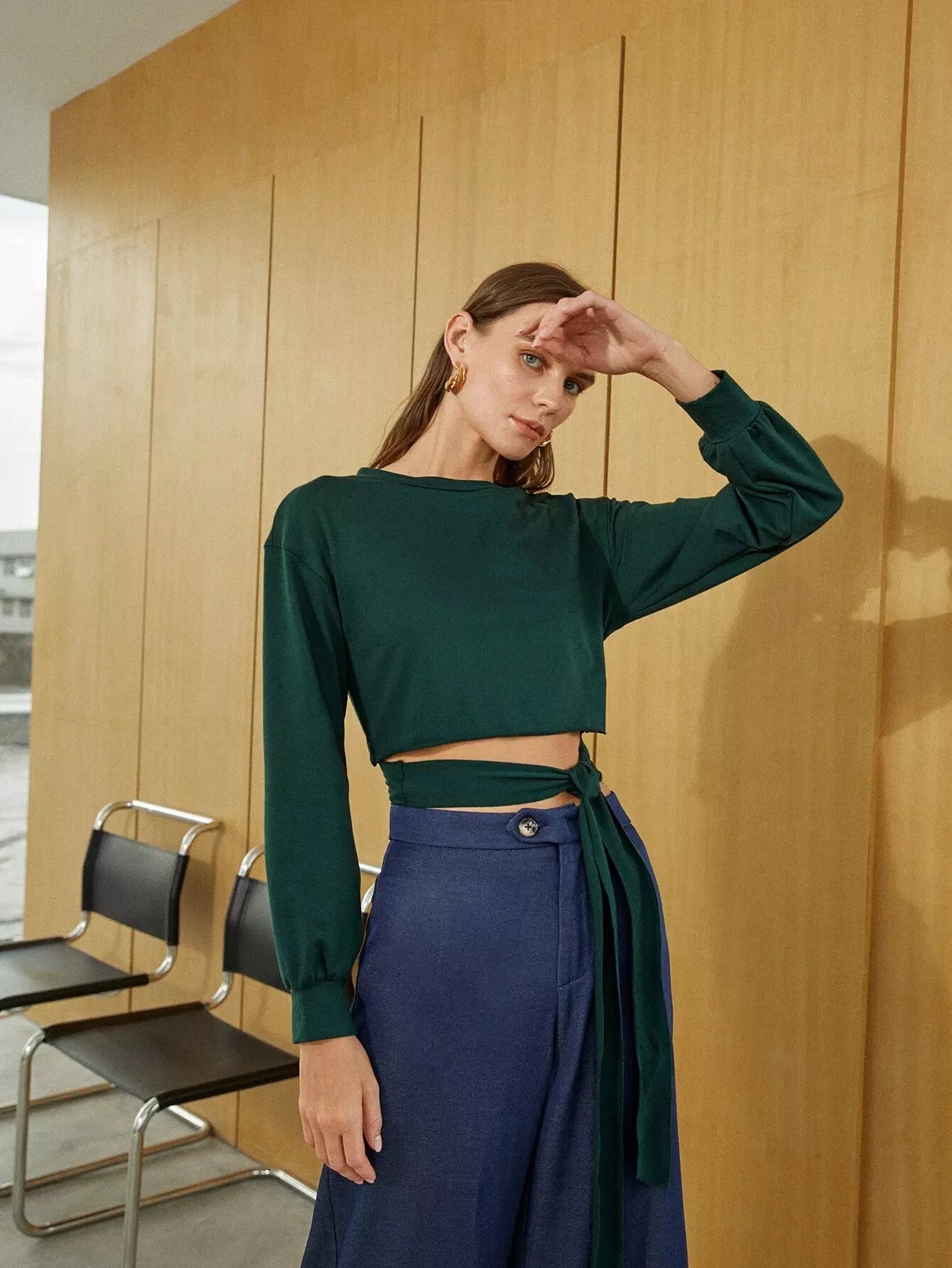 Wrap Tie Front Crop Sweatshirt