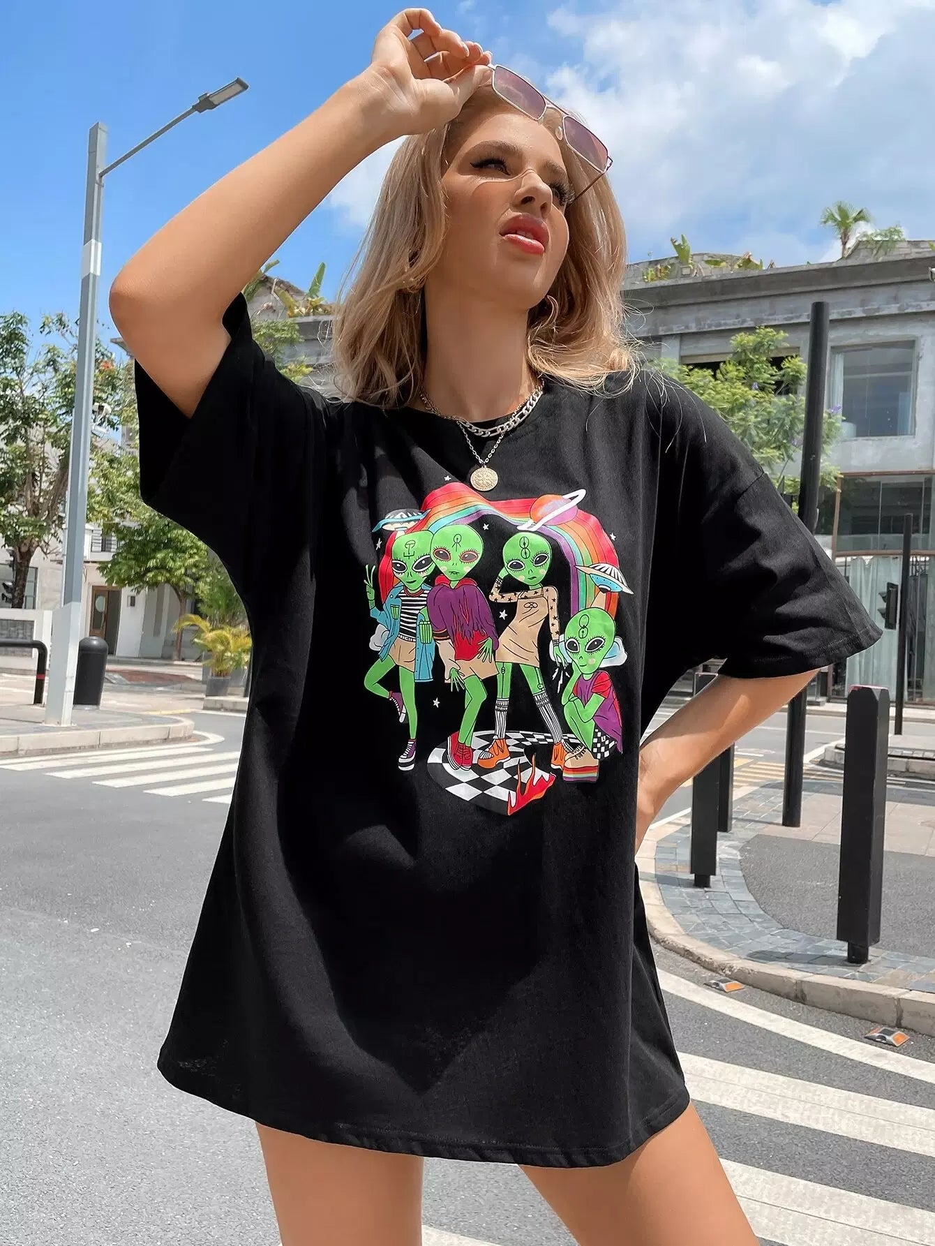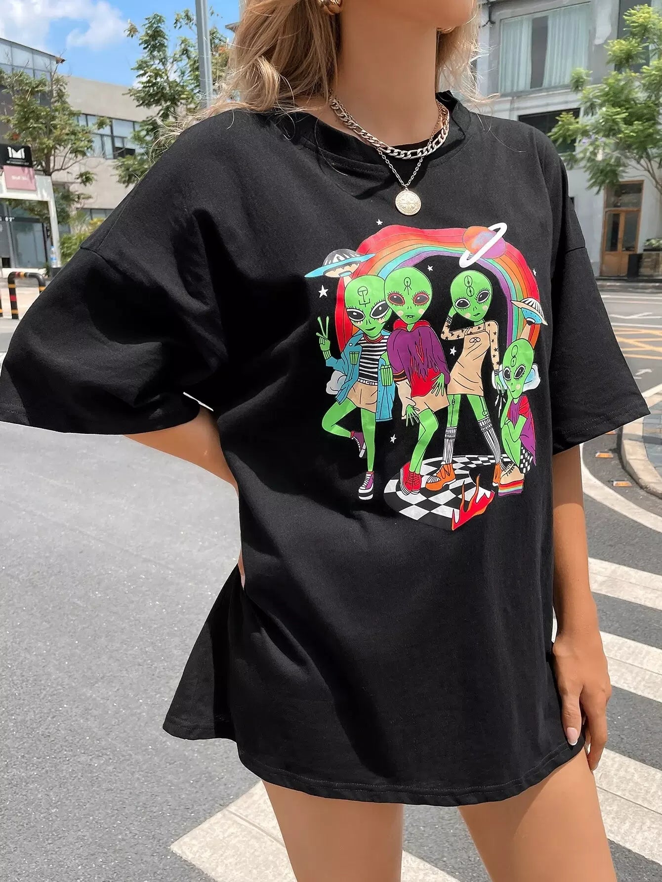 Alien Print Drop Shoulder Tee