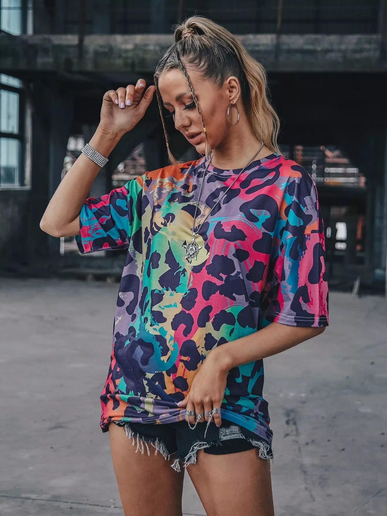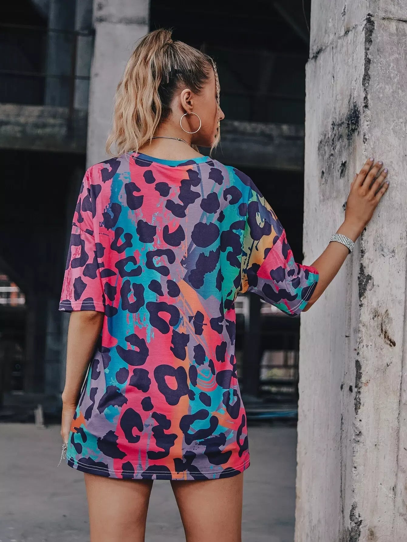 Allover Print Drop Shoulder Longline Tee